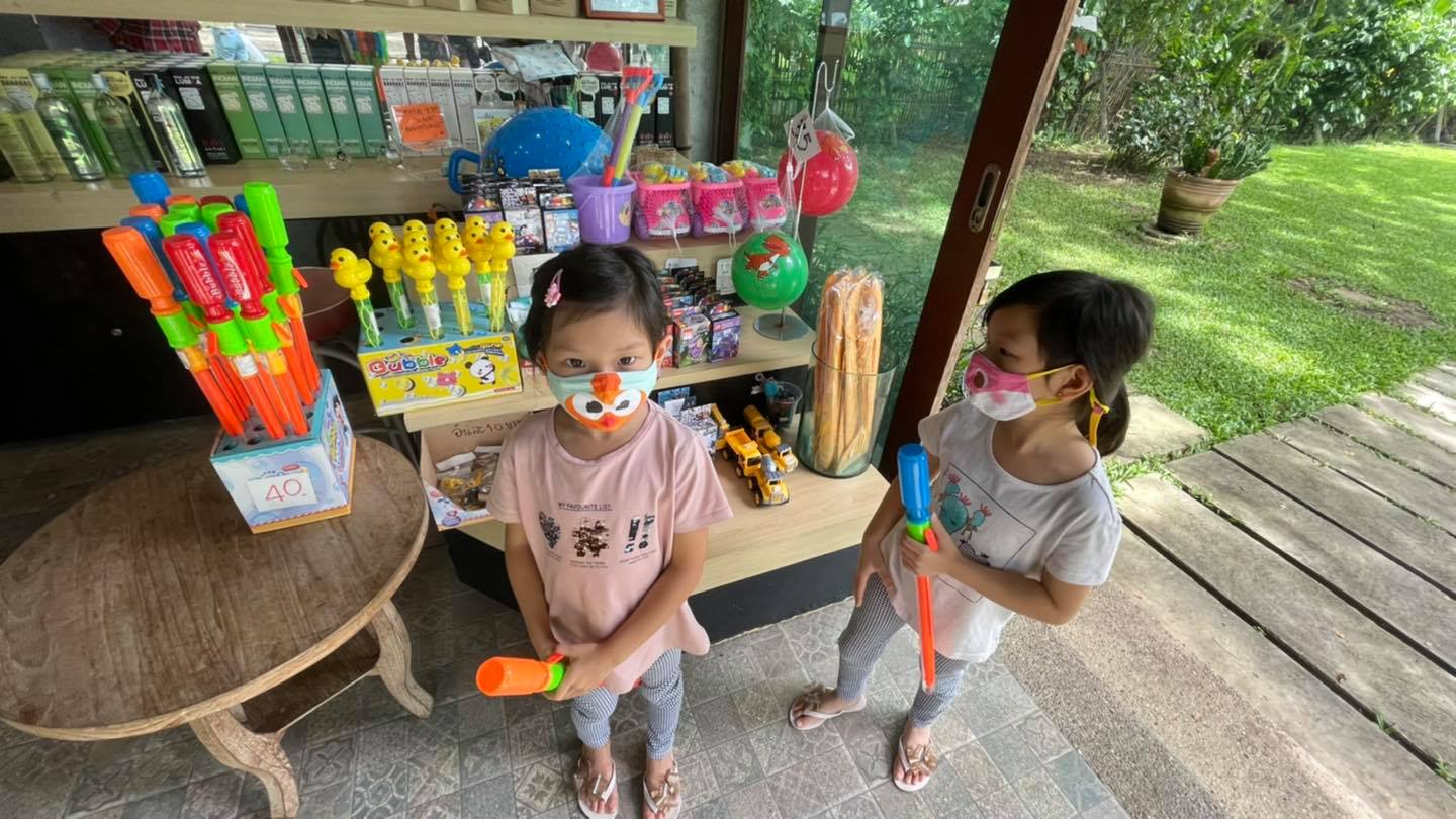 แต่ก็มีมุมเล็กๆไว้ขายของเล่นทำกิจกรรมให้เด็กๆด้วยค่ะ พวกบับเบิ้ล ลูกบอล ชุดเล่นทราย เครื่องร่อน รถ อีกเยอะเลยค่ะ