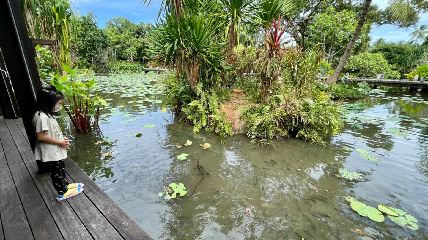 ในส่วนของโรงแรมฝั่ง Villa เราลงกิจกรรมทำว่าวที่หน้าหาด ปั่นจักรยานรอบที่พัก ป้อนอาหารปลาและตัวเงินตัวทอง