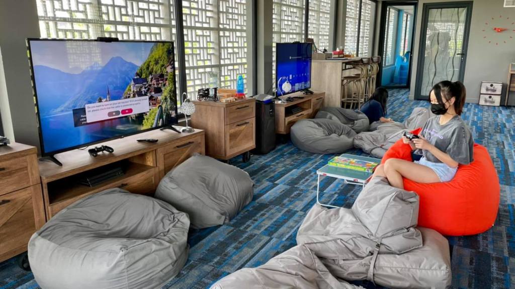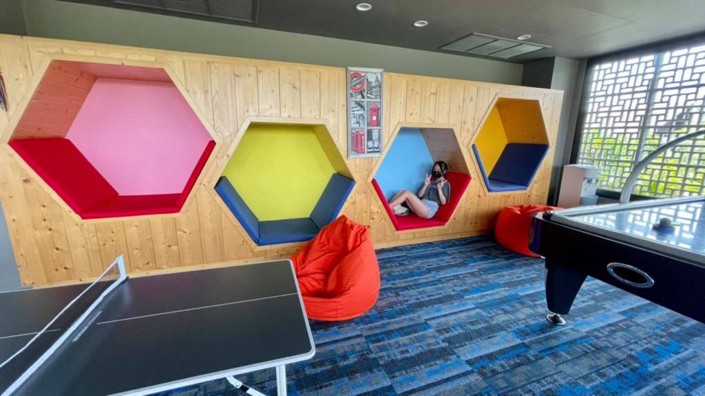 เราวางแผนในการเล่นกิจกรรมในโรงแรมตามตารางที่แจก เช่น การทำหน้ากากเฟสชิลด์ พับดาวนินจา มีทำพิซซ่า มวยไทย ปีนเขาหรือหน้าผาจำลอง ตกแต่งหน้าคัพเค้ก หรือจะเล่นเครื่องเล่นที่ Kid club ซึ่งเราลูกโตแล้ว (7ขวบ) ไม่สามารถนั่งเฝ้าด้านในได้ค่ะ แม่จะเดินเที่ยวแล้วค่อยกลับมารับเด็กๆก็ได้ (ซึ่งแม่ก็นั่งเฝ้าลูกหน้าประตูแหละค่ะ ไม่อยากทิ้งลูก 555) แถมที่นี่ยังมี Teen zone สำหรับ 8-16 ขวบ ภายในมีตู้เกม คอมพิวเตอร์ เกมคอนโซล บอร์ดเกมและกิจกรรมวาดรูปงานคราฟท์ให้เลือกทำค่ะ
