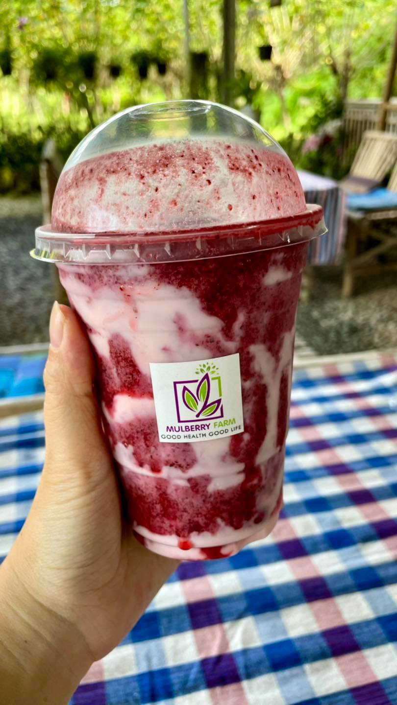 วันนี้ออกเดินทางมายังแหล่งท่องเที่ยวชุมชน แถวแม่ออนใต้เพื่อพาเด็กๆมาเก็บผลมัลเบอรี่กันค่ะ ที่นี่!! ตอนนี้!! ออกผลเยอะมากกกก เก็บแบบฟินเต็มอิ่มเลยค่ะ เก็บไปกินไปไม่อั้น เก็บกลับบ้านก็ขีดละ 20 บาท พี่ที่ร้านก็ใจดีมากพาเด็กๆเก็บสนุกกันใหญ่ จากนั้นก็นำผลงานที่เก็บได้มาทำเครื่องดื่มมัลเบอรี่อร่อยๆ มีวิตามินสูง บำรุงสายตาและมีประโยชน์ต่อร่างกายดีเยี่ยมเลยค่ะ