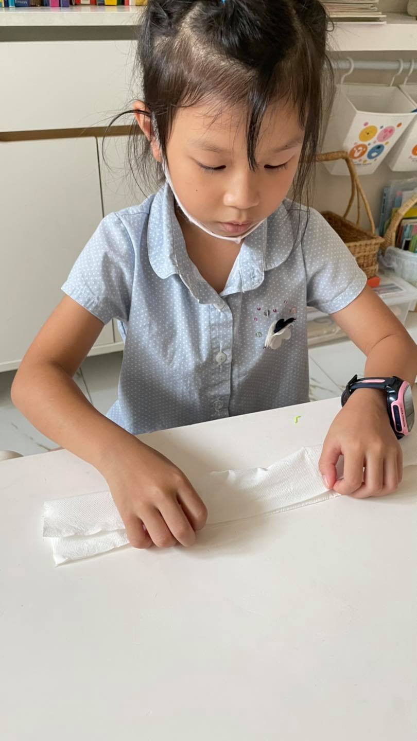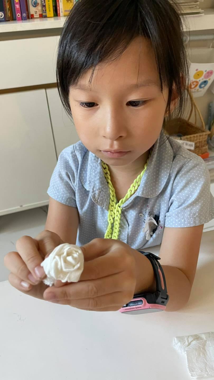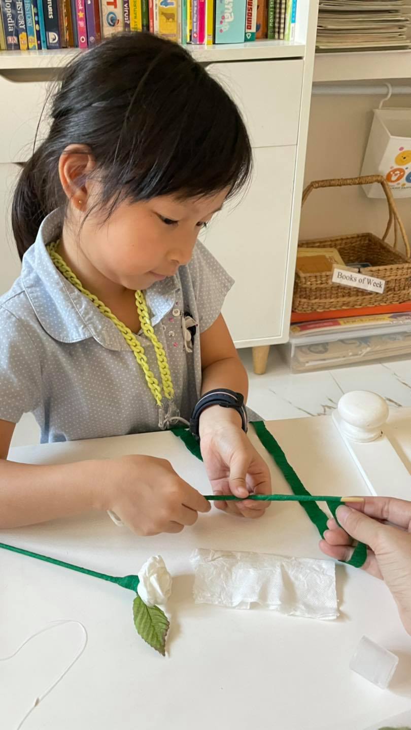 ลองสอนพับกลีบดอกค่อนข้างยากแม่เลยช่วยพับให้ จากนั้นปล่อยให้เด็กๆม้วนจัดกลีบดอกและทำก้านกันเองค่ะ ![]()