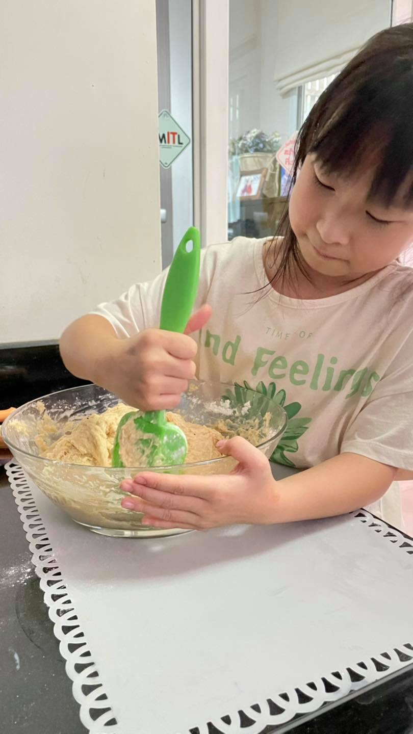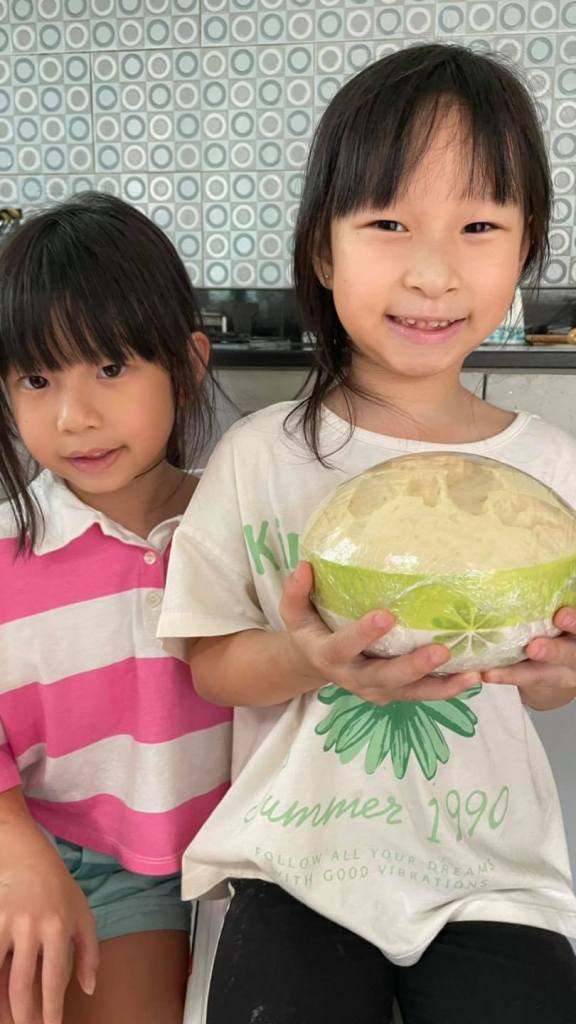 เมื่อครบตามเวลาที่กำหนด ขนมปังฟูขยายใหญ่กว่าเดิมมาก ลูกตื่นเต้นตกใจมากค่ะ