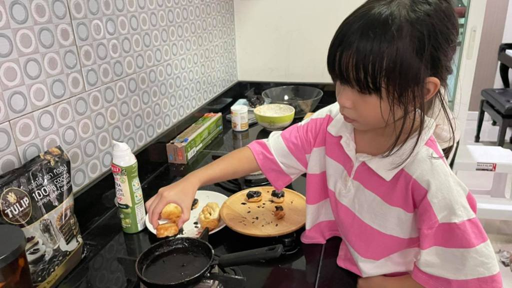 ลูกมาบอกหนูอยากทำโดนัท!!! เอาจริงๆแม่ไม่ใช่สายเข้าครัวเลยค่ะ เลยต้องไปศึกษาวิธีการทำก่อนว่าทำแล้วจะรอดไหม 555+ อ่านคร่าวๆพอได้อยู่ อุปกรณ์ไม่เยอะ วัตถุดิบไม่ซับซ้อน ก็ชวนลูกเข้าครัวค่ะ ![]()