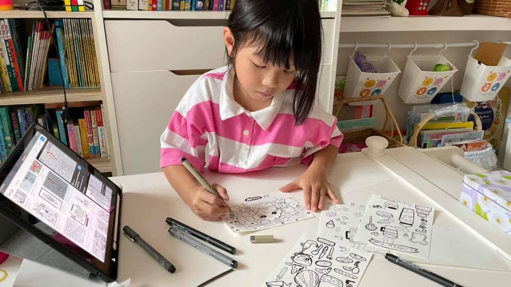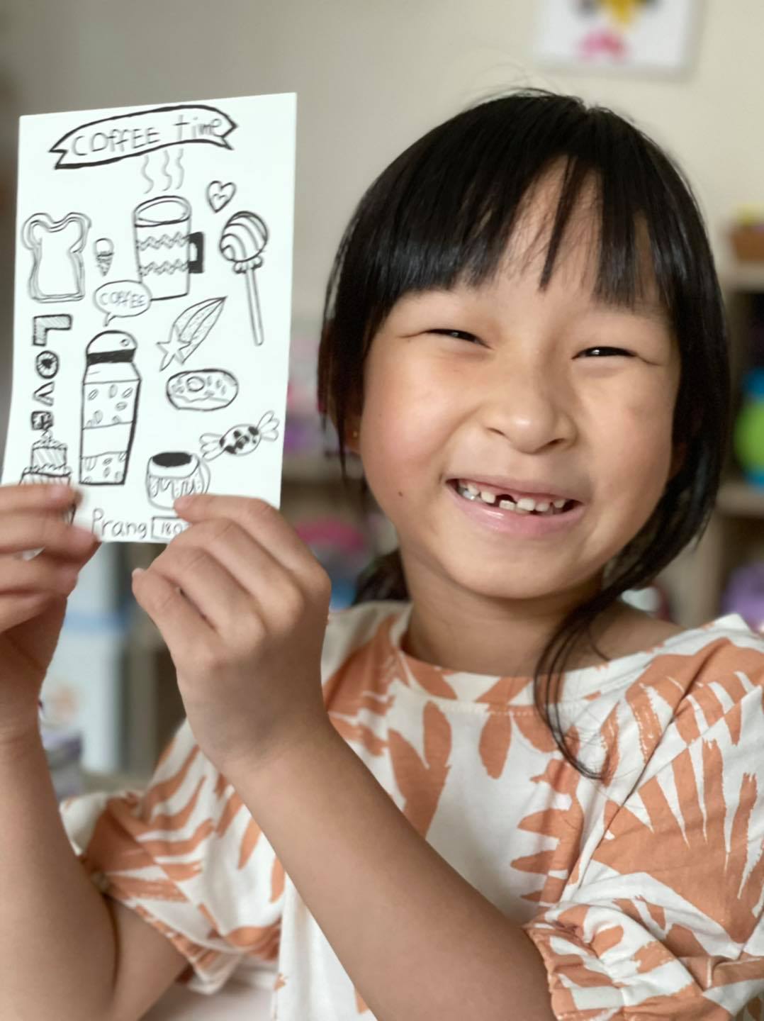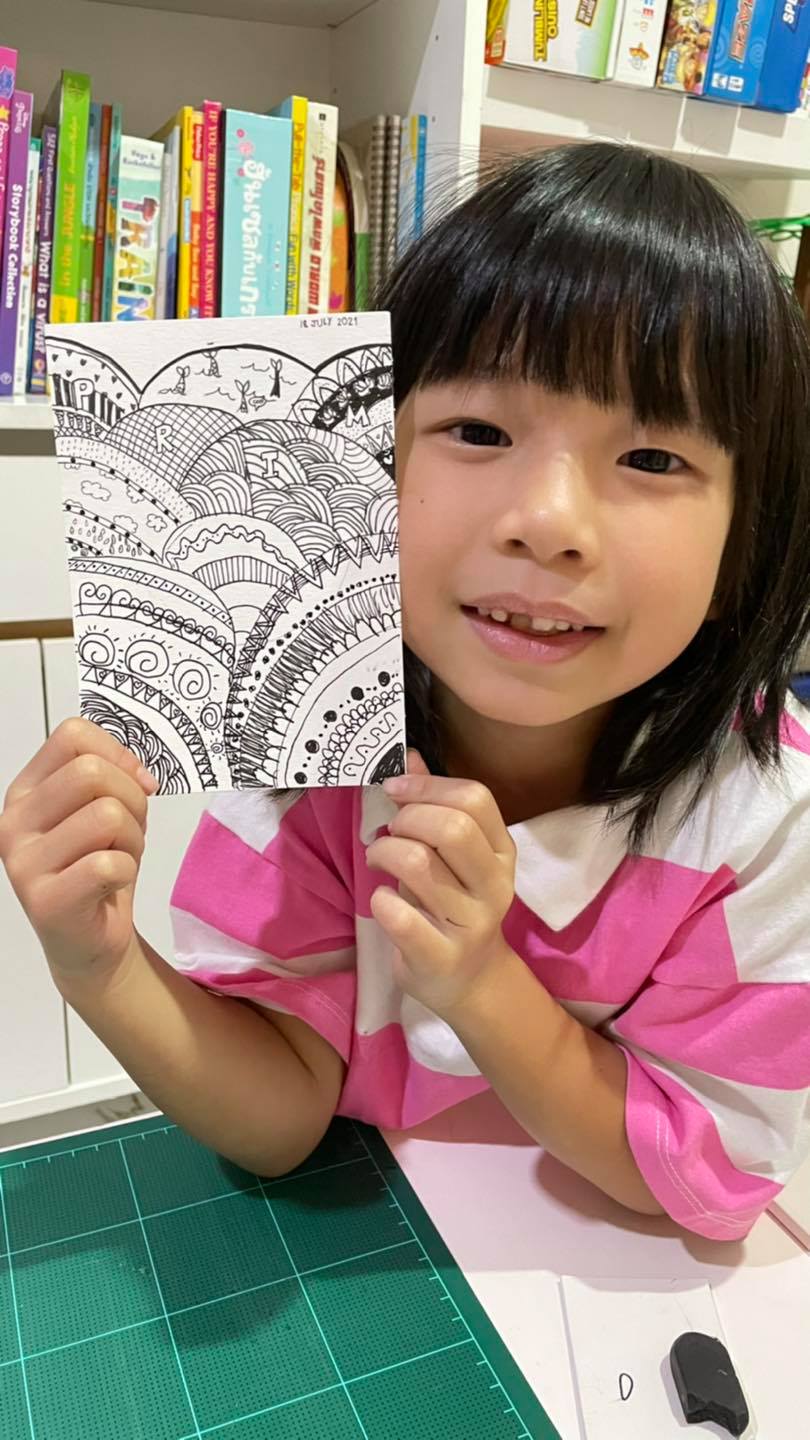 งานศิลปะแนวเปิดกว้างตามแต่จินตนาการของผู้วาด จะวาดอะไรก็ได้ขอแค่มีกระดาษกับปากกา ลูกที่แม่ไม่เคยส่งไปเรียนวาดรูปที่ไหนเลยก็ยังสามารถวาดได้ค่ะ น่าสนใจไหมคะ