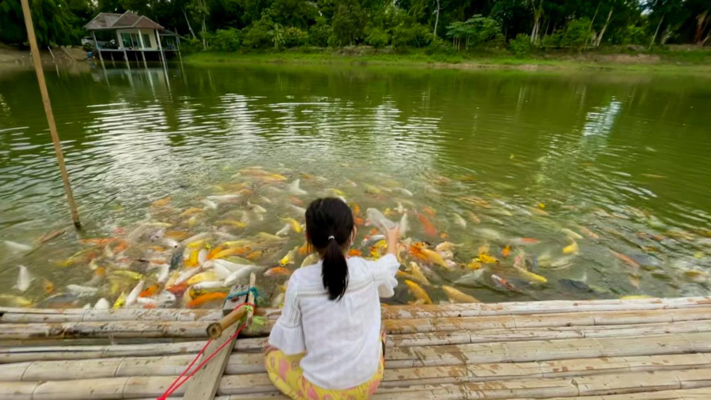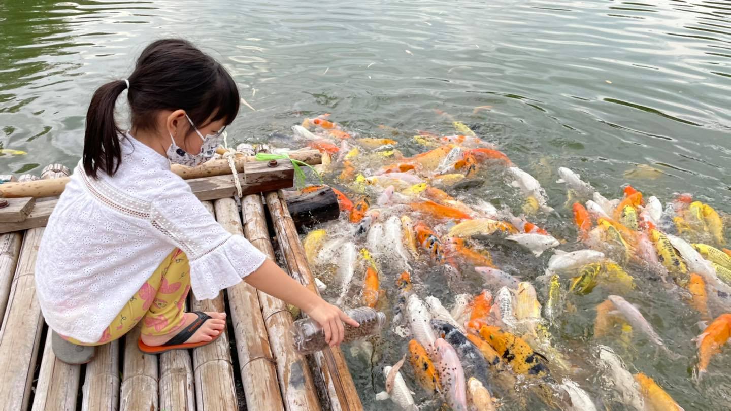 คือปลาคราฟเยอะมากๆแย่งกันกิน ลูกก็สนุกป้อนกันเพลิน เด็กคนไหนยังว่ายน้ำไม่เป็นก็ระวังหน่อยนะคะ เดี๋ยวตกน้ำค่ะ