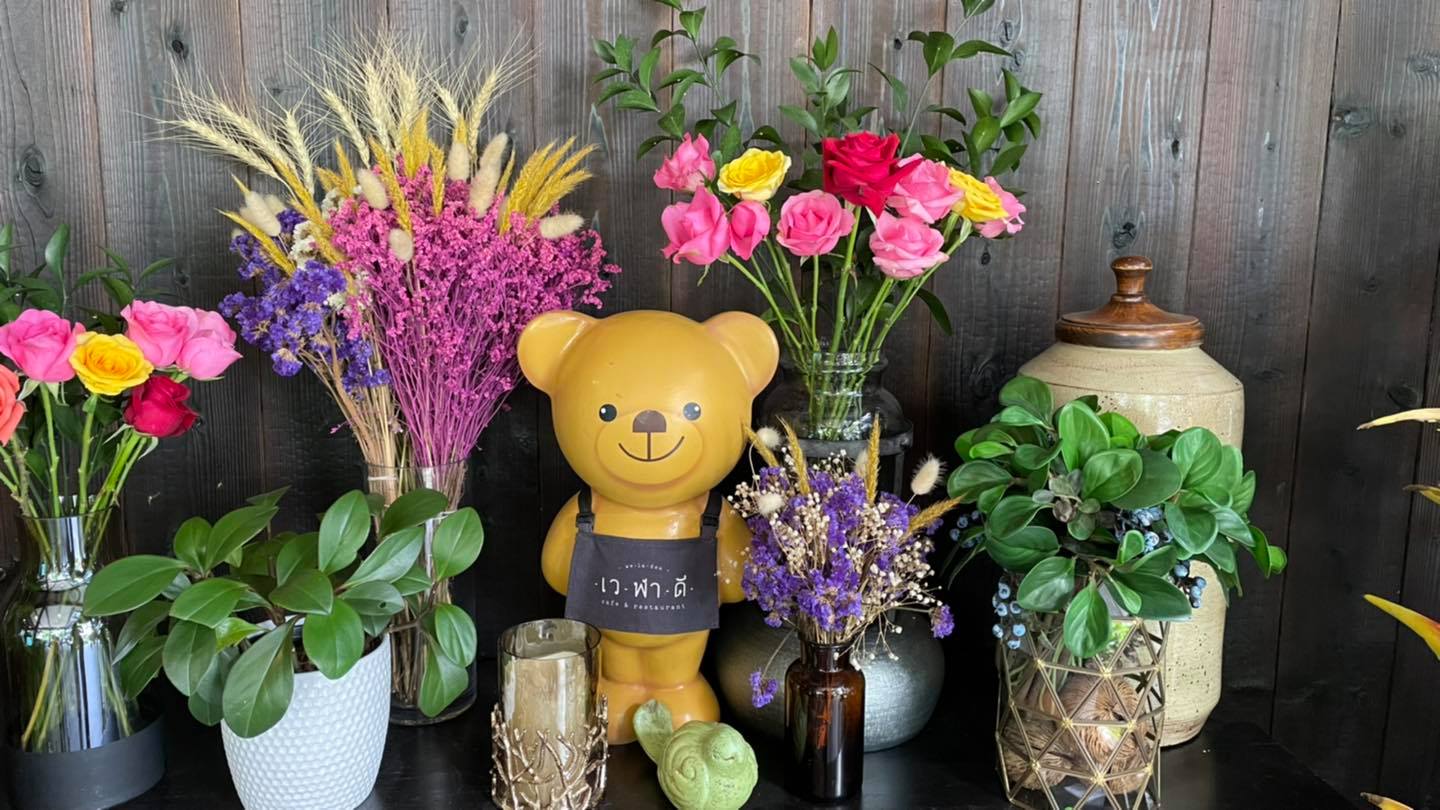 มีพี่หมีน่ารักๆให้เด็กๆถ่ายรูปเล่นเพลินๆค่ะ ที่นี่หาง่ายแม้จะไม่ติดถนนใหญ่ อยู่ในซอยหลังร้านโอ้กะจู๋ สันทราย มีที่จอดรถสะดวกค่ะ