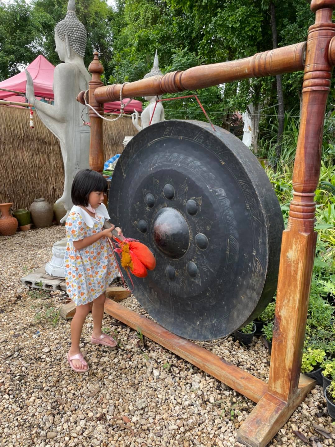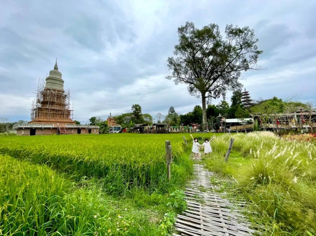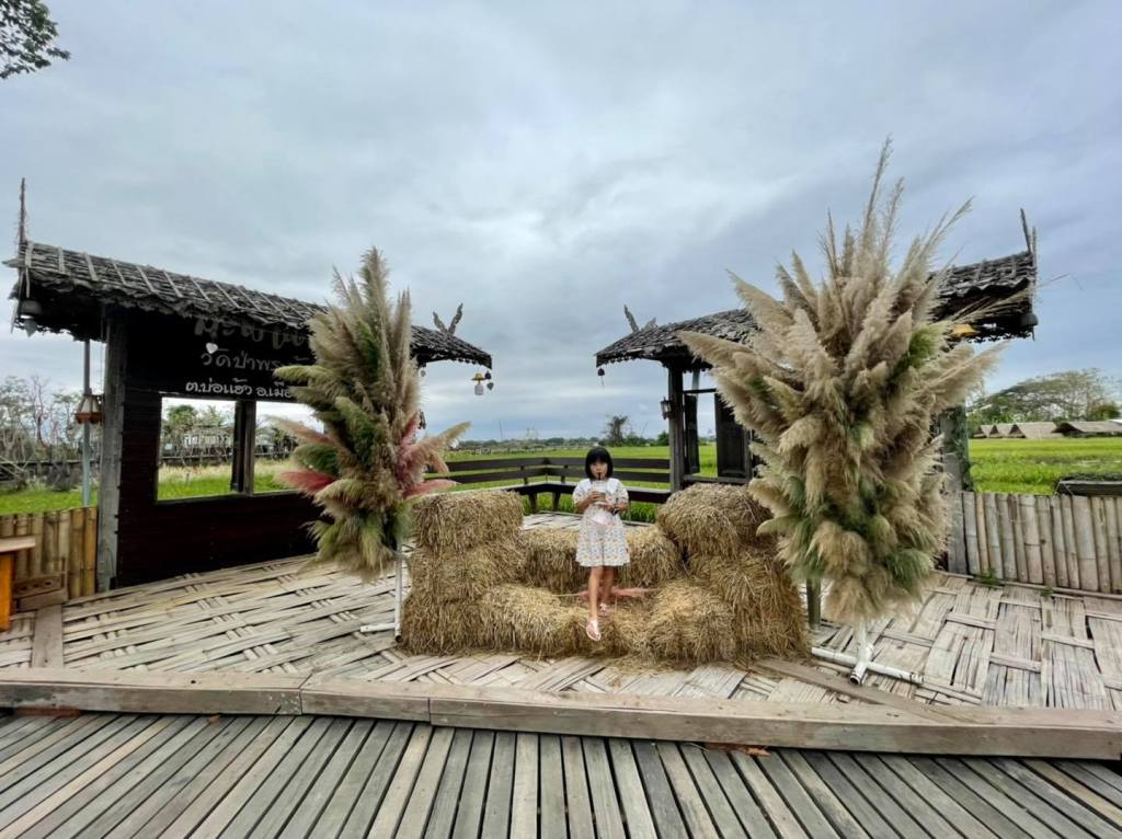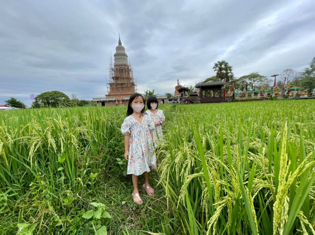 ที่นี่มีจุดให้ท่องเที่ยวชมบรรยากาศท้องทุ่ง ติดลำน้ำแม่ตุ๋ย ได้จิบกาแฟมะพร้าว เดินเล่นขัวแตะไม้ไผ่ ดูสวนผักแปลงเกษตร ให้อาหารปลา คือ…ไม่เคยเห็นวัดไหนเป็นแบบนี้มาก่อนเลยค่ะ 555 แถมได้ถือโอกาสชวนลูกเข้าวัดทำบุญอีกด้วย ![]()