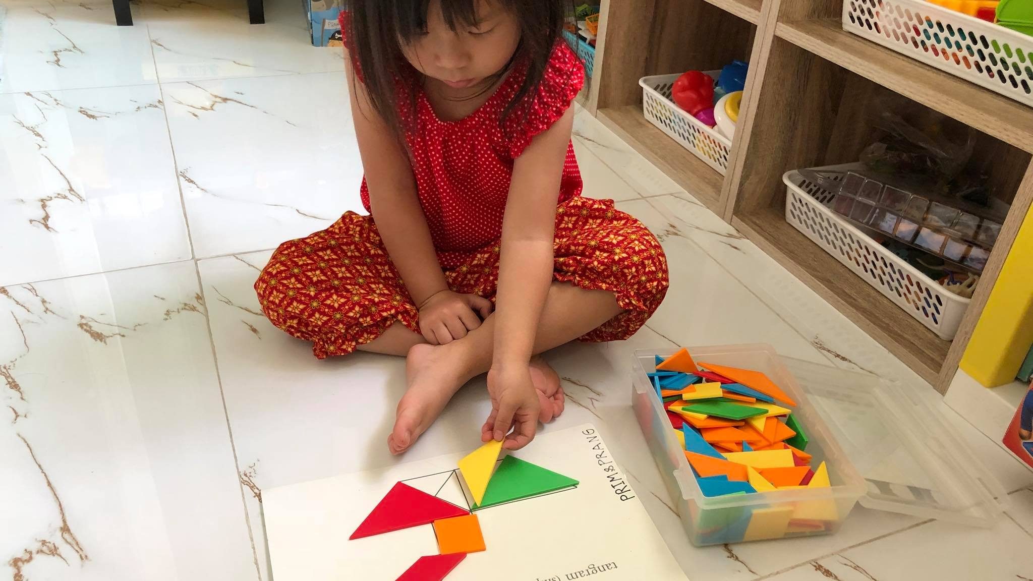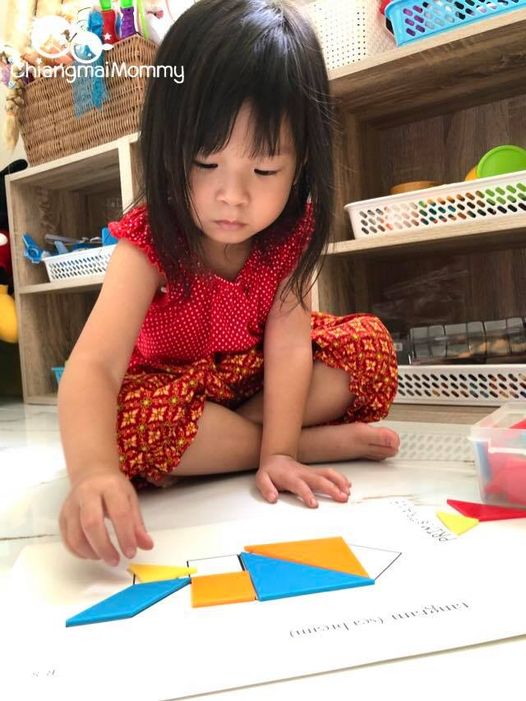 ปกติเล่นต้องมีโจทย์ Tangram Pattern ด้วยค่ะ สำหรับเด็กเล็กจะมีเส้นขอบไกด์ให้ว่าต้องวางชิ้นไหนแบบไหน แต่ถ้าสำหรับเด็กโตหรือผู้ใหญ่จะเป็นรูปล้วนๆ หรือจะเล่นแบบไม่มีโจทย์ก็ได้ค่ะ ลูกจะฝึก-จับ-วาง-หมุน -พลิก เพื่อวางตามโจทย์ที่กำหนด สนุกและมีประโยชน์ดีนะคะ