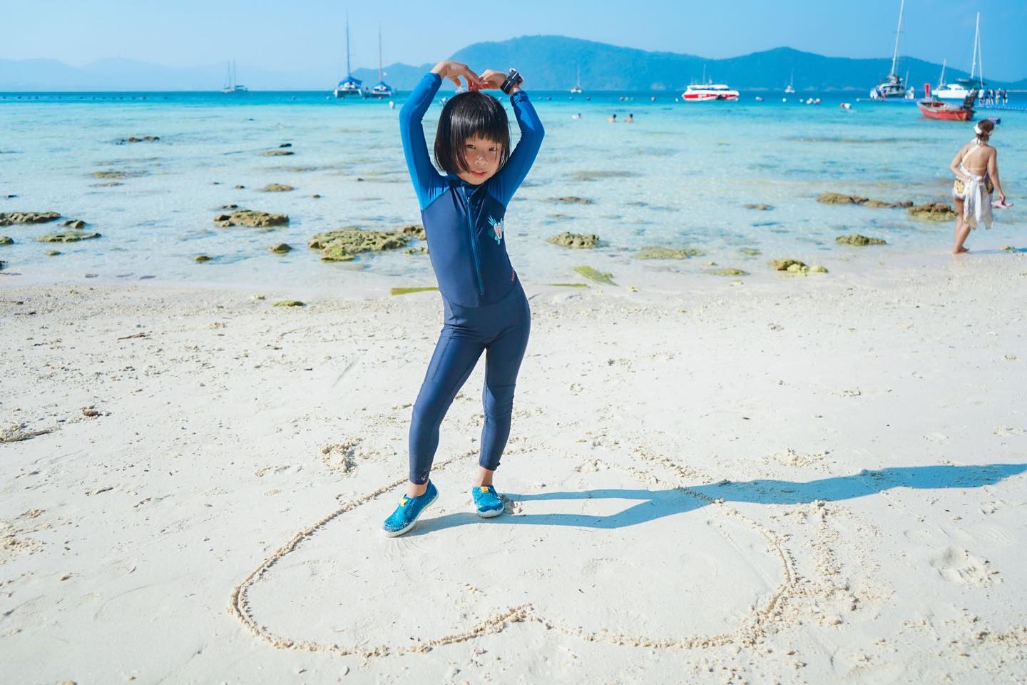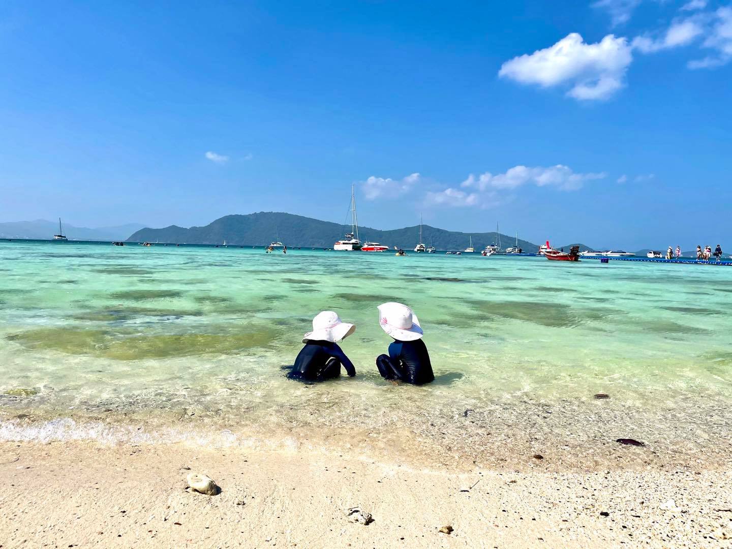 ที่เกาะเฮจะมีท่าเรือขึ้นเกาะหลายเจ้าบริการค่ะ ขึ้นกับว่าดีลเรือเจ้าไหน ครั้งนี้เราใช้บริการของบริษัท Cooling Andaman เลยได้ขึ้นหาดซ้ายสุด ชื่อ Beach club ซึ่งนกเงือกพอมีให้เห็นบ้างแต่ไม่เยอะเท่าครั้งก่อน ไม่มีอาหารนกให้เด็กๆป้อนเล่นนะคะ แต่ของ Cooling Andaman นี้จะรวมบริการช่างถ่ายรูป ฟรี!! วันนี้เราได้พี่โจอี้มาช่วยถ่ายรูปและดูแลเราตลอดทั้งทริป แถมใจดีเด็กๆชอบมากเลยค่ะ บริการดีมากกกก ประทับใจ ใครมาภูเก็ตแนะนำบริษัทนี้เลยนะคะ