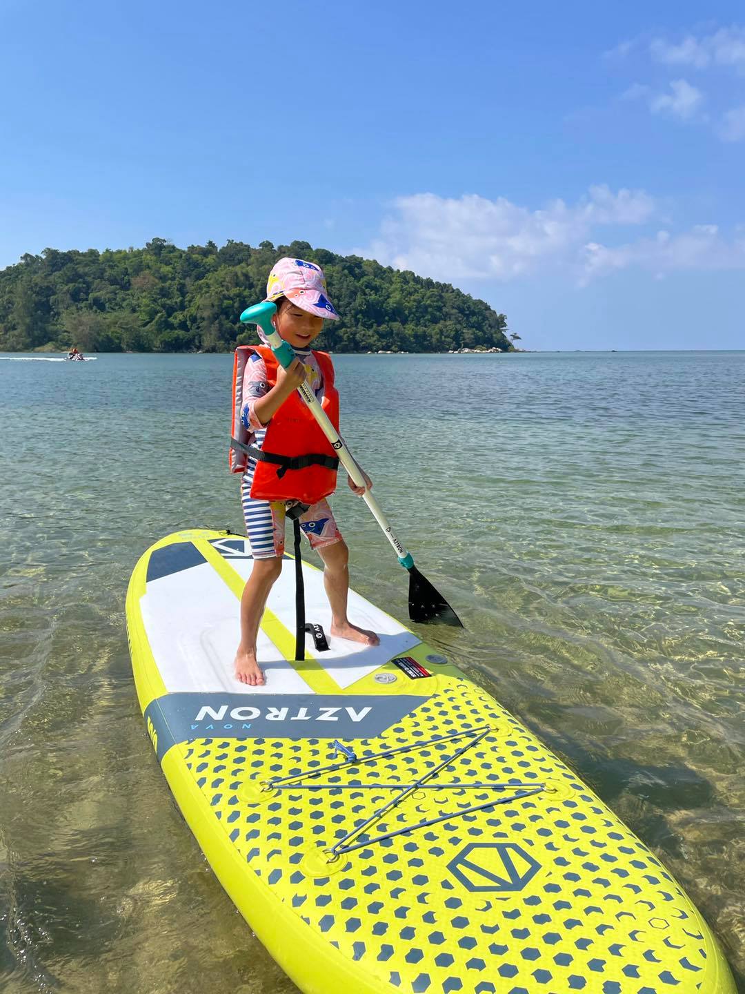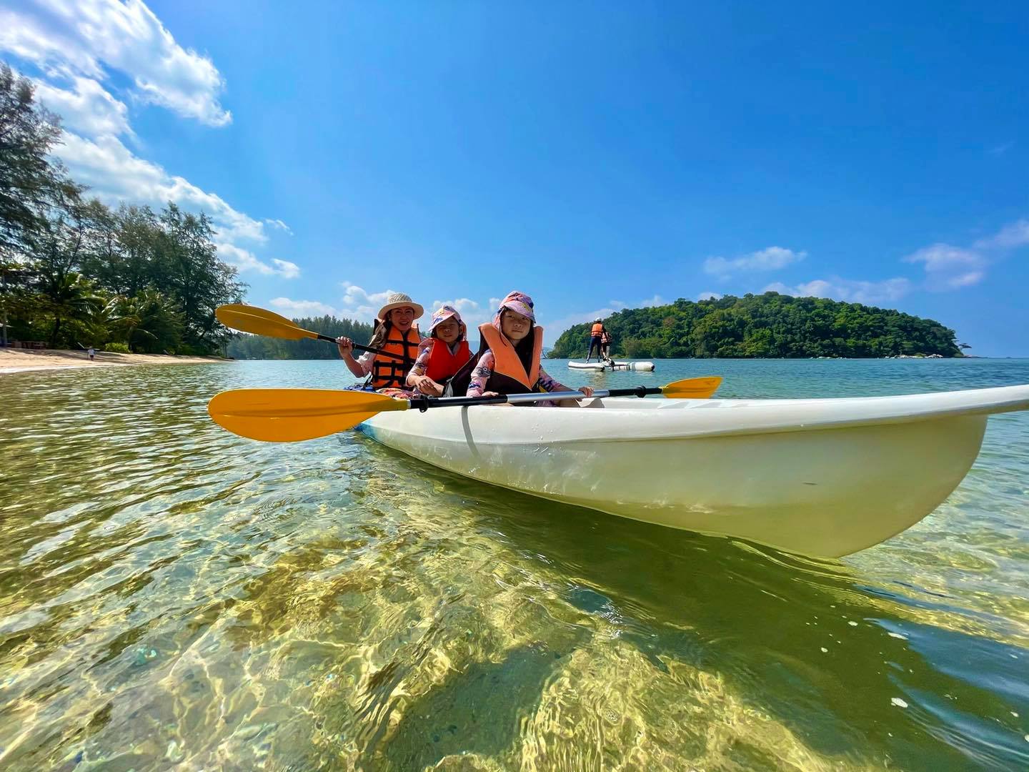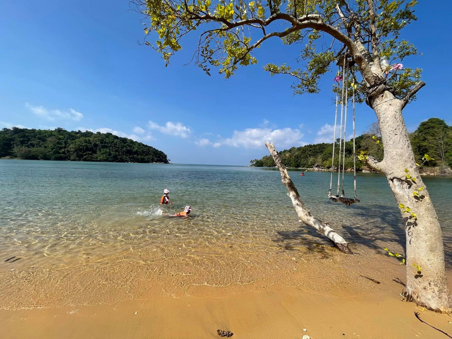 ลูกวิ่งเล่นสนุกปล่อยพลังได้เต็มๆ มีทั้งพายเรือคะยัก จักรยานน้ำ เรือยืนพาย เล่นน้ำ เล่นทราย ปีนโขดหิน หาก้อนหินแปลกๆ โหนชิงช้าเพลินๆ เล่นได้ทั้งช่วงน้ำขึ้น-น้ำลง