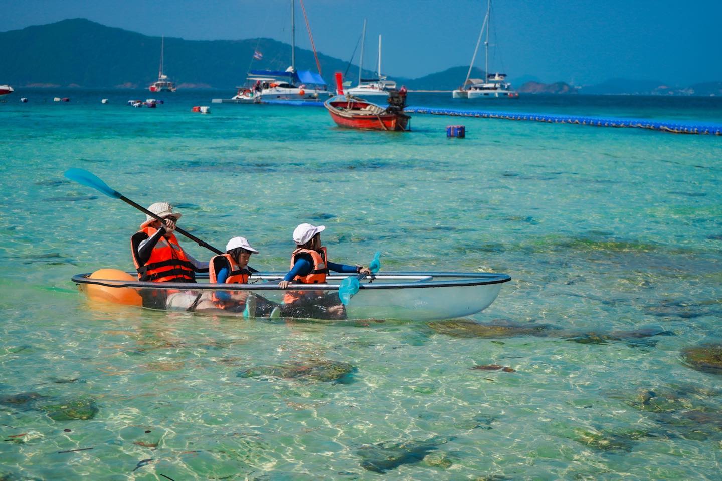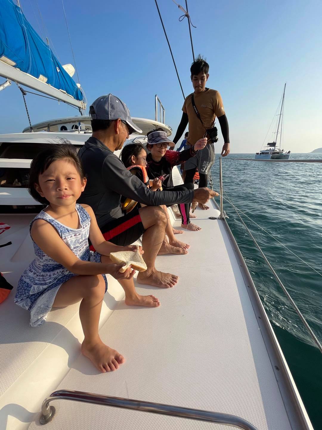 หลายๆทริปที่ผ่านมาใช้ Speed boat ลูกเมาเรือค่ะ เรือเสียงดังและกระแทกมาก แม้ว่าจะประหยัดเวลาแต่ลูกสติแตก แม่ก็จะเหนื่อยๆไม่ไหวๆ 555+ แถมรอบนี้มากับคนสูงอายุอีกตะหาก ไม่อยากงานเข้า เลยเปลี่ยนแนวมาเป็นเรือใหญ่ดีกว่า เราเลือกเรือยอร์ชค่ะ เรือจะขับช้ากว่า ใช้เวลามากกว่า แต่กัปตันขับนิ่มมากไม่มีอาการเมาเรือเลยค่ะ เรือแล่นไปเรื่อยๆ ชิวๆ แถมมีกิจกรรมตกปลาบนเรือด้วยนะคะ ลูกแฮปปี้มากกก เรือนี้มีให้เลือกจะเป็นแบบ Private หรือจะเป็น Join group ก็ได้ค่ะ สามารถโทรสอบถามได้เลย