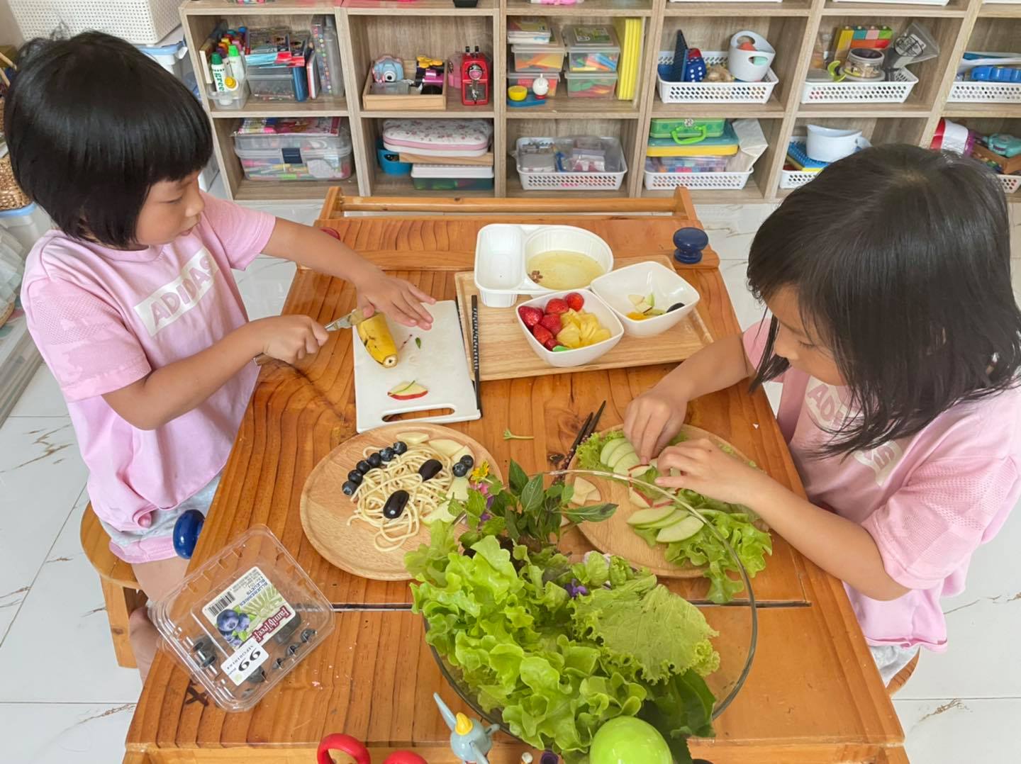แม่เลยเปลี่ยนขั้นตอนการทำ โดยให้วาดไอเดียบนกระดาษให้เห็นแผนงานคร่าวๆว่าจะใช้ผักผลไม้อะไรวางตรงไหน เวลาลงมือทำจริงๆจะติดปัญหารึเปล่า พอมีการวางแผนการทำงาน ทำให้การลงมือทำง่ายขึ้นมากค่ะ ของเสียลดลง ซึ่งเป็นข้อดีของการฝึกให้คิดก่อนทำค่ะ