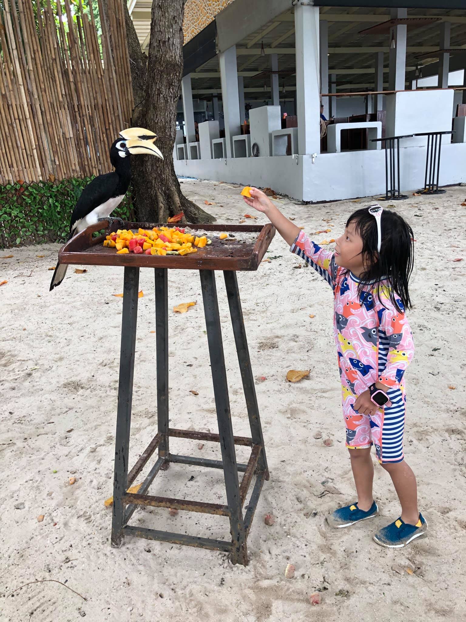 จริงๆมีทริปหลายเกาะมาก แต่เราเลือกไปเกาะเฮเกาะเดียวเพราะห่างจากท่าเรือเพียง 15 นาที มีสัญญาณโทรศัพท์ และที่นี่มีกิจกรรมเด็ดคือ ป้อนอาหารนกเงือก ซึ่งเป็นนกธรรมชาติ อาศัยอยู่บนเกาะนี้เยอะมากหลายตัวทีเดียว จนคิดว่าเกาะนี้เป็นพื้นที่อนุรักษ์นกรึเปล่า แต่ไม่ใช่นะคะ ป้อนอาหารนกกันสนุกเลยค่ะ การป้อนคือโยนไปตรงๆให้ผลไม้ผ่านหน้านก แล้วเค้าจะบินโฉบมาเองค่ะ สนุกกันมาก