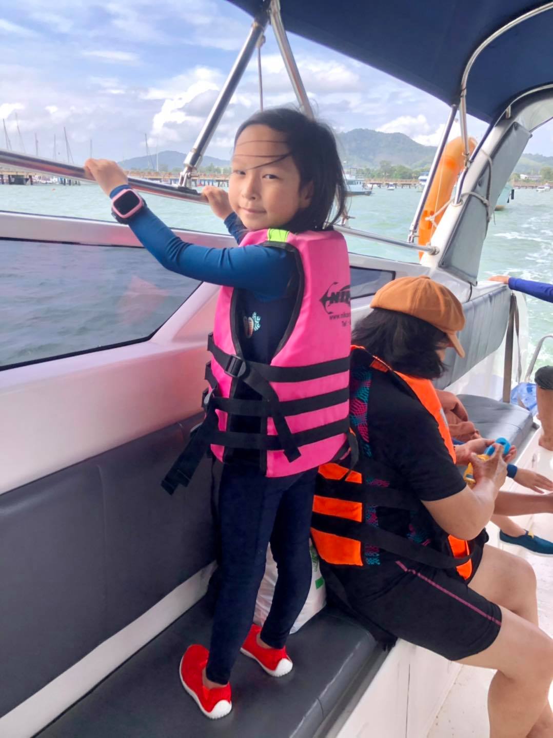 เด็กดอยมาทะเลก็ต้องเล่นน้ำทะเล ดำน้ำ เราเลือกเที่ยวที่เกาะเฮ ขึ้นที่ท่าเรืออ่าวฉลอง ใช้บริการเช่าเรือของ Nikorn เป็นเรือ Speed boat เหมาลำราคา 6,000 บาทค่ะ