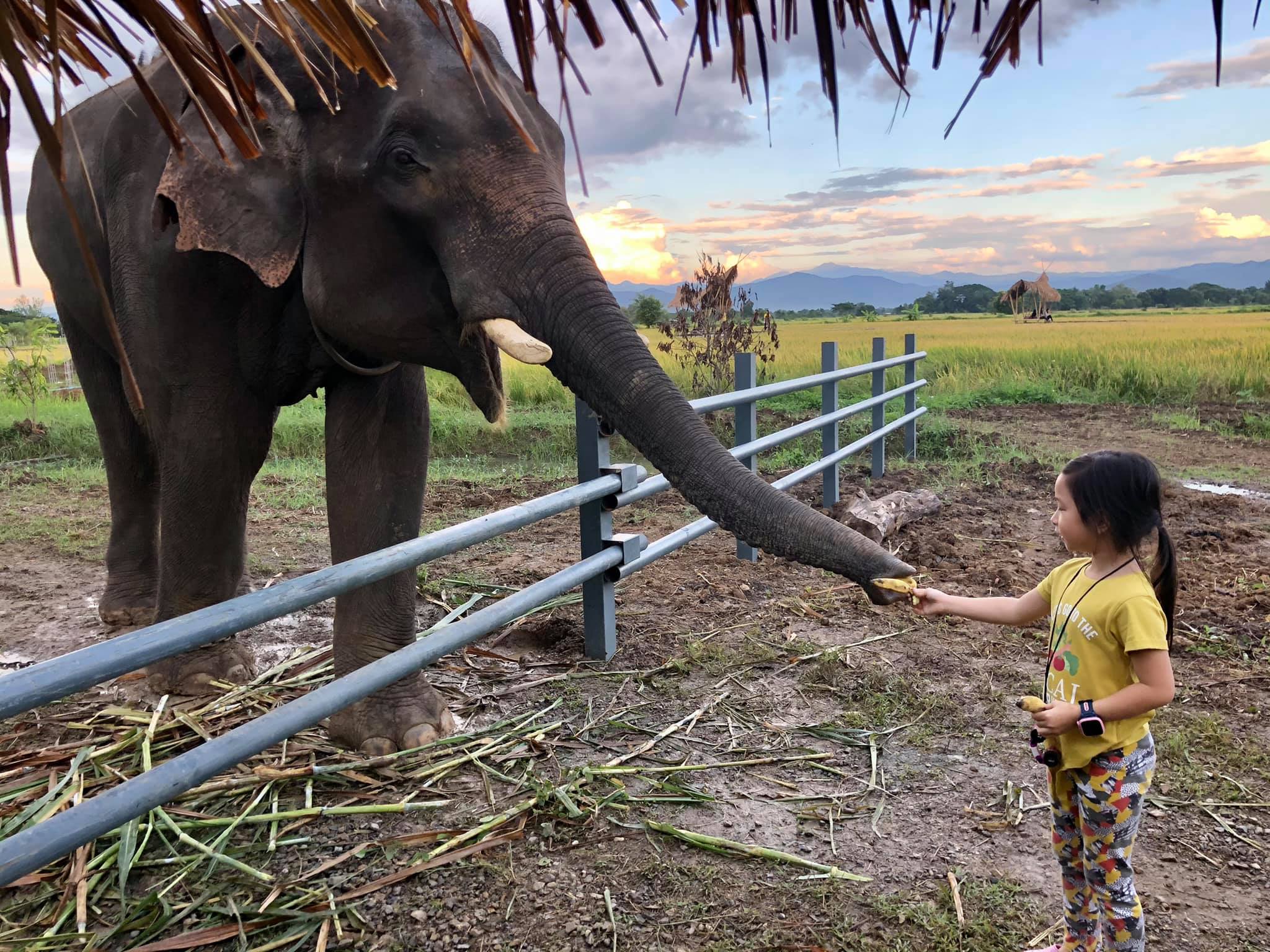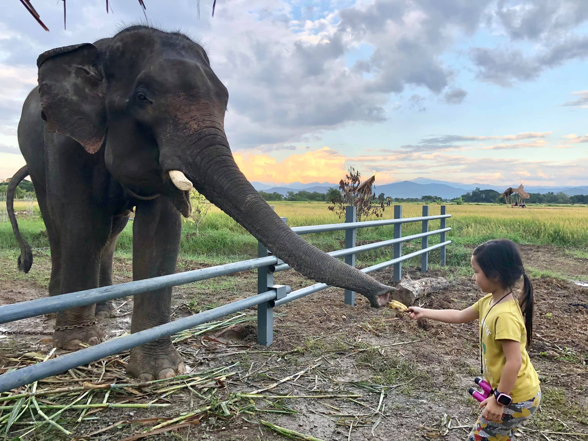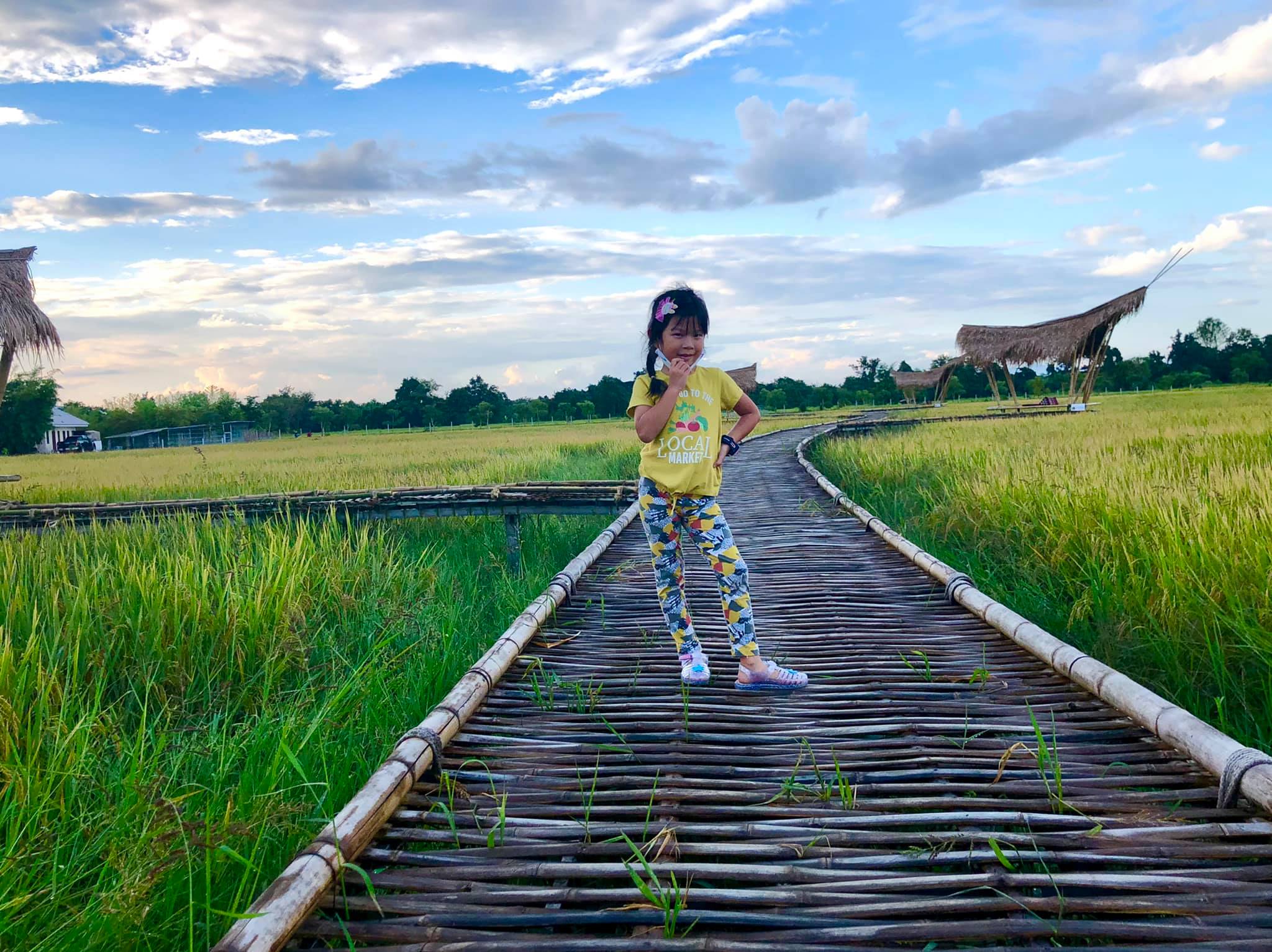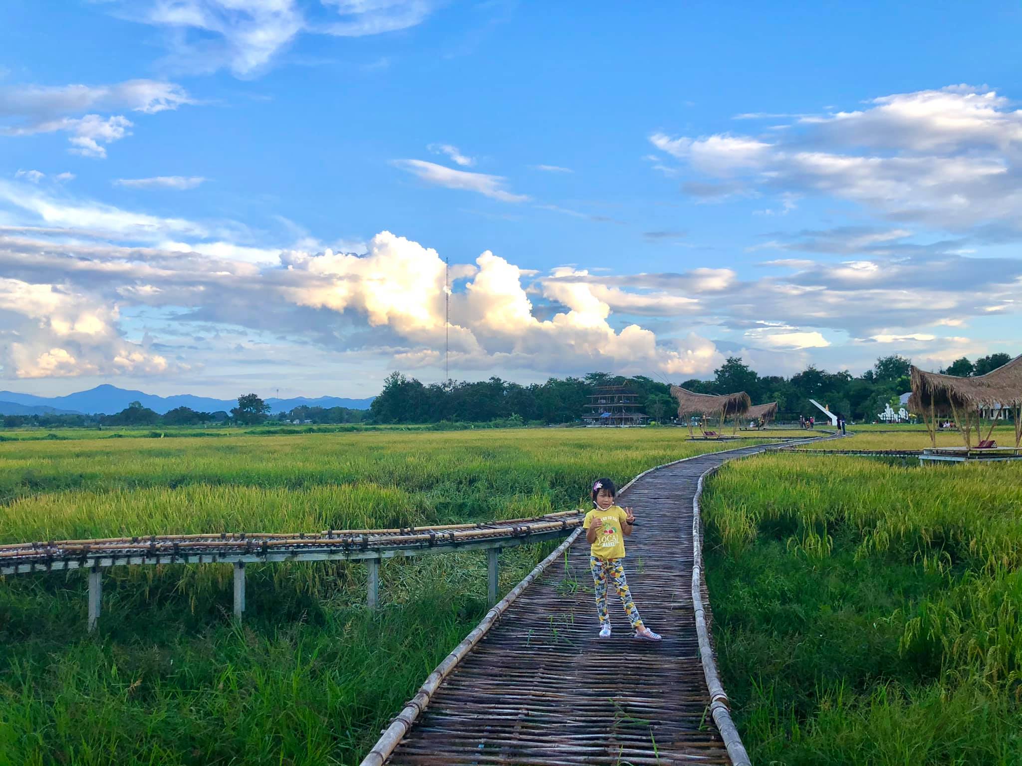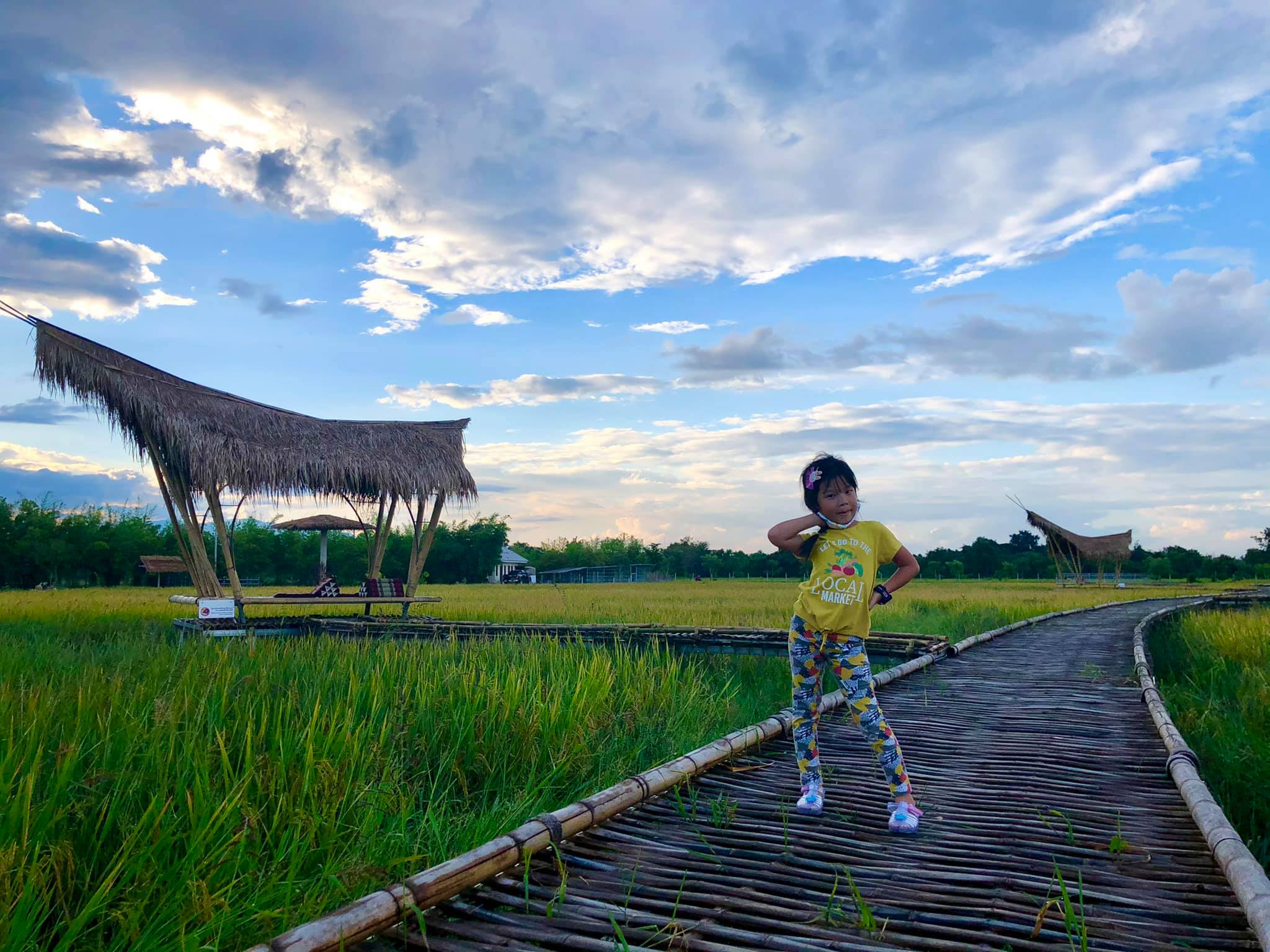 ซึ่งระหว่างรอคิวถ่ายรูปบันได เราก็เดินเที่ยวทุ่งนา ได้สูดหายใจเต็มปอด มันสดชื่นมากๆ เจอพี่ช้างที่เพิ่งมาใหม่ ซึ่งลูกชอบช้างมากอยู่ป้อนอาหารนานกว่าจุดอื่นๆ แถมมีเป็ด ห่าน ปลาให้เด็กๆเดินเที่ยวสนุกๆ