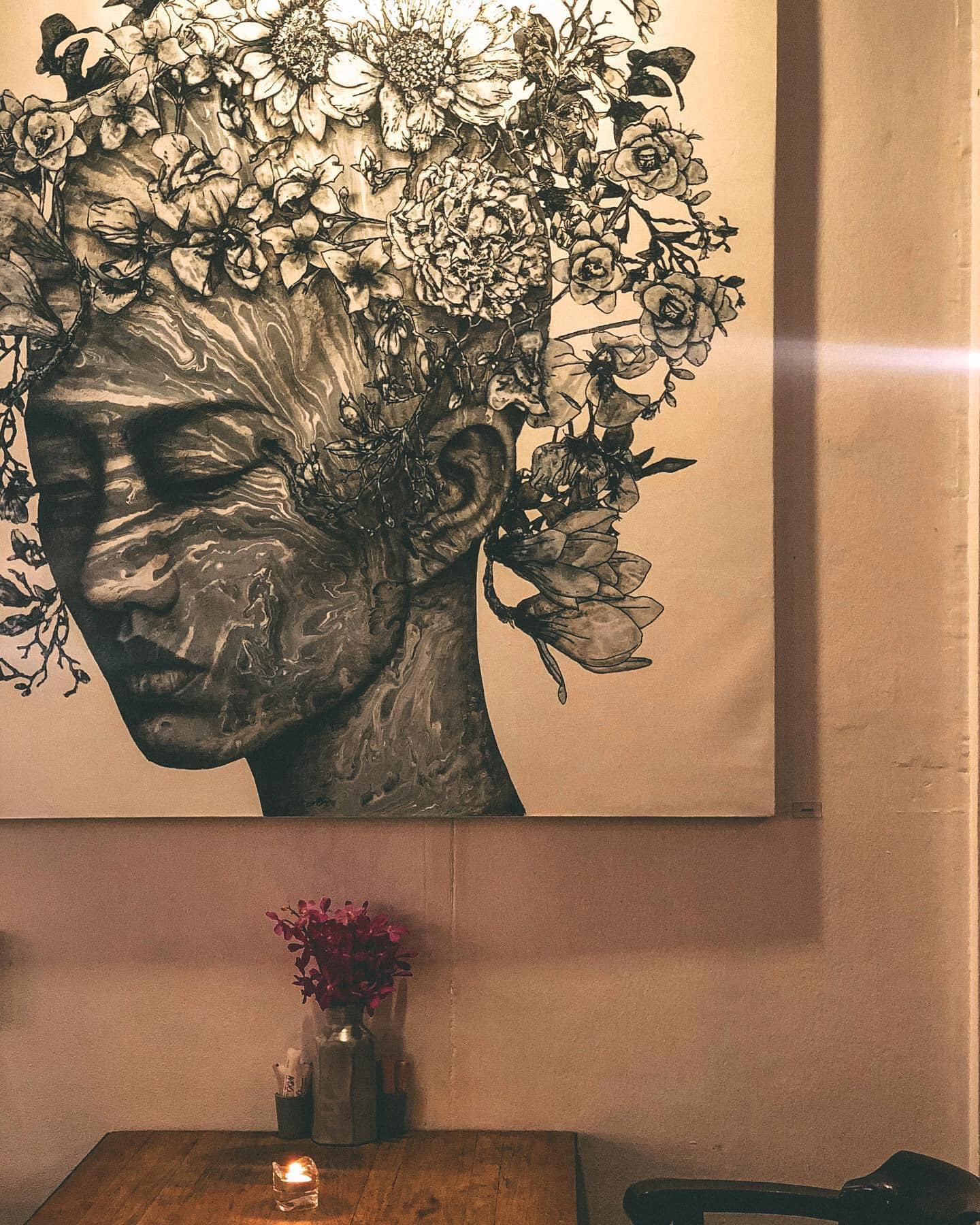 ร้านนี้ประดับไปด้วยดอกไม้มากมาย เห็นแล้วรู้สึกมีชีวิตชีวา สดชื่นมากๆค่ะ ทำให้มีจุดถ่ายรูปเยอะมาก รวมถึงของตกแต่งร้านที่มีดีไซน์