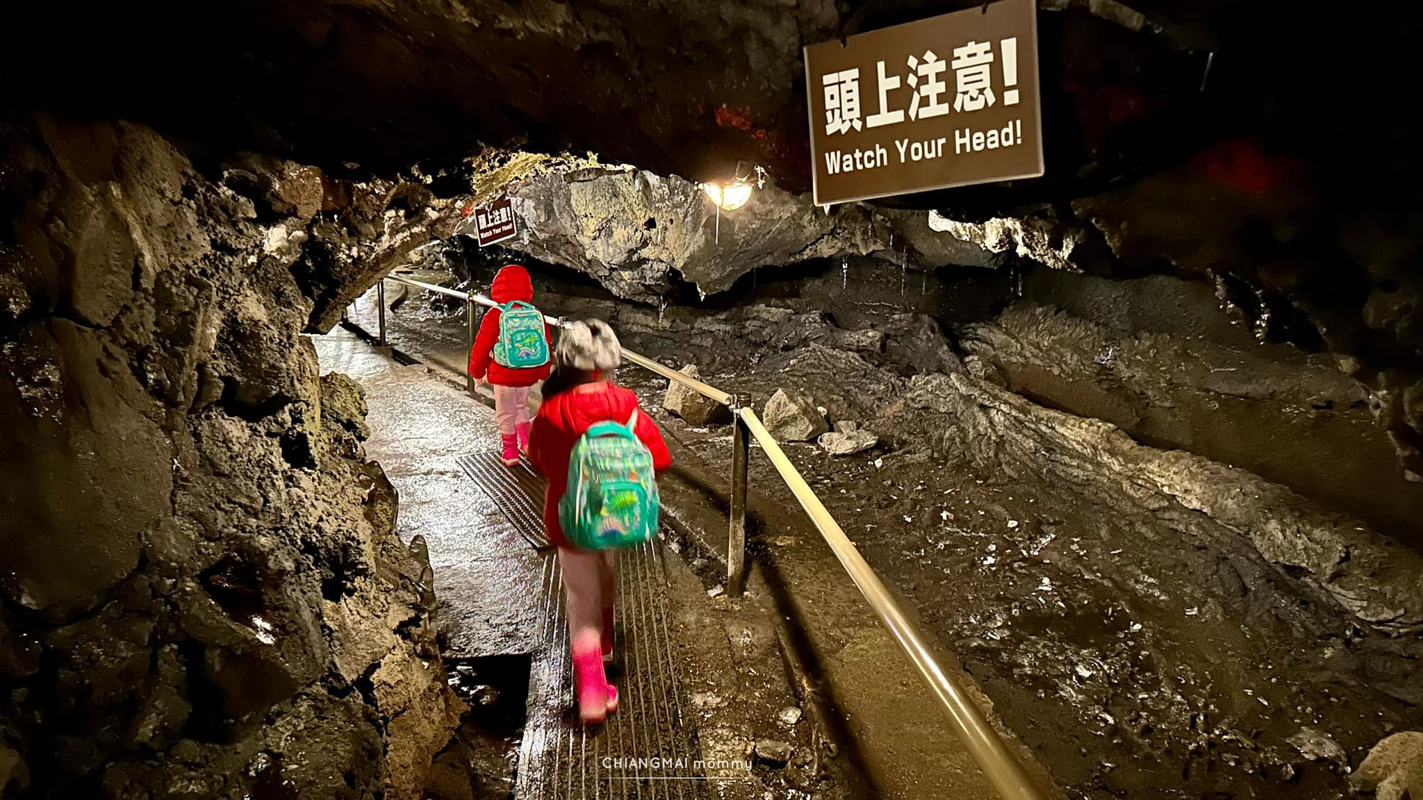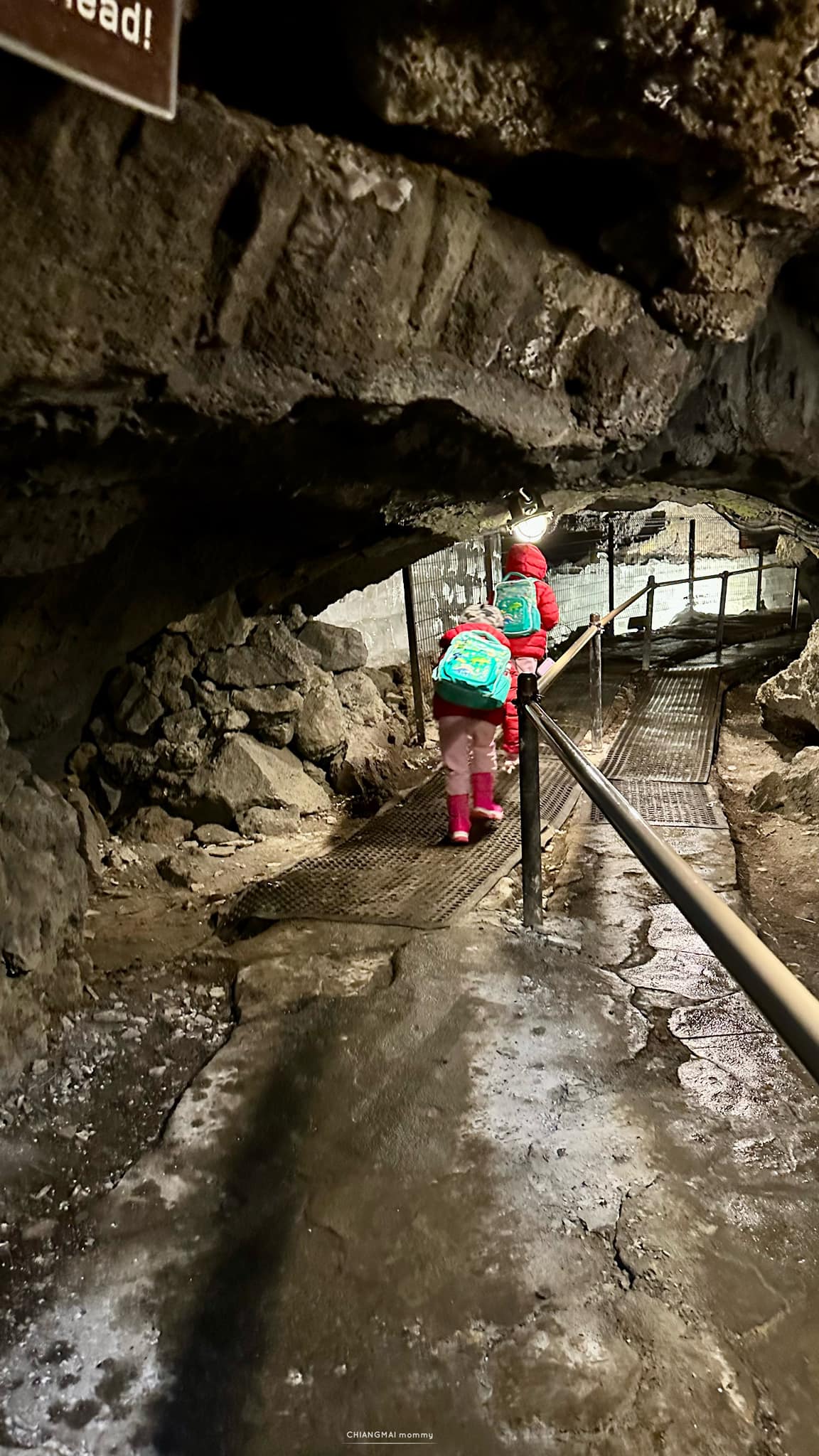 พอไปถึงบรรยากาศคือเป็นป่าแบบโบราณ ต้นไม้สูงใหญ่มากๆ สวยและเงียบสงบ ทางเข้าจะลึกลงไปค่อนข้างชันและตัวถ้ำจะมีจุดที่ต้องก้มตัวเดินบางจุด ด้านในคือหนาวแบบยะเยือกค่ะ ขนตานี่เป็นน้ำแข็งเลยค่าาา แง่มุมหนึ่งที่โดดเด่นของถ้ำแห่งนี้ คือ ไม่เกิดเสียงสะท้อนใดๆ เนื่องจากผนังถ้ำที่เป็นหินบะซอลต์เป็นตัวดูดซับเสียง ว้าวมากกกก ภายในใช้เวลาแค่ 15-30 นาทีก็เดินจบแล้วนะคะ ระยะทางสั้นๆแต่ตื่นตาตื่นใจ เด็กๆได้เรียนรู้ธรรมชาติความแตกต่างทางธรณีวิทยาที่สนุกและน่าสนใจ ![]()