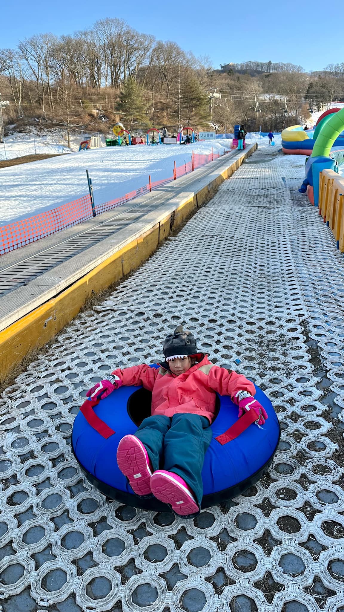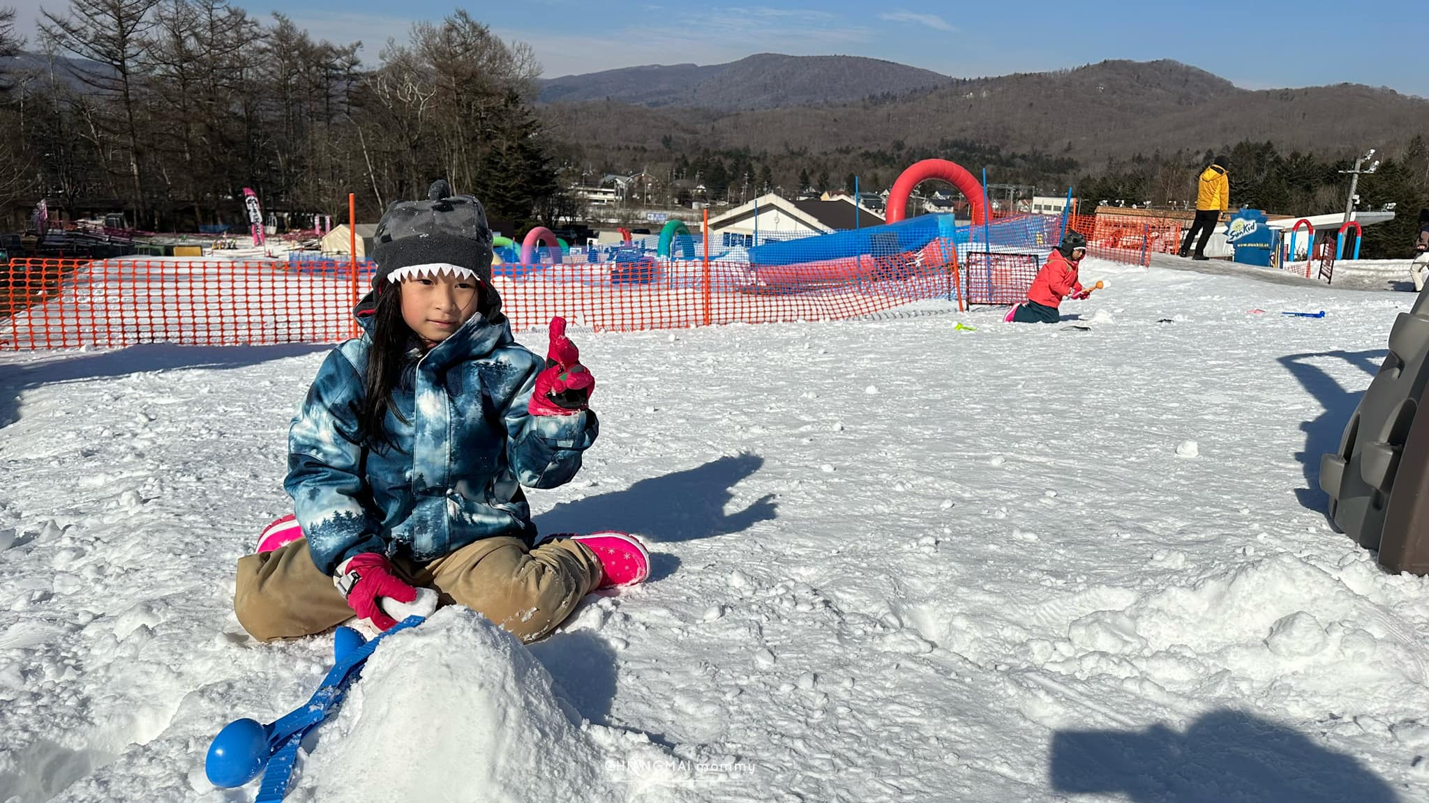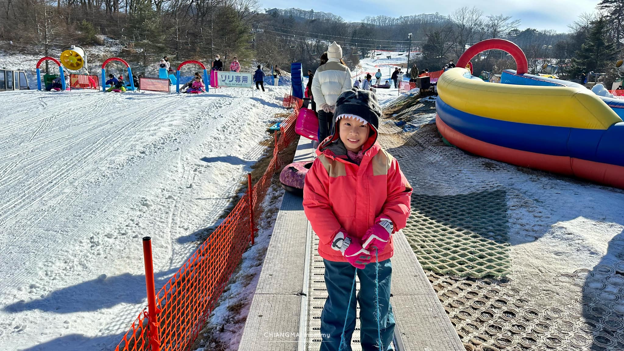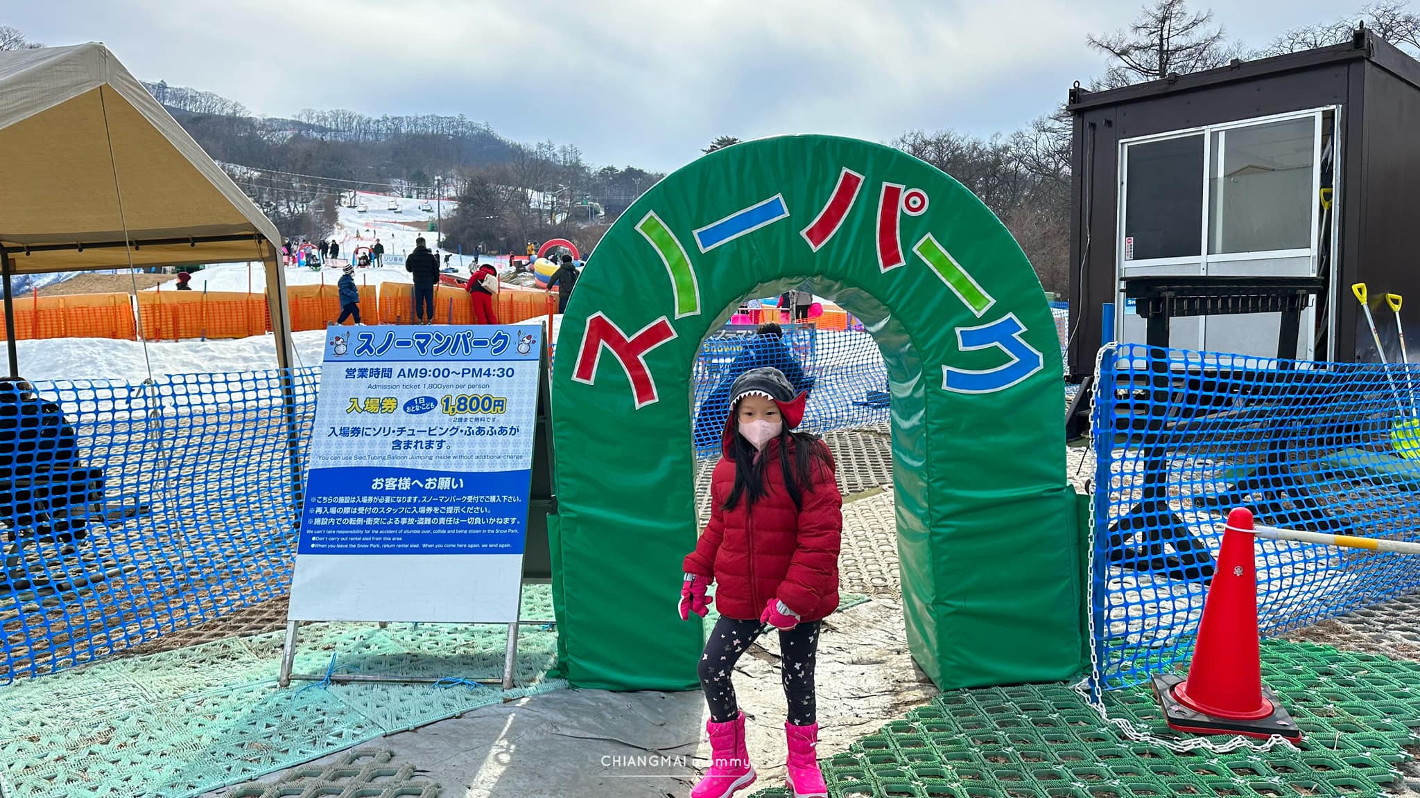 เราสามารถ walkin เข้าไปที่สนามเด็กเล่น Snowman Park ได้เลย เปิด 9:00am – 4:30pm ค่าบริการ 1800 เยนนน~ ตรงนี้จะมีชุดสกีให้เช่าด้วยค่ะ แนะนำว่าควรใส่ชุดสกีเล่นหิมะเพราะเสื้อผ้าจะได้ไม่เปียก เข้าไปเด็กๆมองซ้ายมองขวาเล่นอะไรดี ยังไงน้าไม่เคยเล่น เราเลือก Tubing (ห่วงยาง) ก่อนเพราะคนน้อย ตรงนี้จะต้องแบกห่วงยางไปเองนะคะ แต่จะมีบันไดเลื่อนให้ ค่อยยังชั่ว!! ตรงนี้เด็กๆนั่งห่วงยางแล้วสไลด์ลง มันก็จะหมุนๆเวียนหัวนิดหน่อยค่ะ แต่ลูกชอบมาก
