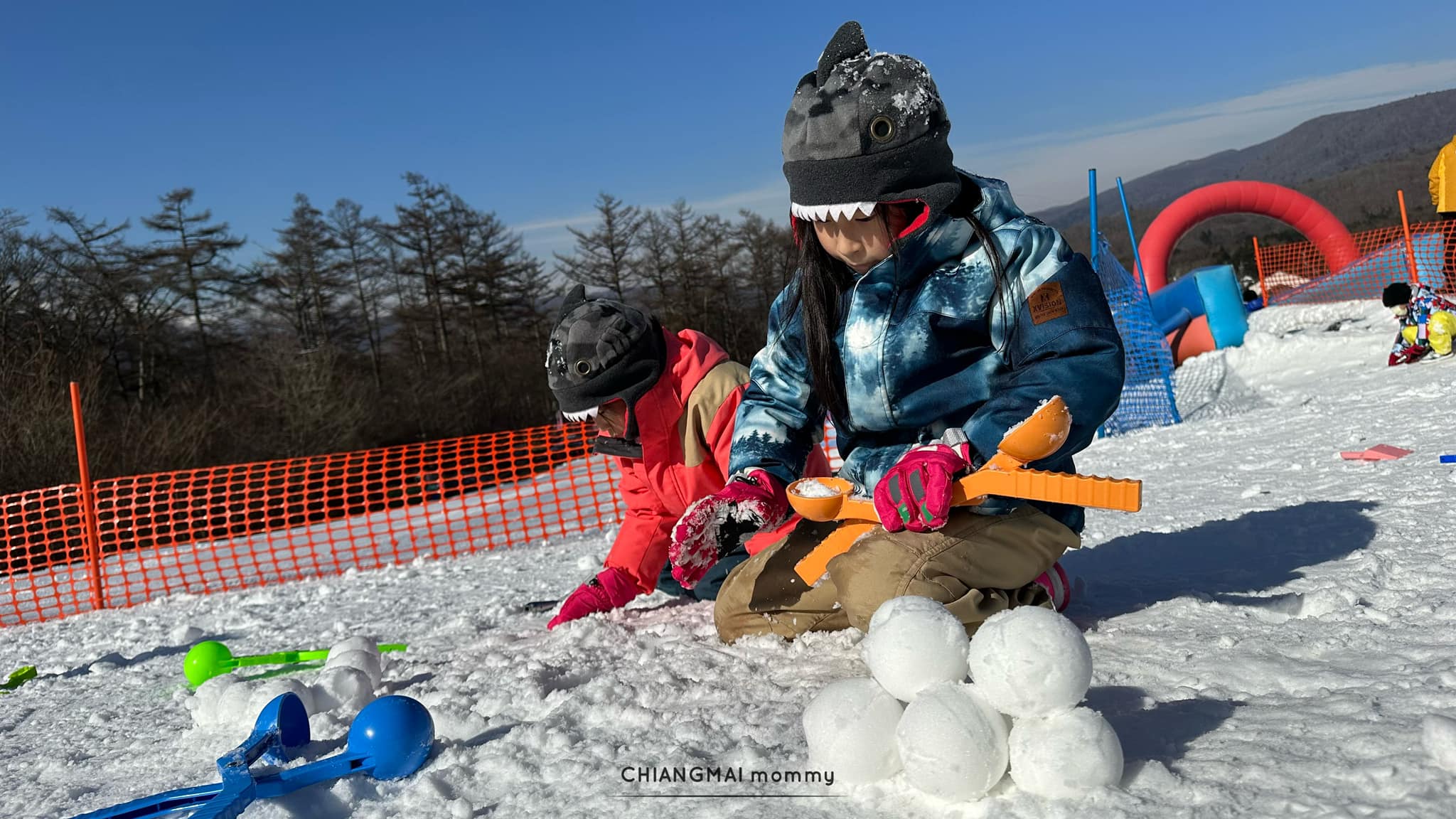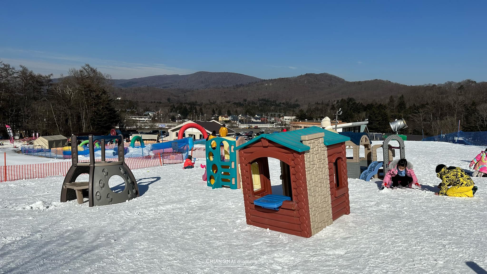 ตรงนี้จะมีสนามเด็กเล่นนิดหน่อย แล้วก็มีชุดเครื่องเล่นหิมะให้ เด็กๆก็ขุดๆปั้นๆ snow ball เอาไว้เล่นปากันสนุกมากกกกก นอกจากนั้นก็มีบ้านลมเล็กๆให้เด็กๆเล่นค่ะ แม่ก็มานั่งพักที่ด้านในได้มีฮีตเตอร์อุ่นสบายซึ่งสามารถมองเห็นเด็กๆขณะเล่นได้อยู่นะคะ