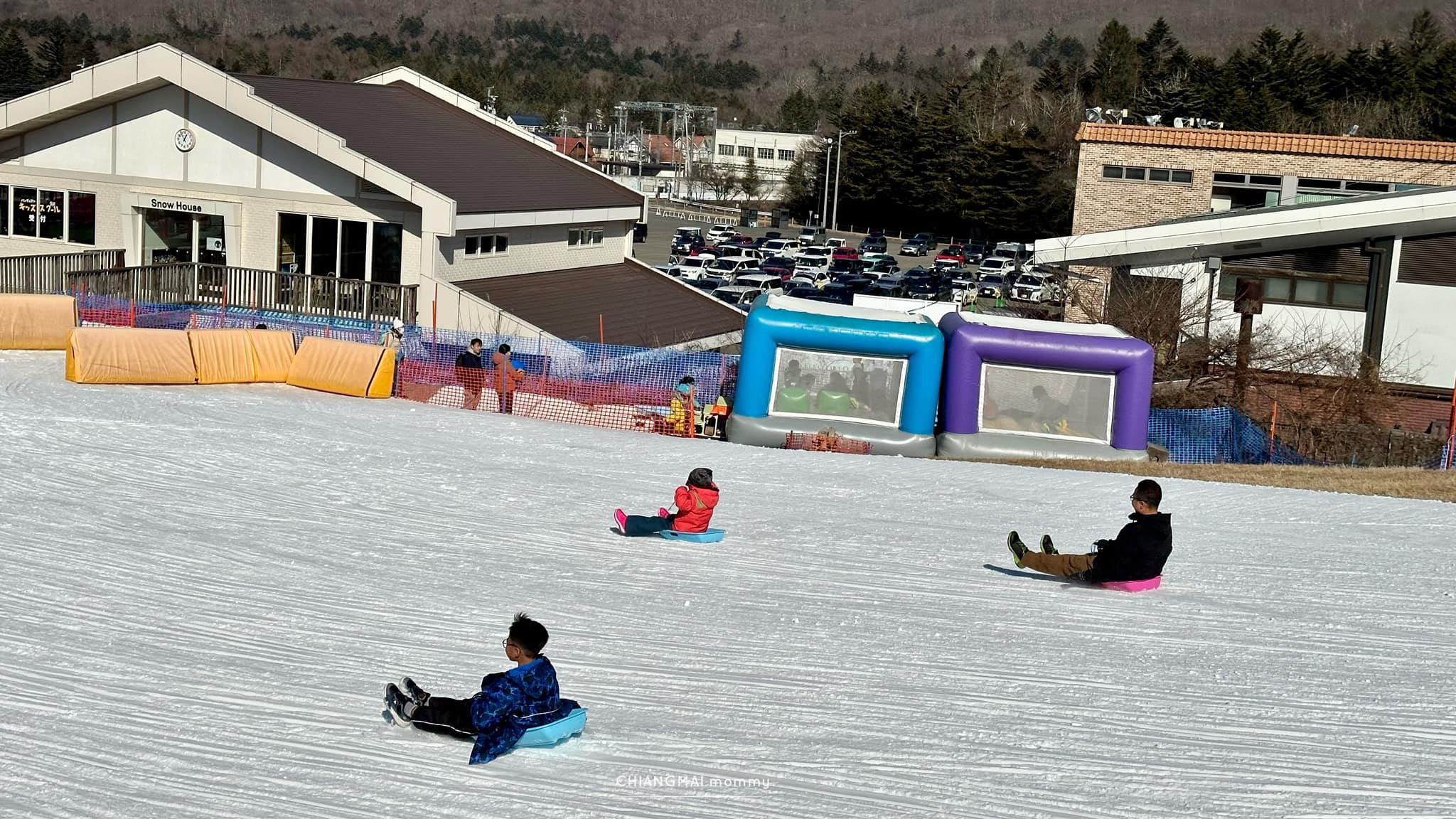 แม่พาเด็กๆไปที่สกีรีสอร์ต Karuisawa Prince Hotel and Resort จะมีรถ Shutter bus บริการนะคะ ที่นี่มีลานหิมะสำหรับเด็กโดยเฉพาะค่ะ และมีสนามเด็กเล่น Outdoor กว้างๆมี Sled-Tubing -บ้านลม-ชุดของเล่นหิมะ มีจุดเช่าชุดสกี มี ski course ให้บริการแต่ต้องจองล่วงหน้าค่ะ ถ้าหนาวก็มาพักที่ห้องพักได้นะคะ มีฮีตเตอร์และตู้เครื่องดื่ม ห้องน้ำบริการใกล้ๆจุดที่ลูกเล่น หรือถ้าอยากทานร้านอาหารก็มีเปิดในโรงแรมค่ะ เล่นกันสนุกมากๆอยู่ข้างนอกยาวๆไม่พักเลยค่ะ เพราะเสื้อผ้าอุ่นสบาย 5 ชั้น!! พร้อมเล่นยาวๆมาก