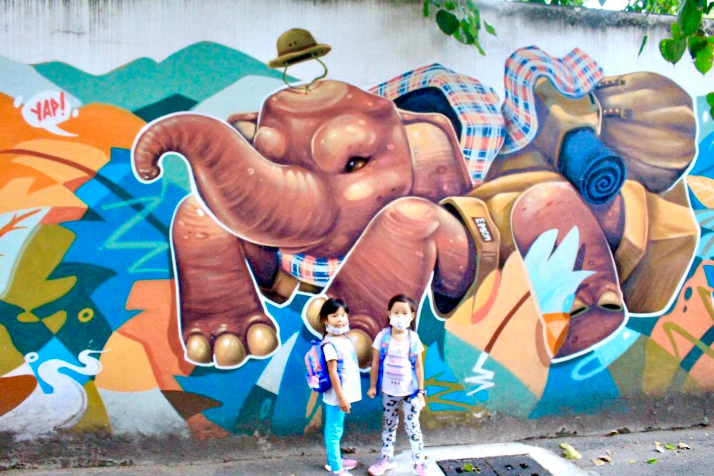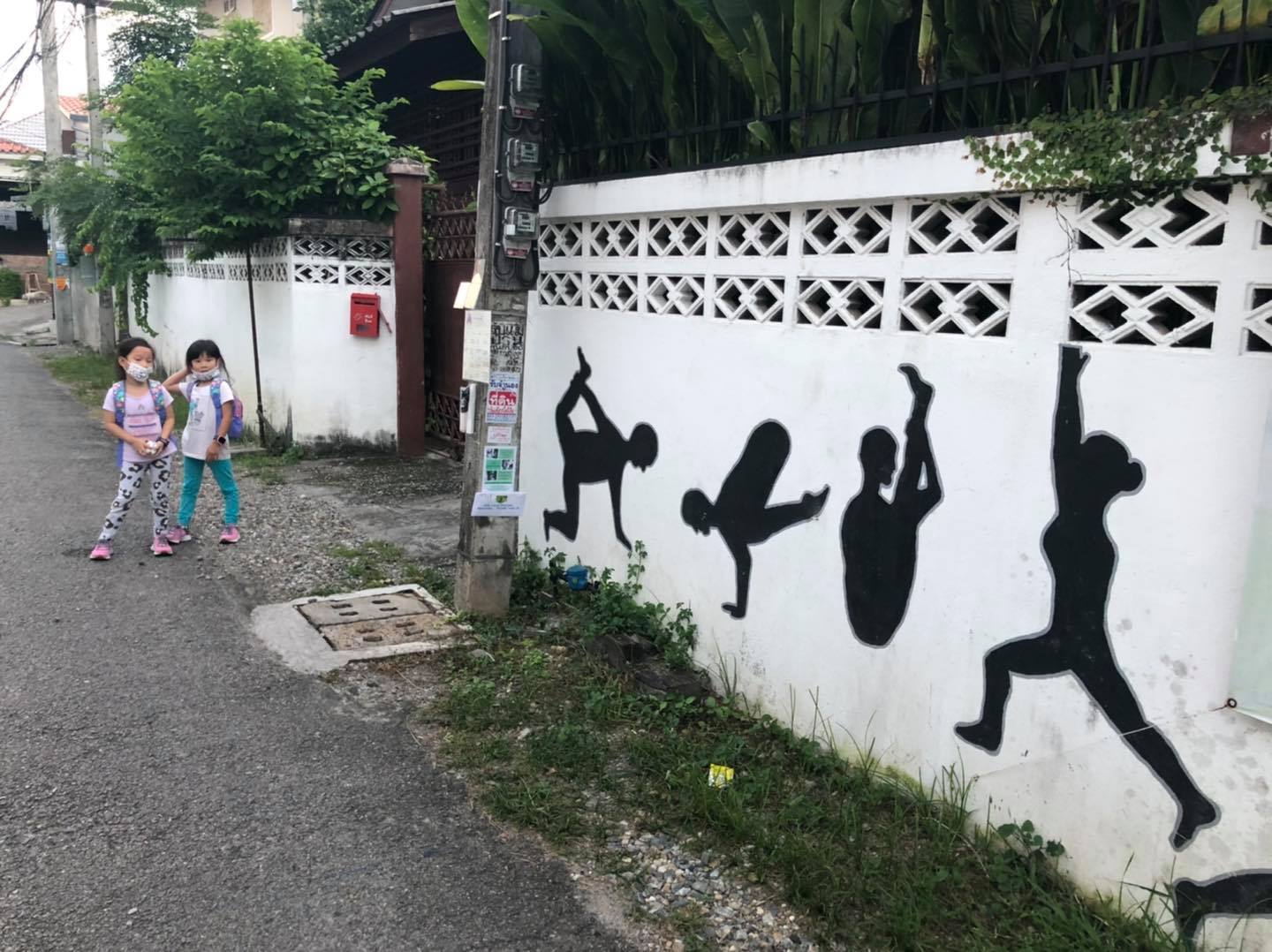 จริงๆย่านนี้จะคึกคักมาก มีตลาดนัดทุกวันศุกร์ แต่เพราะช่วงโควิดจึงค่อนข้างเงียบเหงา ตลาดจึงหยุดไปก่อน แต่เย็นๆอากาศกำลังดี เลยพาเด็กๆเดินเที่ยวออกกำลังกายเปลี่ยนบรรยากาศชมเมืองเก่าบ้าง ชมนู้นนี้แวะถ่ายรูปสวยๆกับศิลปะข้างถนนซึ่งมีค่อนข้างกระจายไปหลายซอย ต้องเดินสำรวจกันหน่อยค่ะ