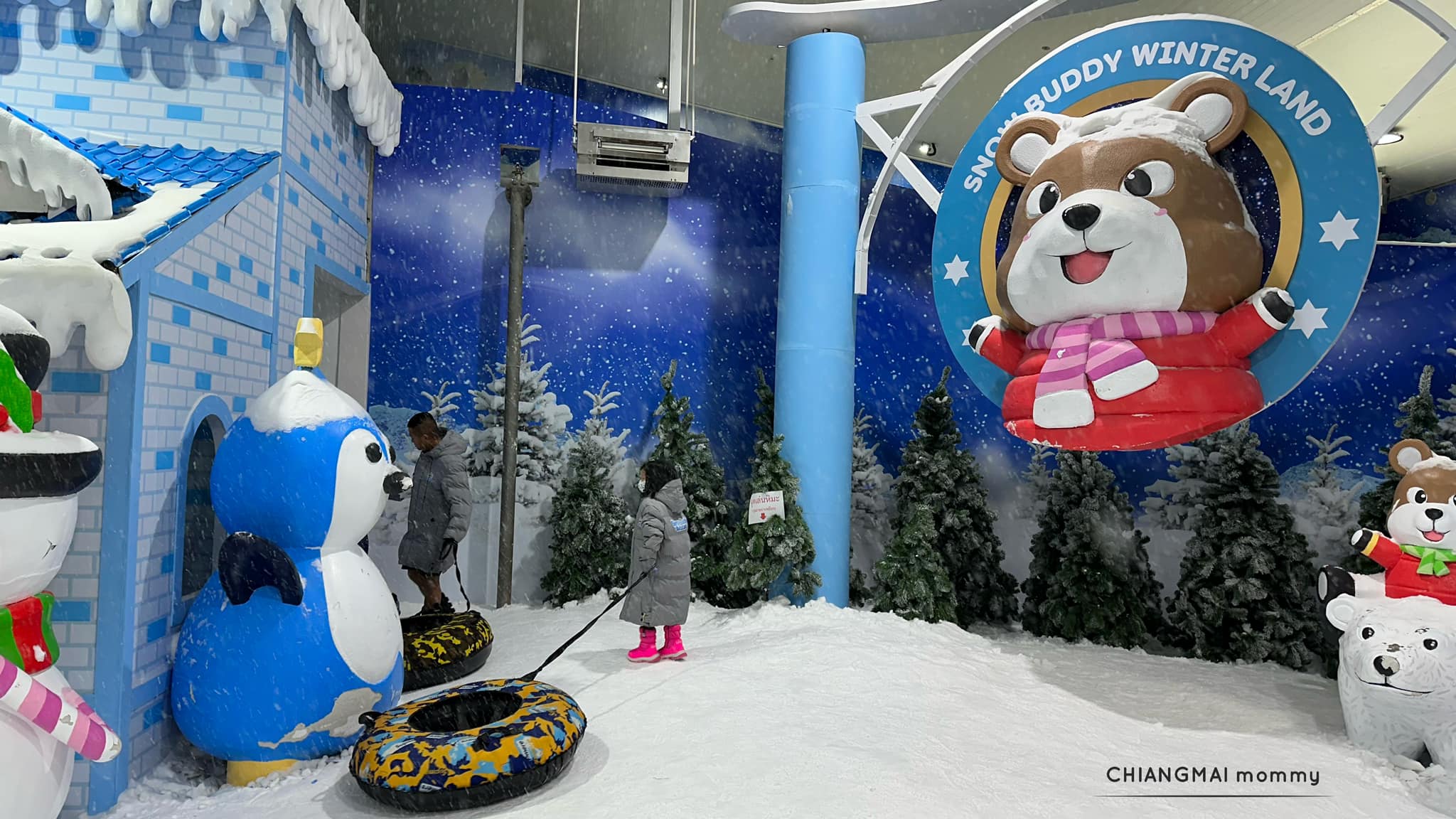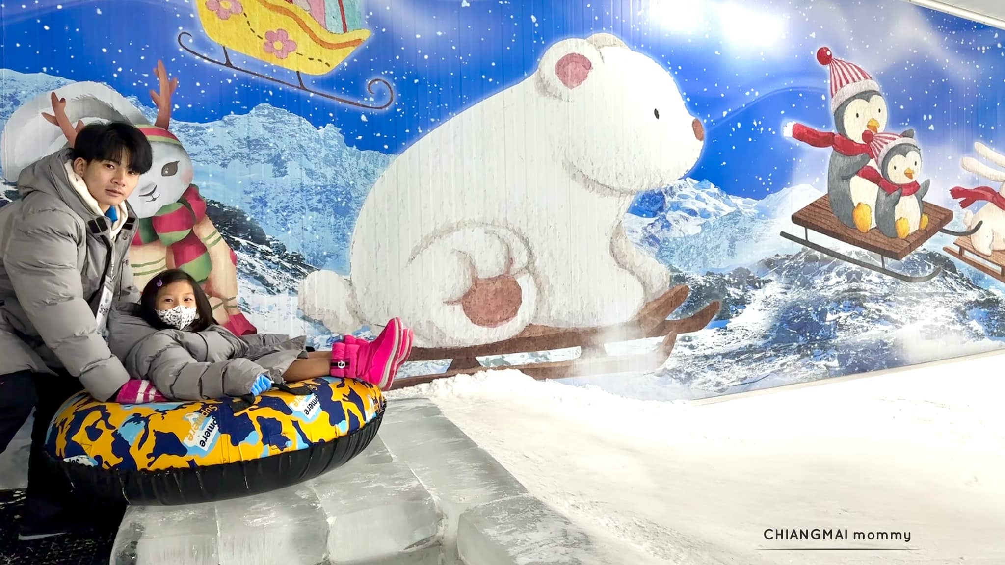 หลังจากนั้นก็เดินเข้าไปด้านใน โอ้ย น่ารักมาก หิมะคือหิมะจริงๆค่ะมีโปรยปรายลงมาจากด้านบนเหมือนหิมะกำลังตก ห้องคือเก็บอุณหภูมิดีไม่มีลื่นๆแฉะๆ ด้านในสว่างสดใส มีTube ให้เล่นสไลด์เดอร์ เด็กๆชอบมากกกกกก แต่เล่นเสร็จต้องขนขึ้นไปเองนะคะ