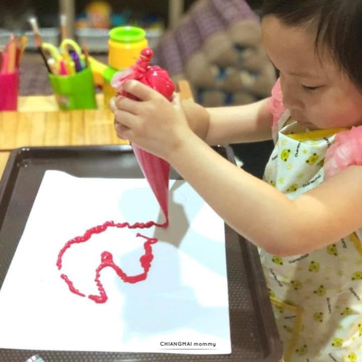 4. Puffy Paint งานศิลปะจากห้องครัว ผสมสูตรจากของในครัวแล้วพอวาดเสร็จนำไปเข้าไมโครเวฟจากภาพวาดธรรมดาก็จะกลายเป็นงานศิลปะกึ่ง 3D สวยๆได้ผิวสัมผัสนุ่มนิ่ม เพิ่มการรับรู้ทางประสาทสัมผัสแปลกใหม่ให้ลูกกันค่ะ