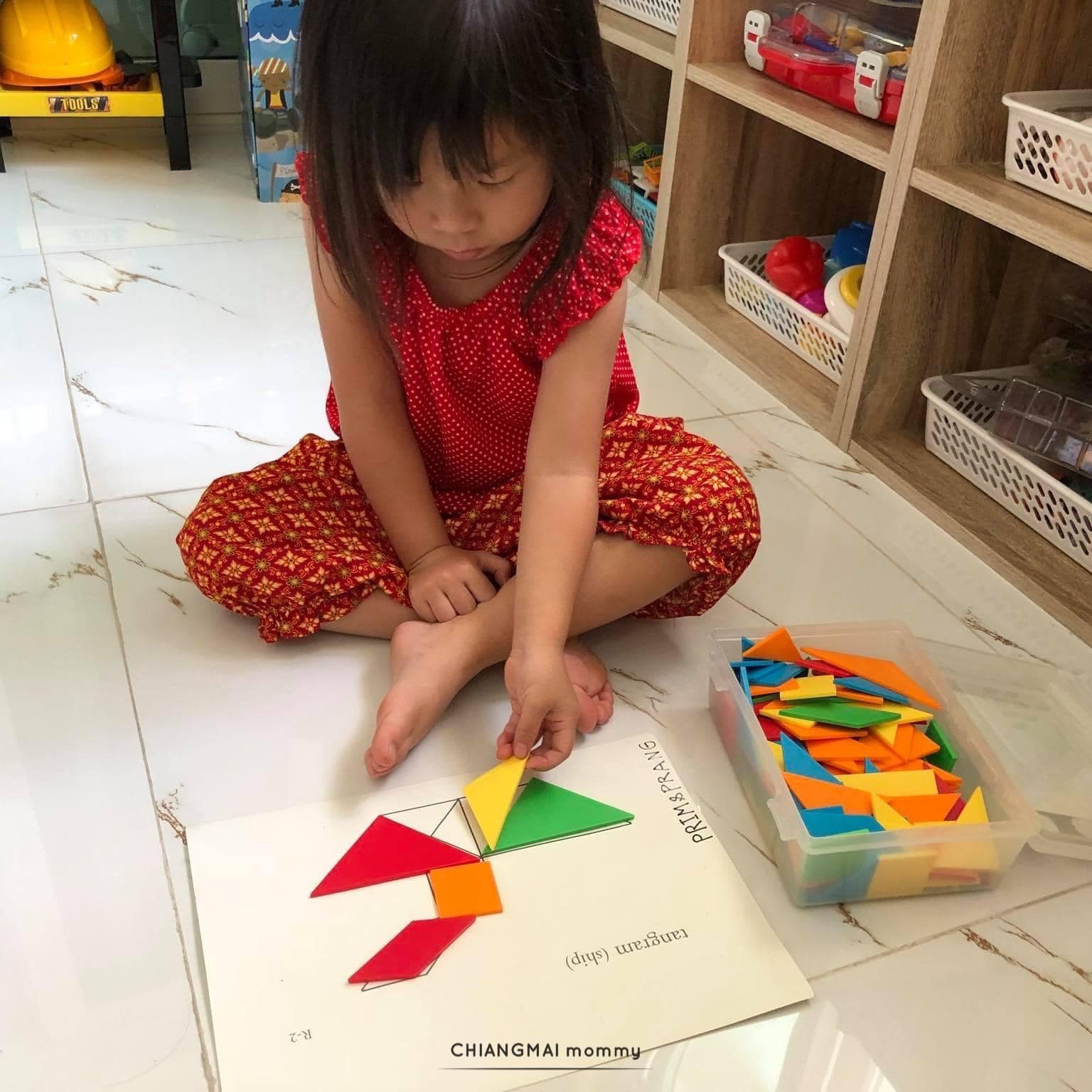 16. Tangram ปริศนาแทนแกรม เป็นการแก้โจทย์วางรูปเรขาคณิตทั้ง 7 ได้ฝึกคิดนอกกรอบ การเปลี่ยนมุมมอง ความยืดหยุ่นทางความคิด เสริมสร้างจินตนาการและสมาธิในการเล่น โจทย์หาได้ทั่วไปในเน็ตเลยค่ะ