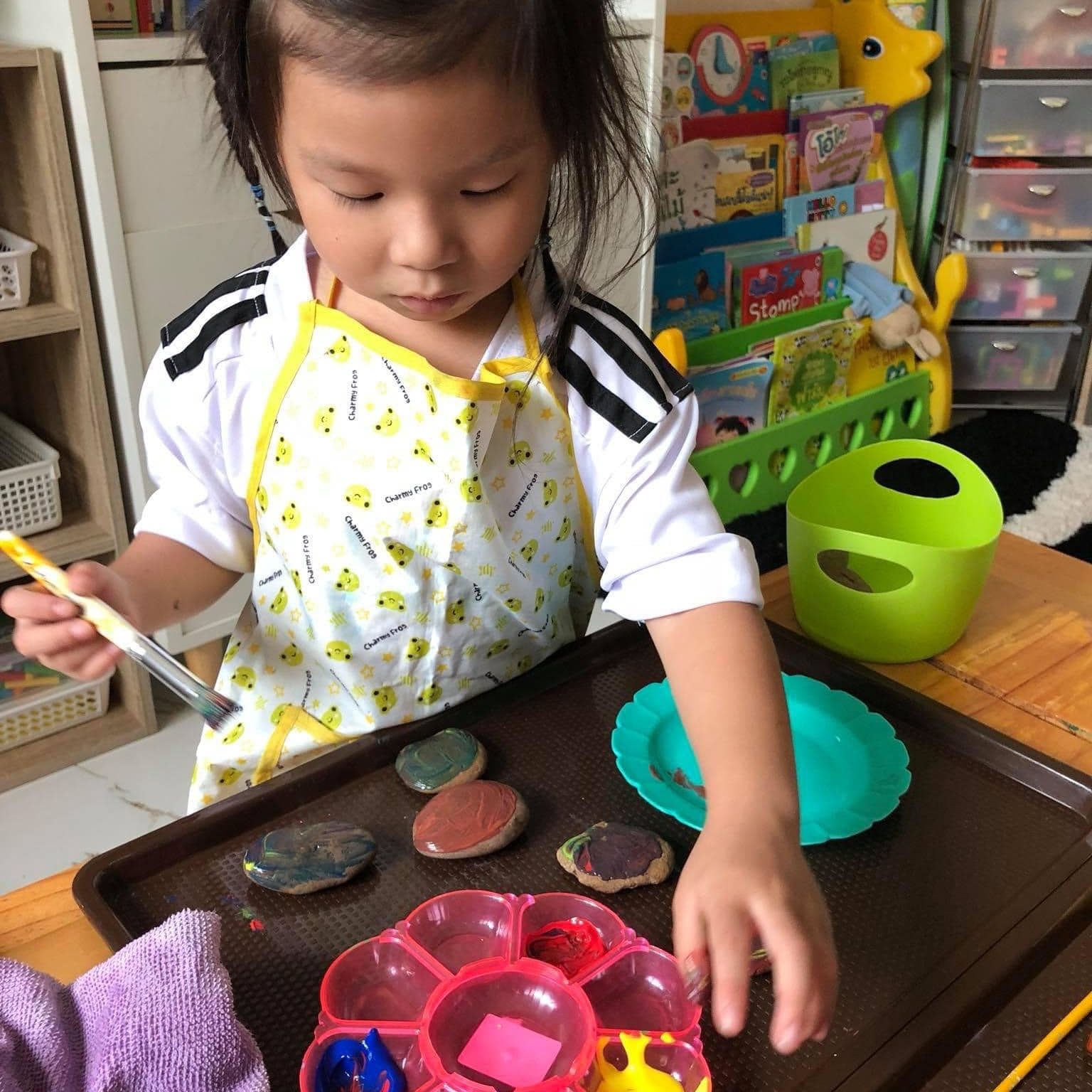 17. ระบายสีบนก้อนหิน ก้อนหินที่มีรูปทรงตามธรรมชาติหลากหลายช่วยกระตุ้นจินตนาการเด็กๆได้ดีเลยค่ะ นำมาระบายสีเป็นสัตว์ต่างๆ ตามความคิดของเด็กๆ ซึ่งเป็นการระบายสีบนวัตถุ 3D ที่ต้องพลิกไปมาเปลี่ยนมุมมองหลายๆมุมค่ะ