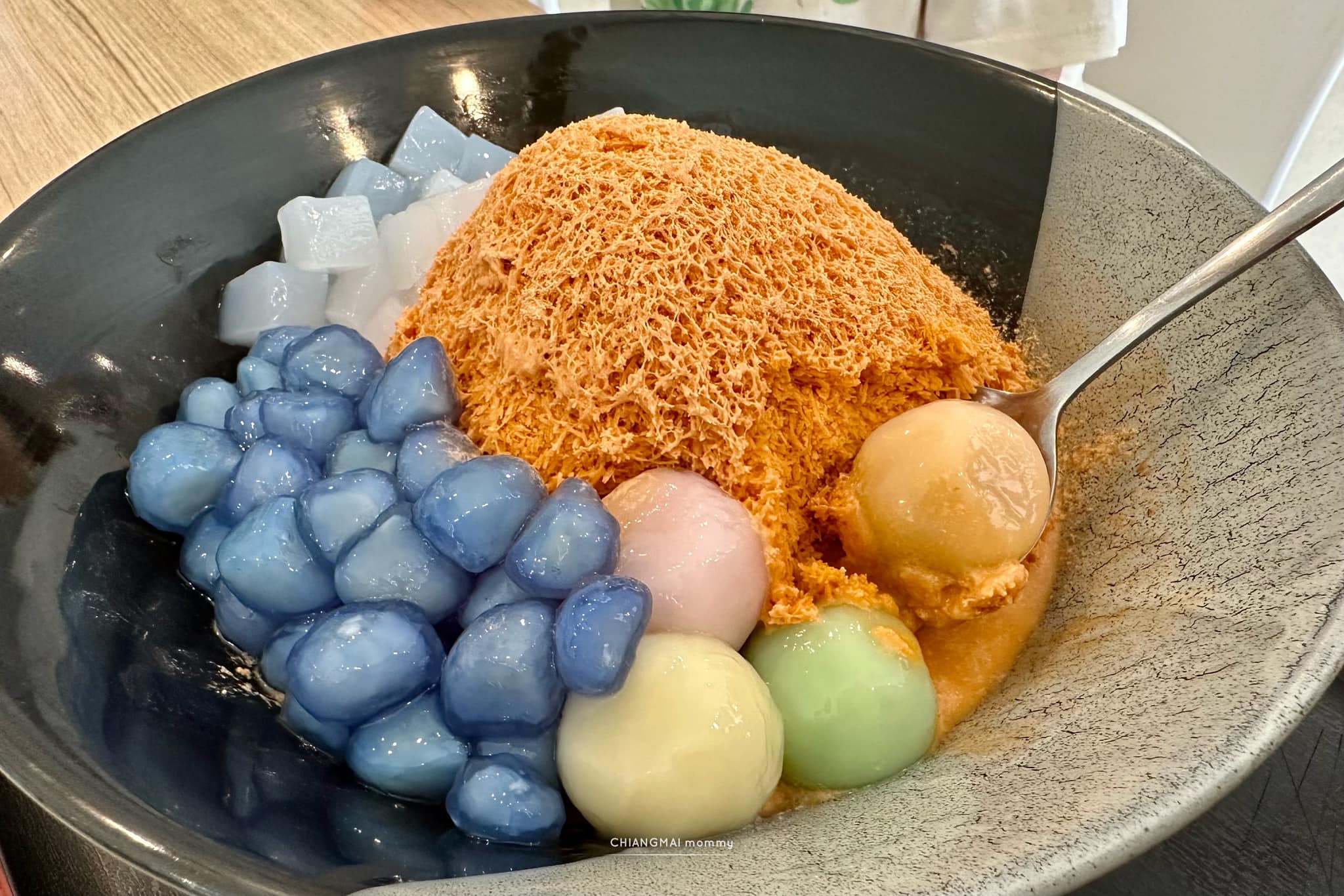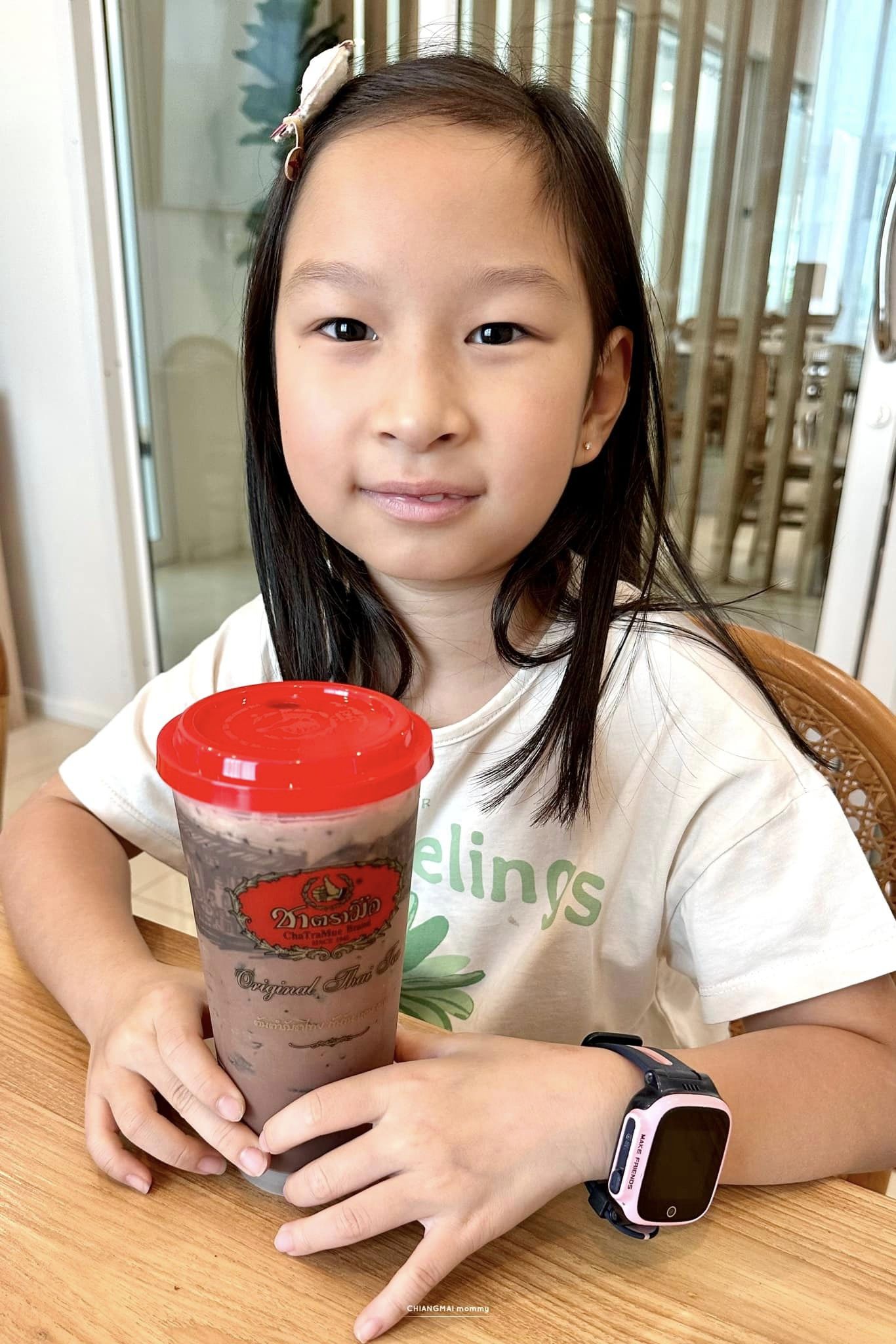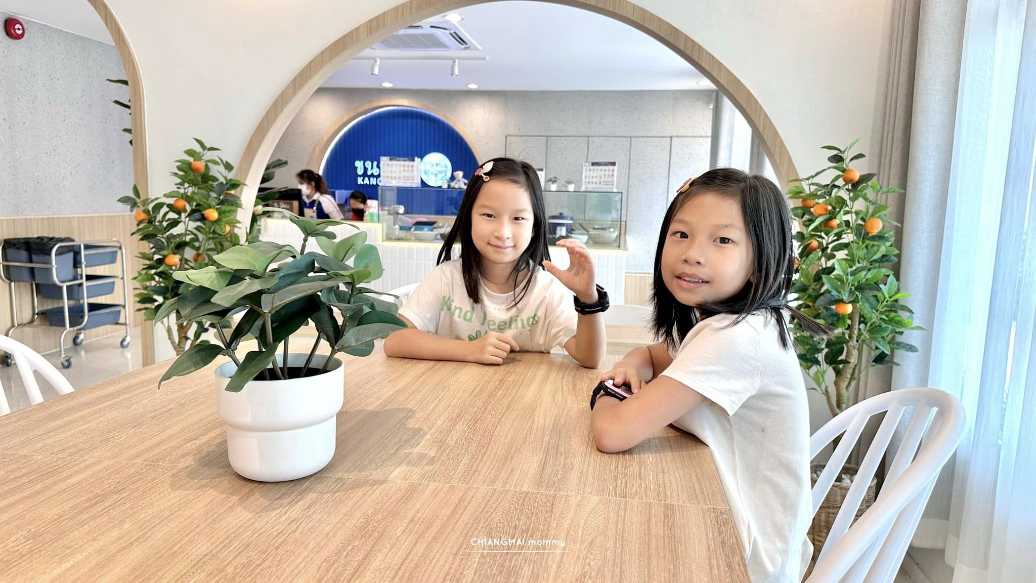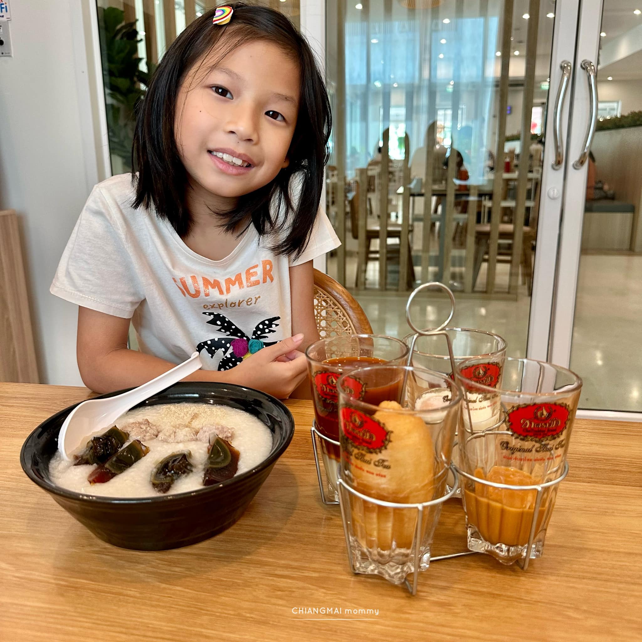 ส่วนเด็กๆไปร้านขนมบ้านแม่ค่ะ ร้านดังในเชียงใหม่ที่มีหลายสาขา แต่ที่สาขานี้พิเศษตรงที่มีเมนูที่ใช้ชาตรามือมาทำขนม ยิ่งหอมหวานอร่อยไปใหญ่ แม่สั่งบิงชูกะทิชาไทยให้เด็กๆทาน ตอนนี้แม่อนุญาตให้ทานชาได้บ้างแล้วค่ะ ติดใจกันมาก ขอกินเกินโควต้าตลอด