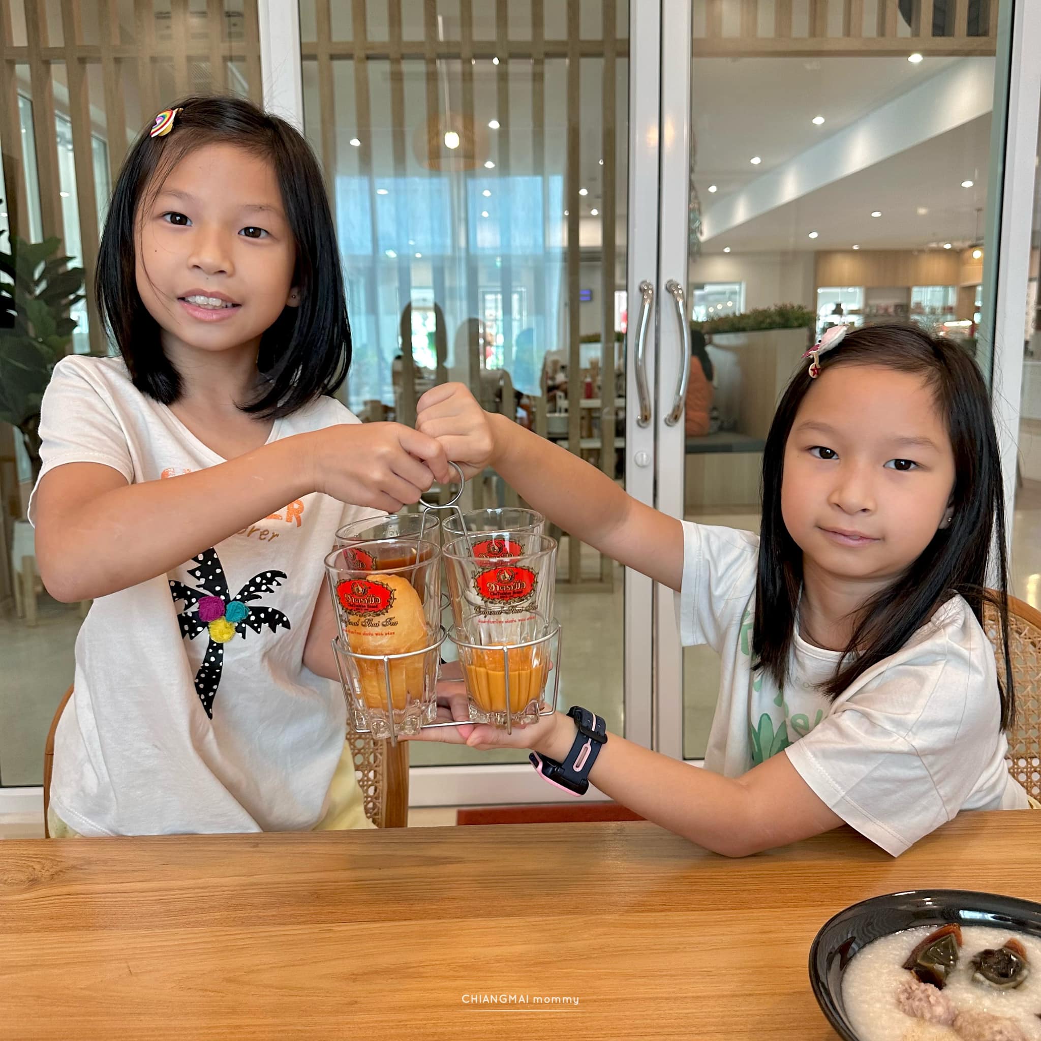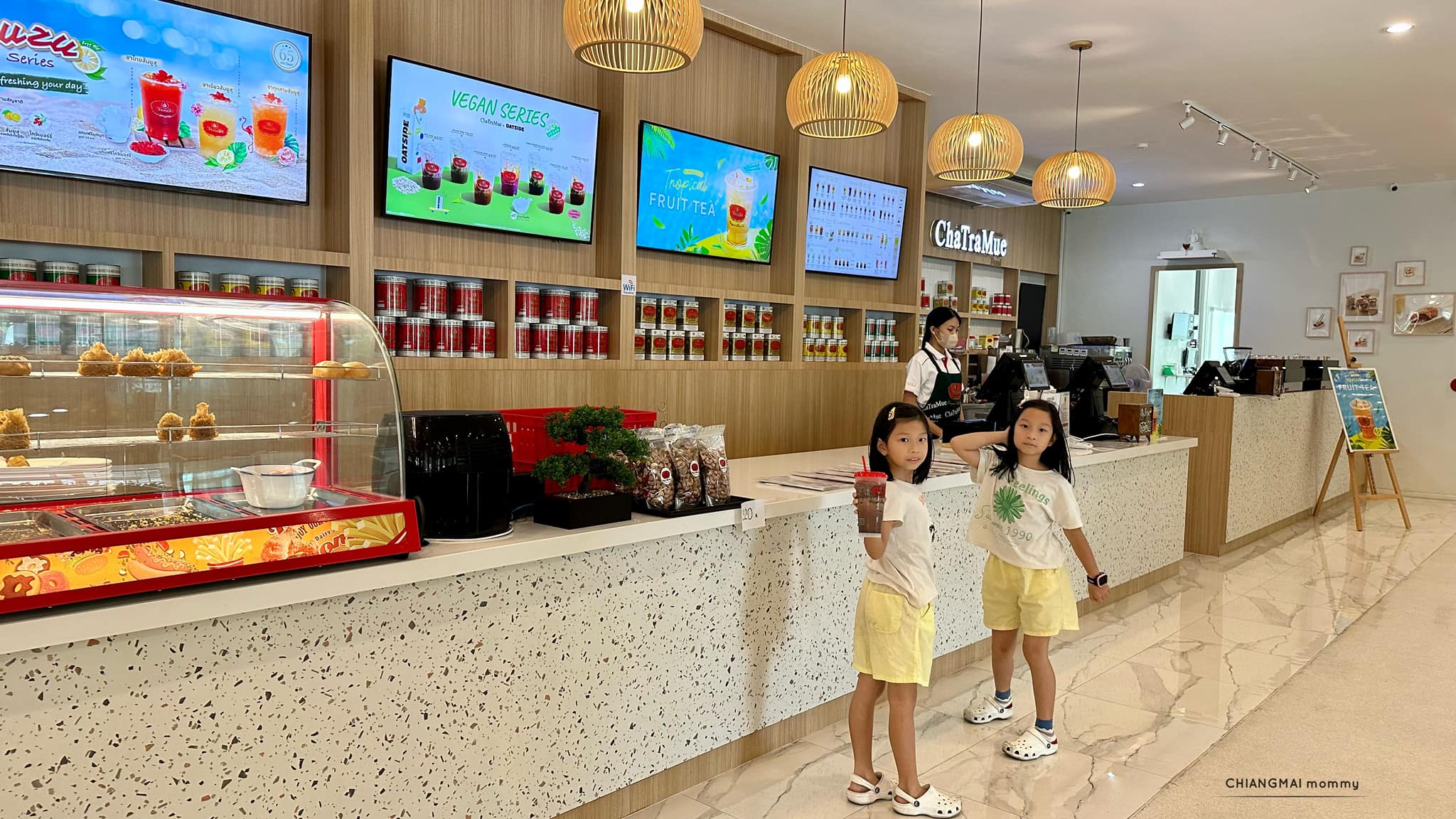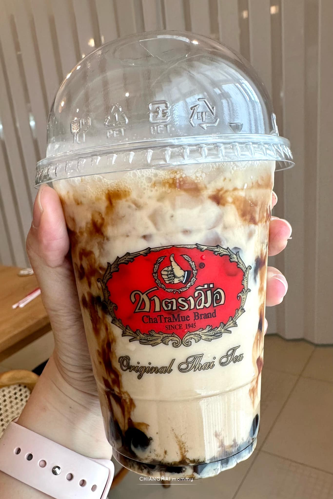 ส่วนเด็กๆไปร้านขนมบ้านแม่ค่ะ ร้านดังในเชียงใหม่ที่มีหลายสาขา แต่ที่สาขานี้พิเศษตรงที่มีเมนูที่ใช้ชาตรามือมาทำขนม ยิ่งหอมหวานอร่อยไปใหญ่ แม่สั่งบิงชูกะทิชาไทยให้เด็กๆทาน ตอนนี้แม่อนุญาตให้ทานชาได้บ้างแล้วค่ะ ติดใจกันมาก ขอกินเกินโควต้าตลอด