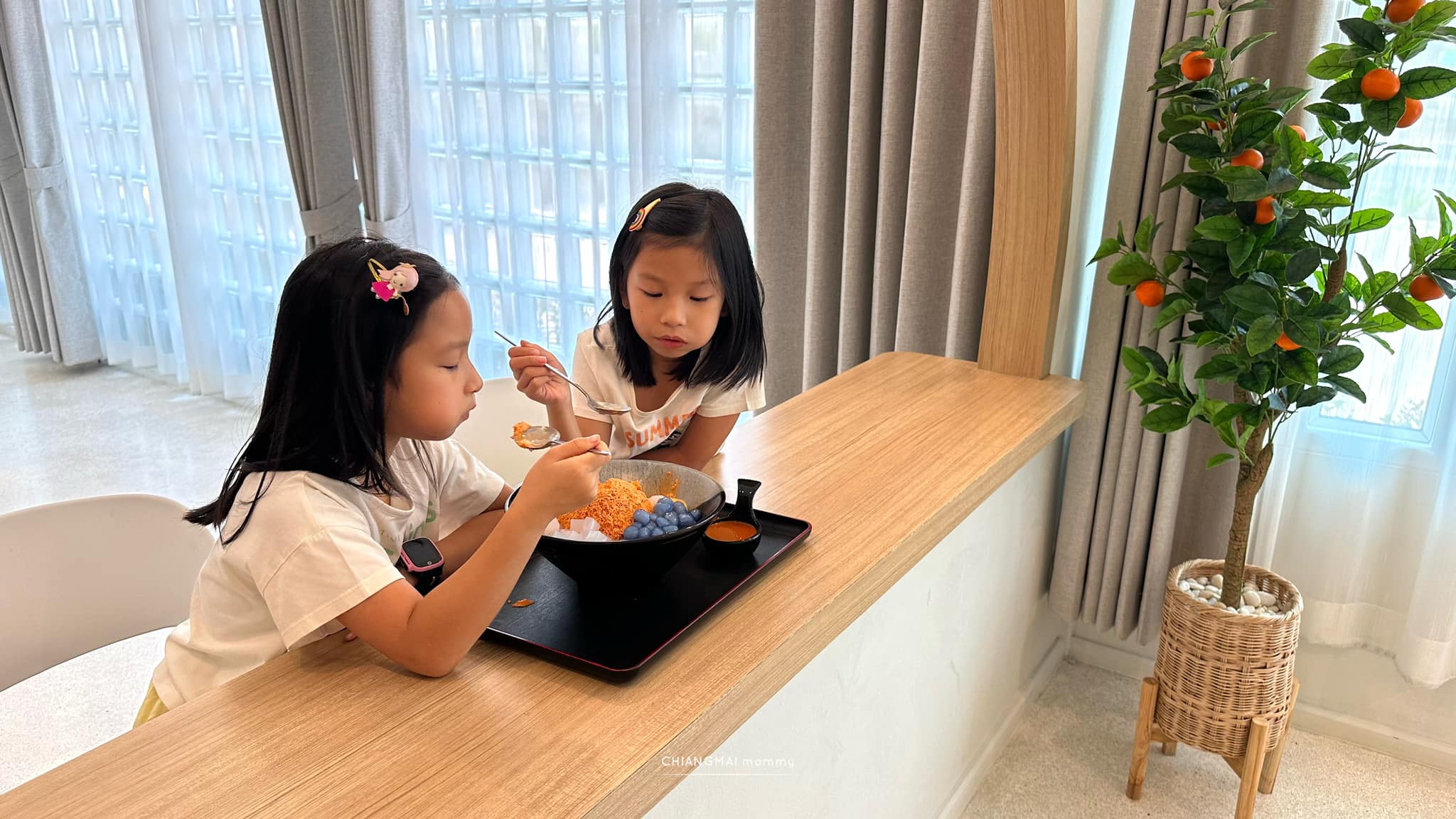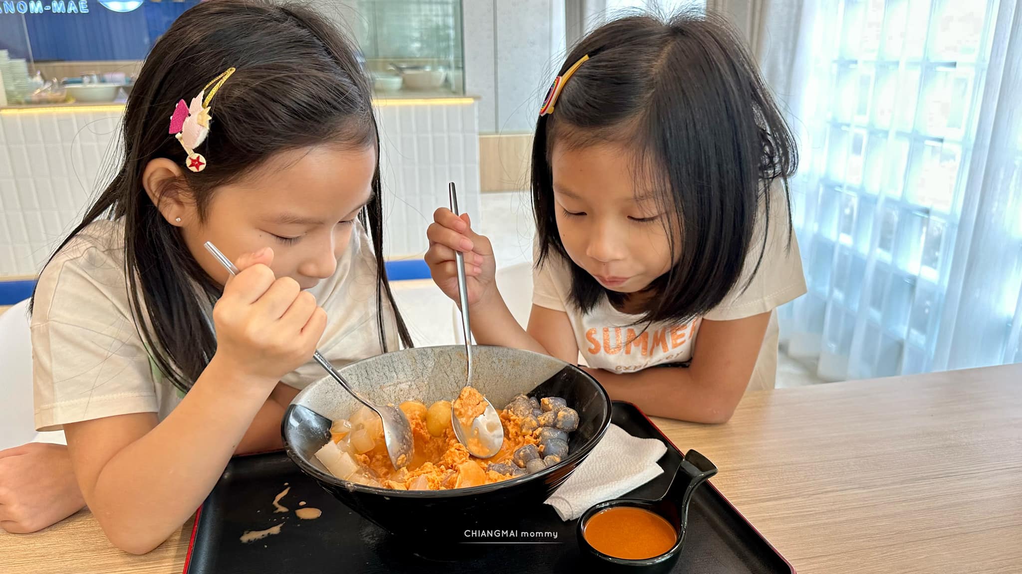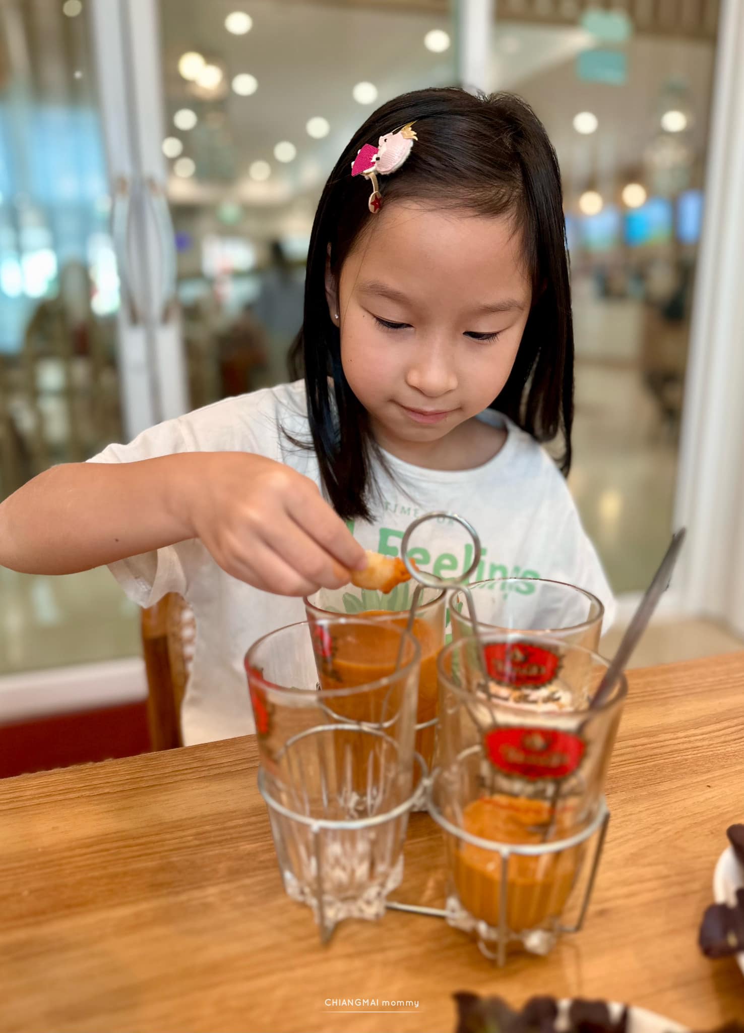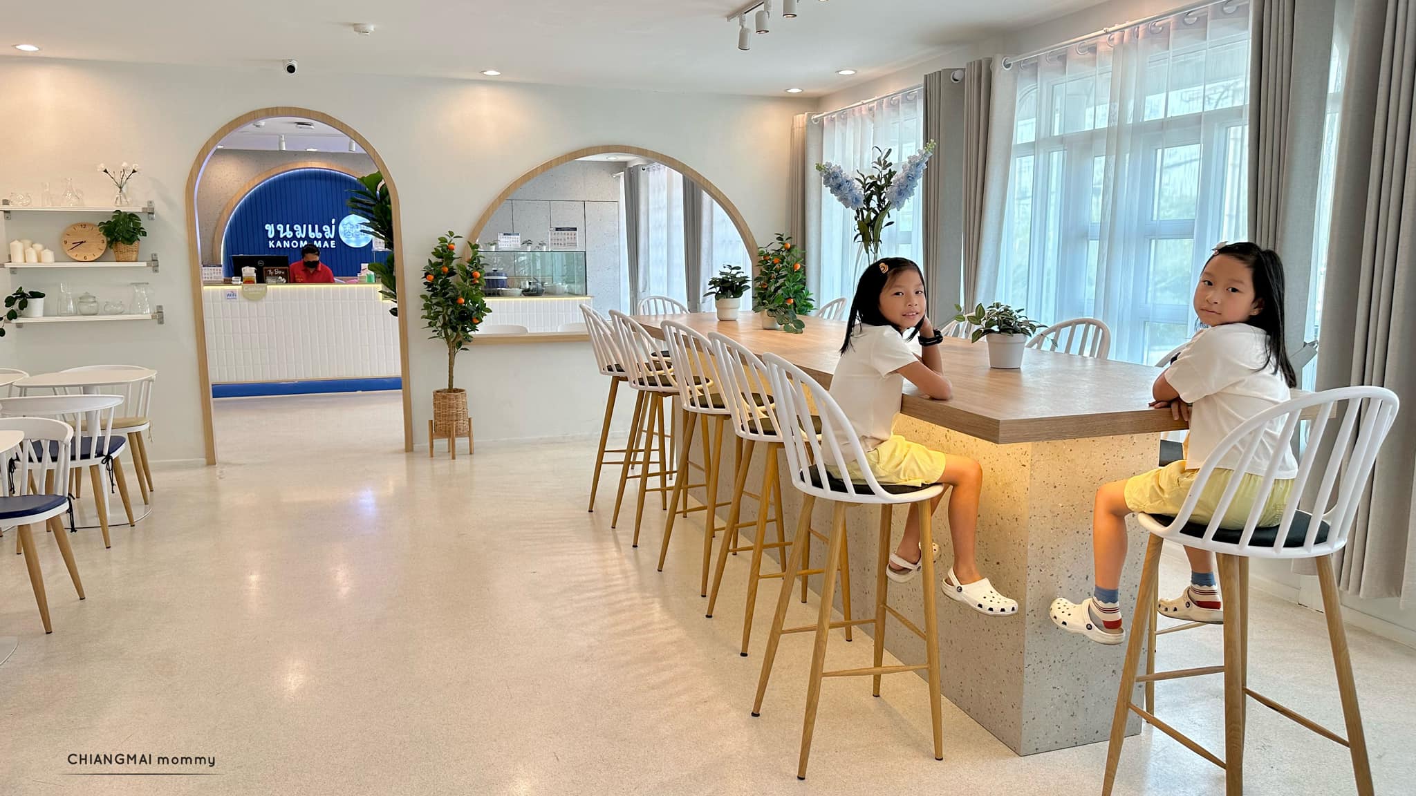 ส่วนเด็กๆไปร้านขนมบ้านแม่ค่ะ ร้านดังในเชียงใหม่ที่มีหลายสาขา แต่ที่สาขานี้พิเศษตรงที่มีเมนูที่ใช้ชาตรามือมาทำขนม ยิ่งหอมหวานอร่อยไปใหญ่ แม่สั่งบิงชูกะทิชาไทยให้เด็กๆทาน ตอนนี้แม่อนุญาตให้ทานชาได้บ้างแล้วค่ะ ติดใจกันมาก ขอกินเกินโควต้าตลอด