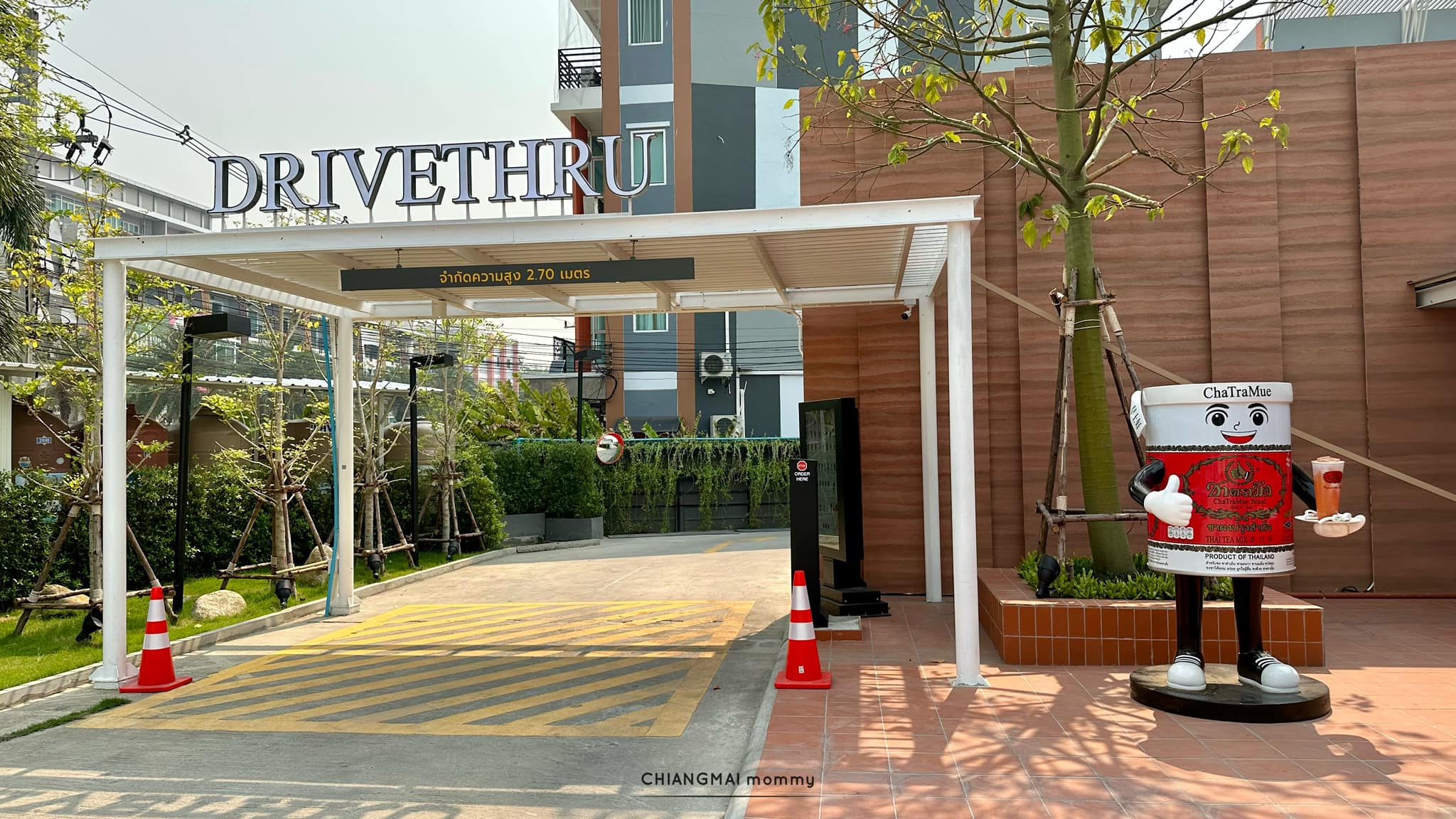 ส่วน Drive-Thru ตอนนี้มีแต่เครื่องดื่มค่ะ ถ้าจะสั่งอาหาร-ขนมกลับบ้านต้องจอดรถแล้วเดินมาสั่งนะคะ
