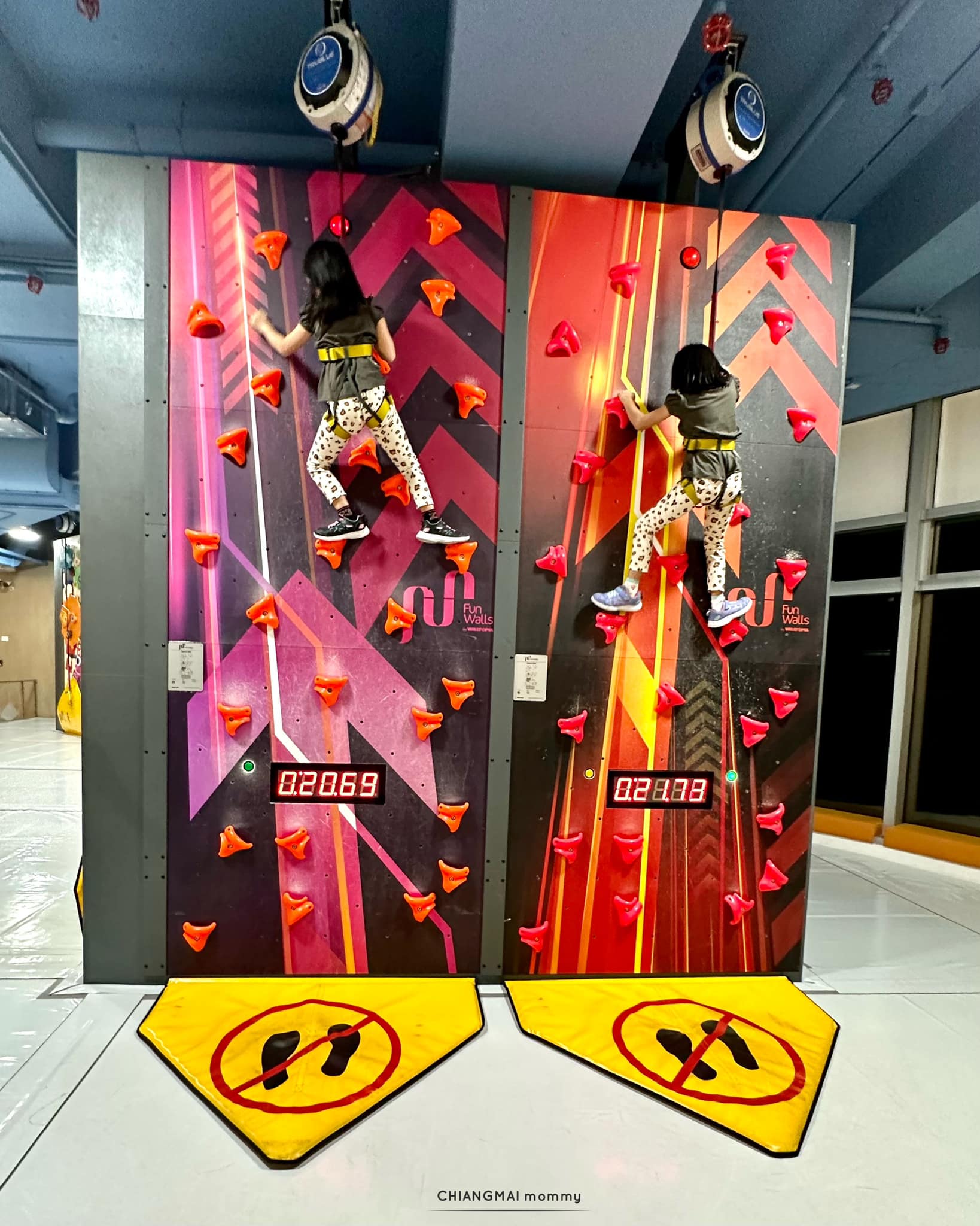 โซนปีนหน้าผาจำลอง อันนี้ชอบมากสนุกและปลอดภัยค่ะ พื้นก็จะมีเบาะรอง ก่อนเล่นจะมีระบบล็อคและสลิงเกี่ยวก่อนเล่นทุกครั้ง ปลอดภัยมากเลยค่ะ สนามมีให้ท้าทายตามลำดับความยาก มีจับเวลาแข่งปีน มีด่านเยอะมากเลยค่ะสนุกดี