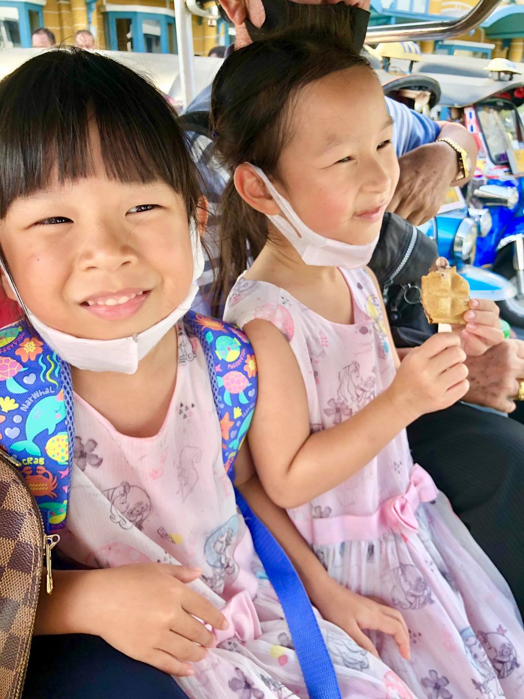 พาเด็กๆ นั่งตุ๊กตุ๊ก รถตุ๊กตุ๊กเป็นรถที่เป็นเอกลักษณ์ของเมืองไทย มีที่ประเทศไทยที่เดียว เด็กๆชอบมาก พอรถเริ่มแล่น ลมตีหน้าพั่บๆเย็นสบาย สนุกกันใหญ่แต่ก็ต้องนั่งเกาะกันดีๆนะคะ แม่ค่อนข้างหวาดเสียวนิดนึงค่ะ ![]()