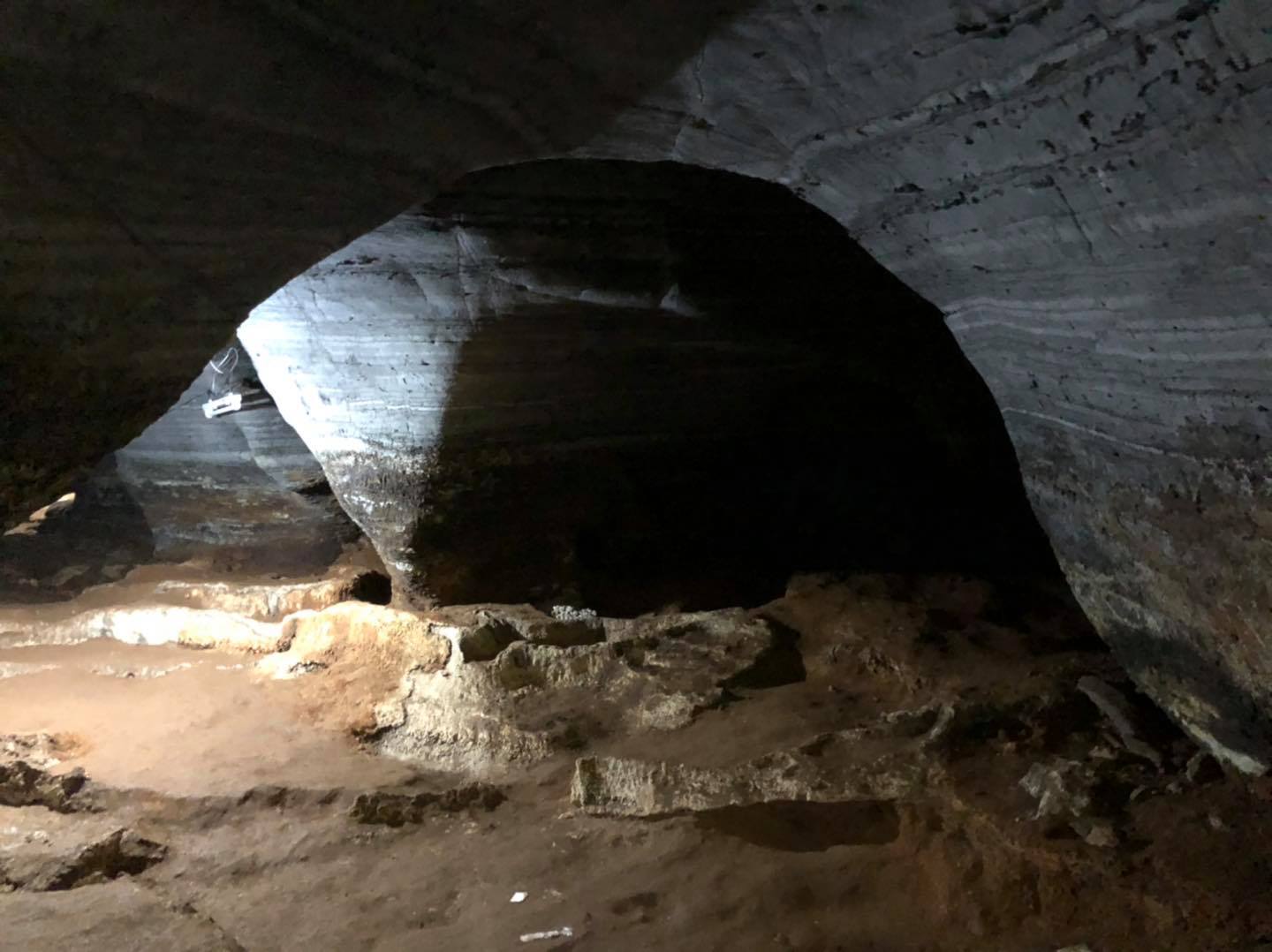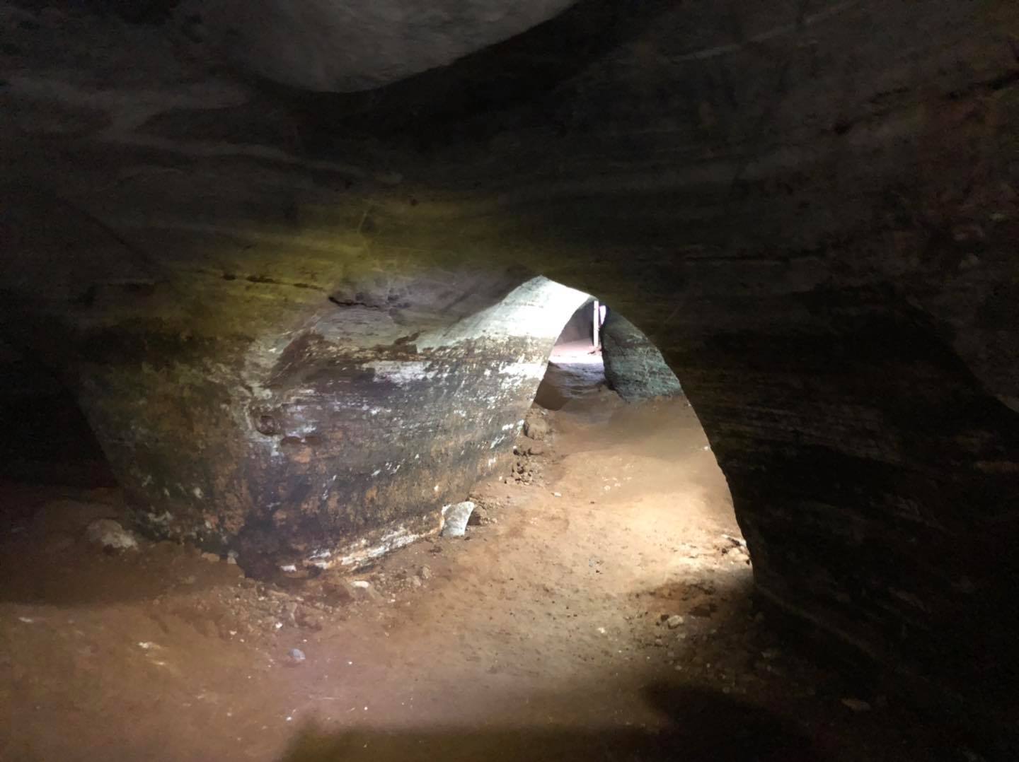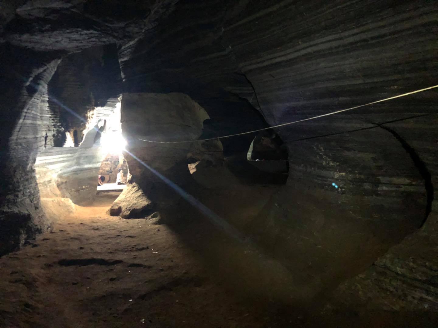 ด้านในเป็นโถงกว้างยาวลึกเข้าไป ดูปลอดภัยแต่ยิ่งลึกทางก็จะแคบมีจุดอันตรายที่เป็นสะพานเชื่อมห้องถัดไปที่รับน้ำหนักได้แค่ครั้งละ 2 คนเท่านั้นค่ะ ตรงนี้จะมืดมากไม่มีแสงสว่างเลยนอกจากแสงไฟฉายที่เราเตรียมไป แต่ภายในถ้ำค่อนข้างอับและหายใจลำบาก เราจึงหยุดสำรวจแค่จุดนี้ เพราะเข้าไปอีกนิดก็จะตันแล้วค่ะ