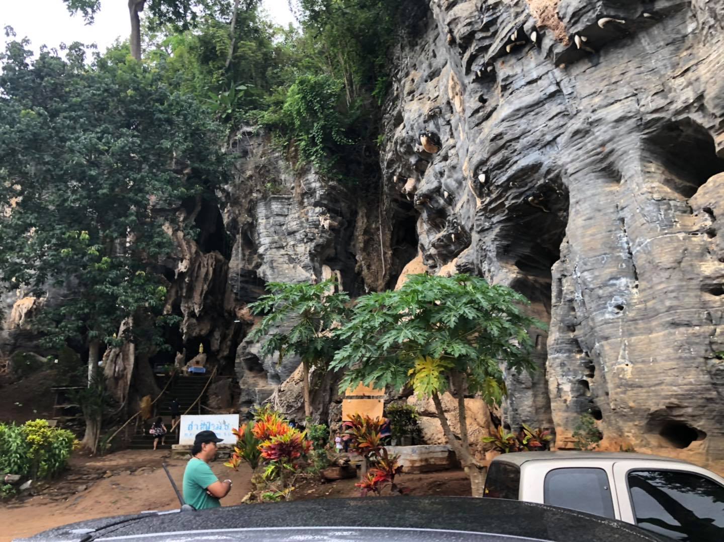 จอดรถด้านหน้าแล้วเดินขึ้นบันไดเข้าไป..ปากทางเข้าถ้ำจะมีพระพุทธรูปอยู่ค่ะ อ้อ!! ถ้ำนี้ต้องเตรียมไฟฉายไปนะคะ มีไฟส่องสว่างให้แค่ช่วงแรกๆเองค่ะ เด็กๆสามารถเดินได้ง่ายเพราะเป็นพื้นดินแห้งไม่ลื่น ไม่ได้เป็นถ้ำน้ำค่ะ