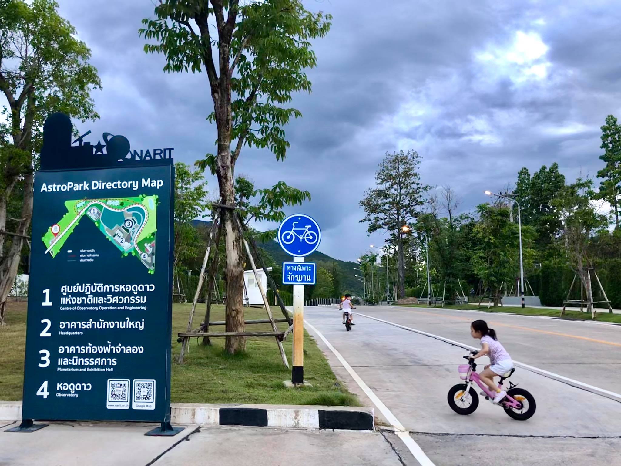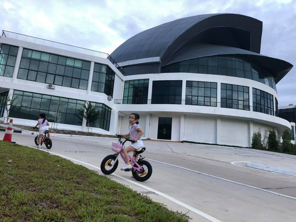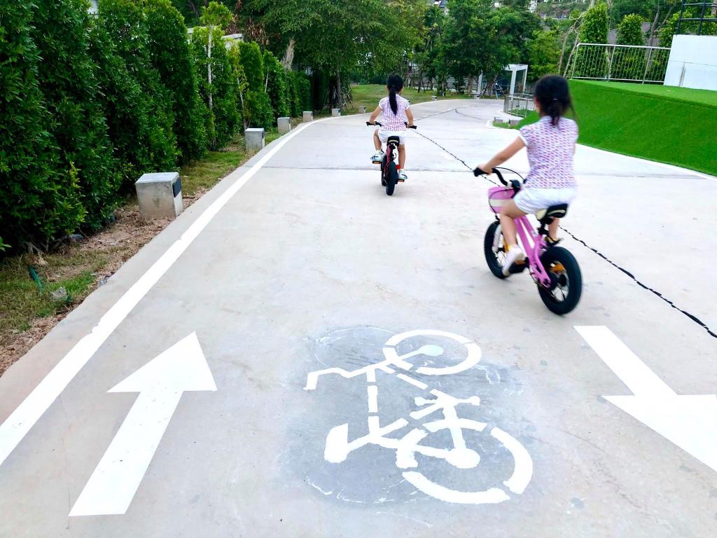เส้นทางปั่นจักรยานมีทั้งขึ้นเนิน-ลงเนินที่ค่อนข้างชันสำหรับเด็ก ท้าทายมากค่ะ ต้องช่วยเข็นช่วยจูงไปกำลังขายังแข็งแรงไม่พอ