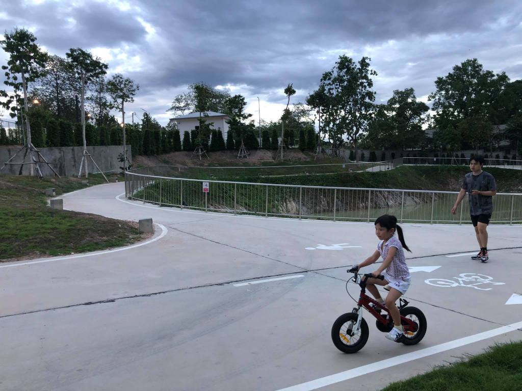หลังจากที่ไม่ได้ออกบ้านมานานวันนี้ครึ้มฟ้าครึ้มฝน ลมพัดเย็นสบายประกอบกับเพิ่งปั่นจักรยานสองล้อได้ก็อยากพาเด็กๆไปออกกำลังกายปั่นจักรยานเปลี่ยนบรรยากาศบ้าง ตอนแรกตั้งใจจะไปลานเนินนุ่มแต่พอเห็นป้ายก็ตัดสินใจเลี้ยวมาที่นี่ค่ะ