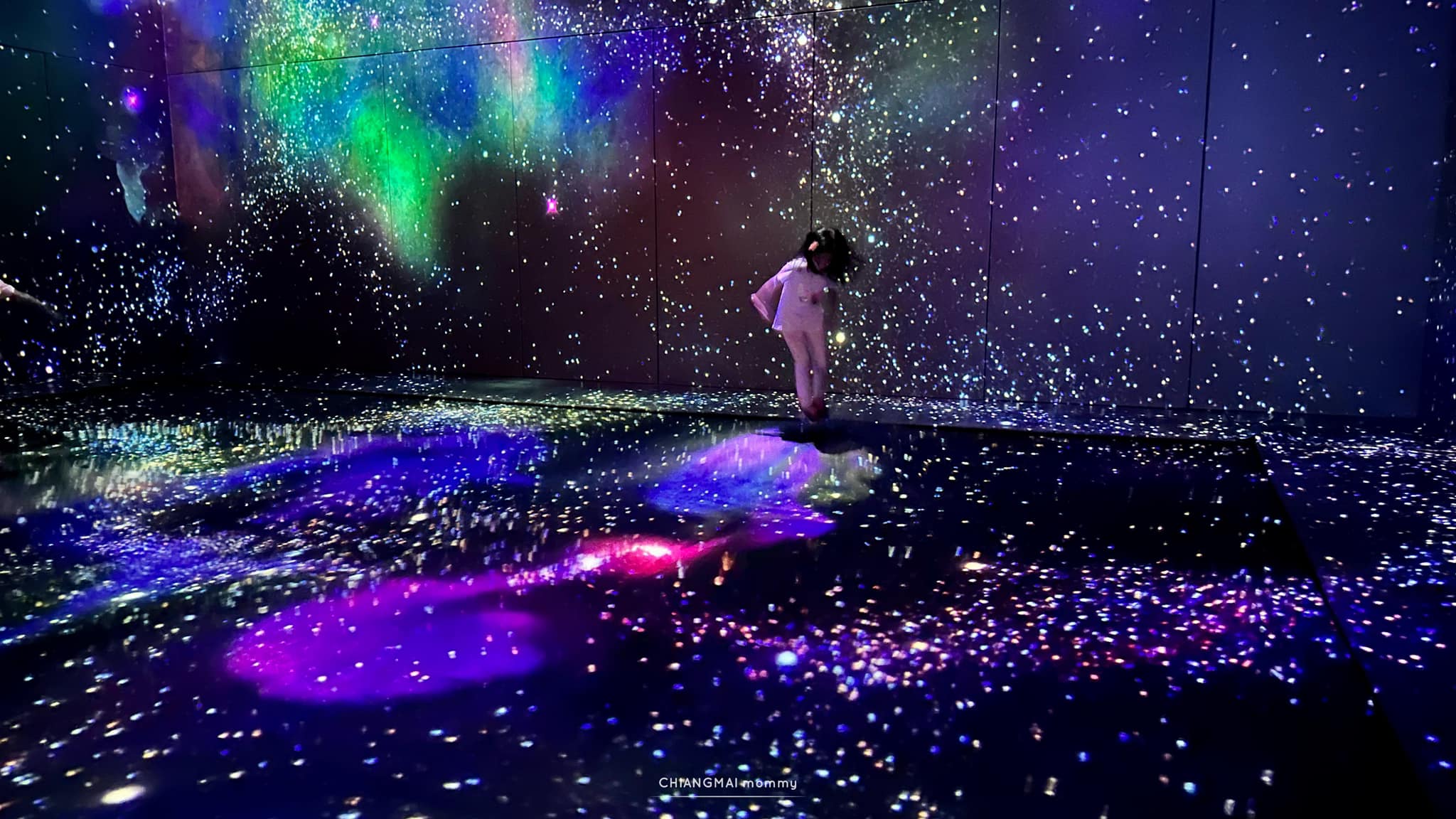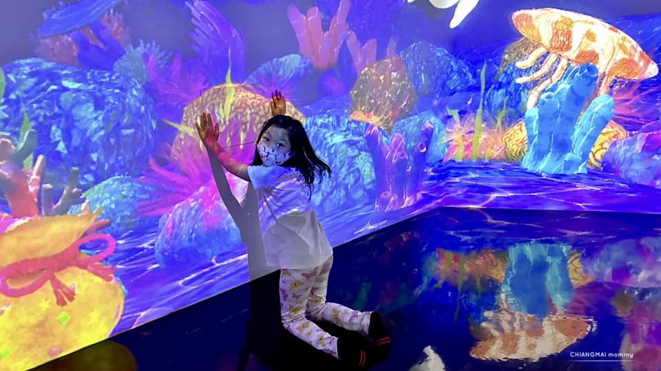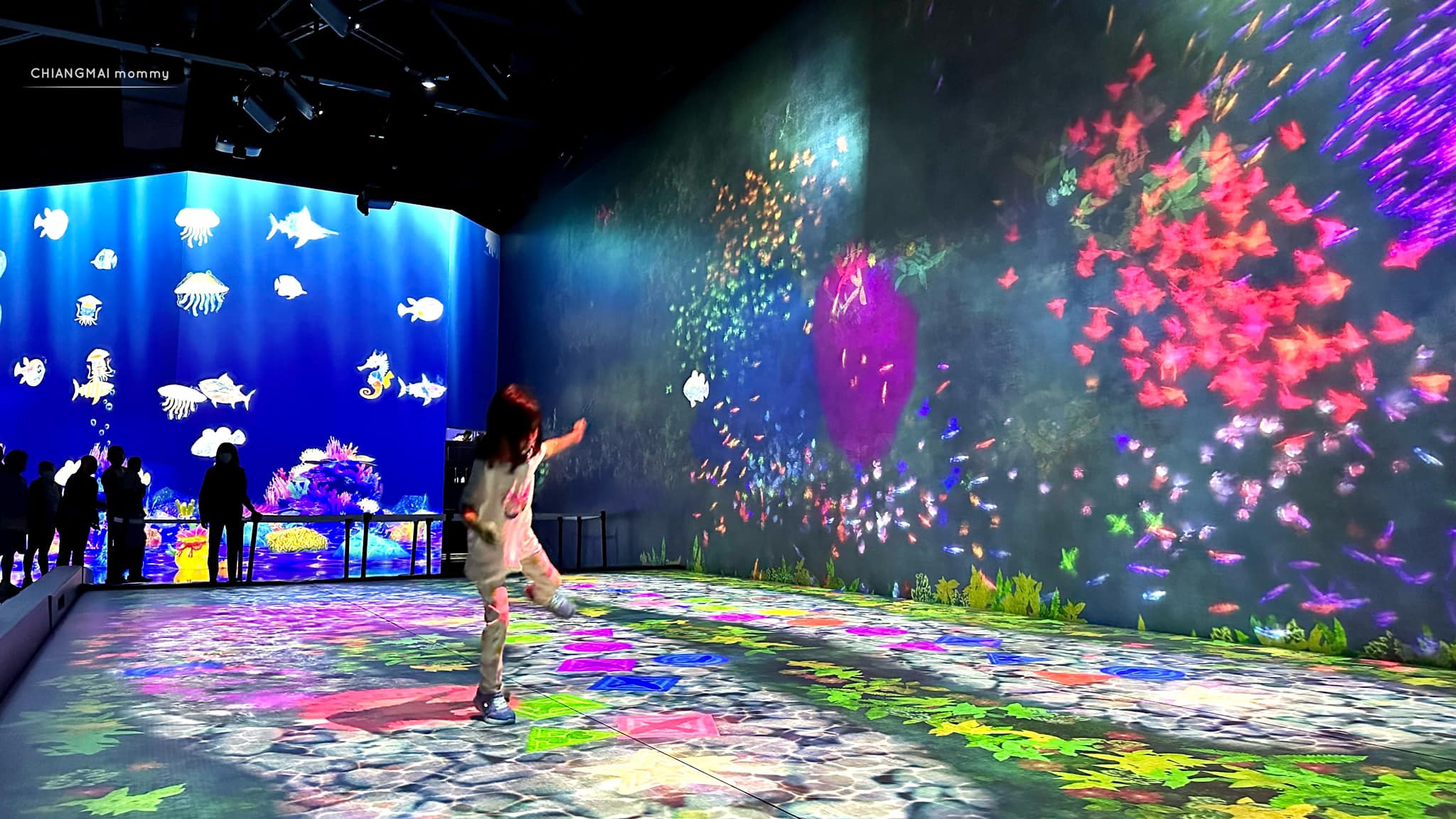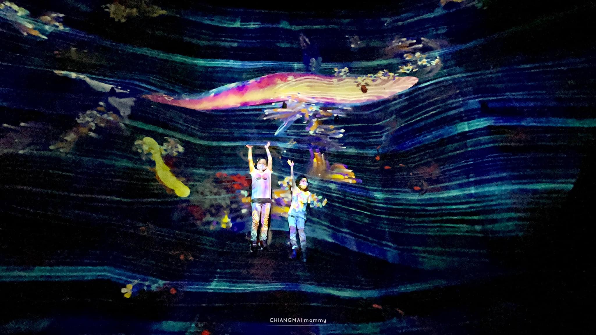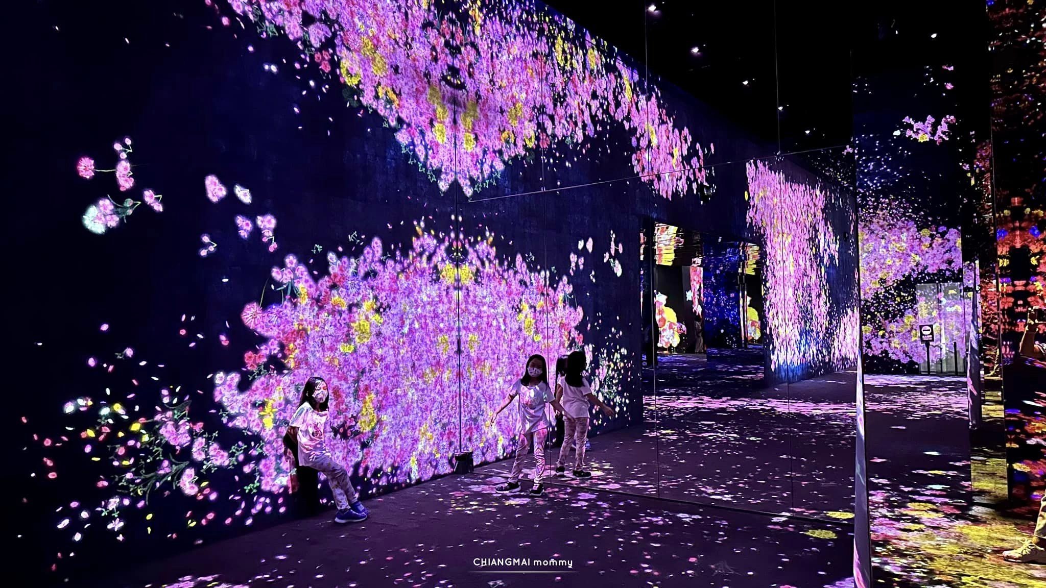 สวยและใหญ่มากๆ นิทรรศการงานแสดงศิลปะร่วมสมัย แสง-สี-เสียง จัดแสดงในชุด SuperNature เน้นธรรมชาติรอบตัว ไม่ว่าจะเป็นดอกไม้ ผลไม้ ต้นไม้ ฤดูกาลต่างๆ ดิน-น้ำ-ลม-ไฟ สัตว์ป่า สัตว์น้ำ นก แมลง รวมถึงโลก จักรวาล และเด็กๆยังมีส่วนร่วมกับนิทรรศการสนุกตลอดการเข้าชม อยู่กันจนหิวก็ยังไม่อยากออก เพราะนี่เป็นนิทรรศการที่ตั๋วเข้าชมได้ครั้งเดียว