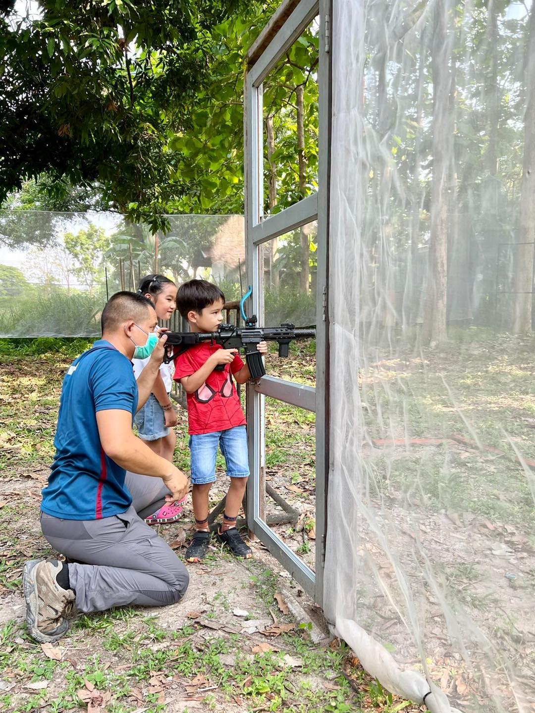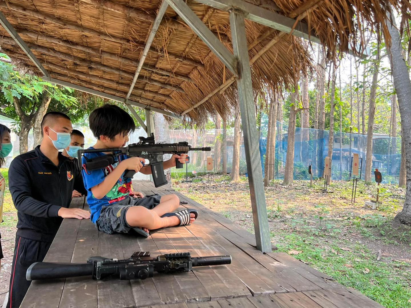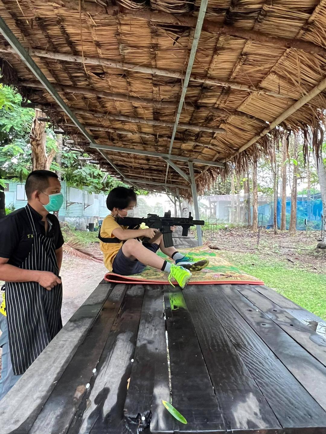 จุดเด่นของที่นี่คือเป็นสนามค่อนข้างกว้าง ตัวสนามจะจำลองบังเกอร์เป็นรูปกรอบประตู หน้าต่าง เหมือนกับกำลังเล่นอยู่ในเกมสงคราม ที่แต่ละฝ่ายจะต้องหาทางหลบหลีกเอาชนะคู่ต่อสู้ให้ได้โดยไม่โดนยิง หรือเด็กเล็กที่ยังไม่สามารถลงสนามได้ก็จะมีโซนให้ฝึกยิงเป้านิ่งเป็นการฝึกสมาธิได้เป็นอย่างดี