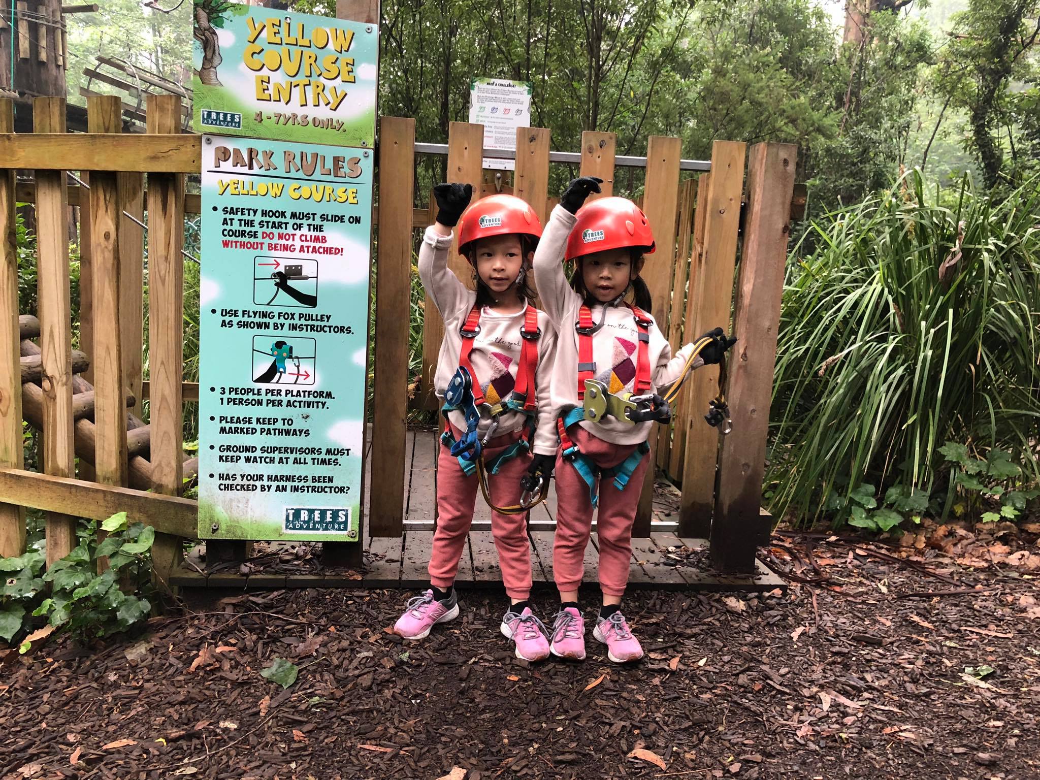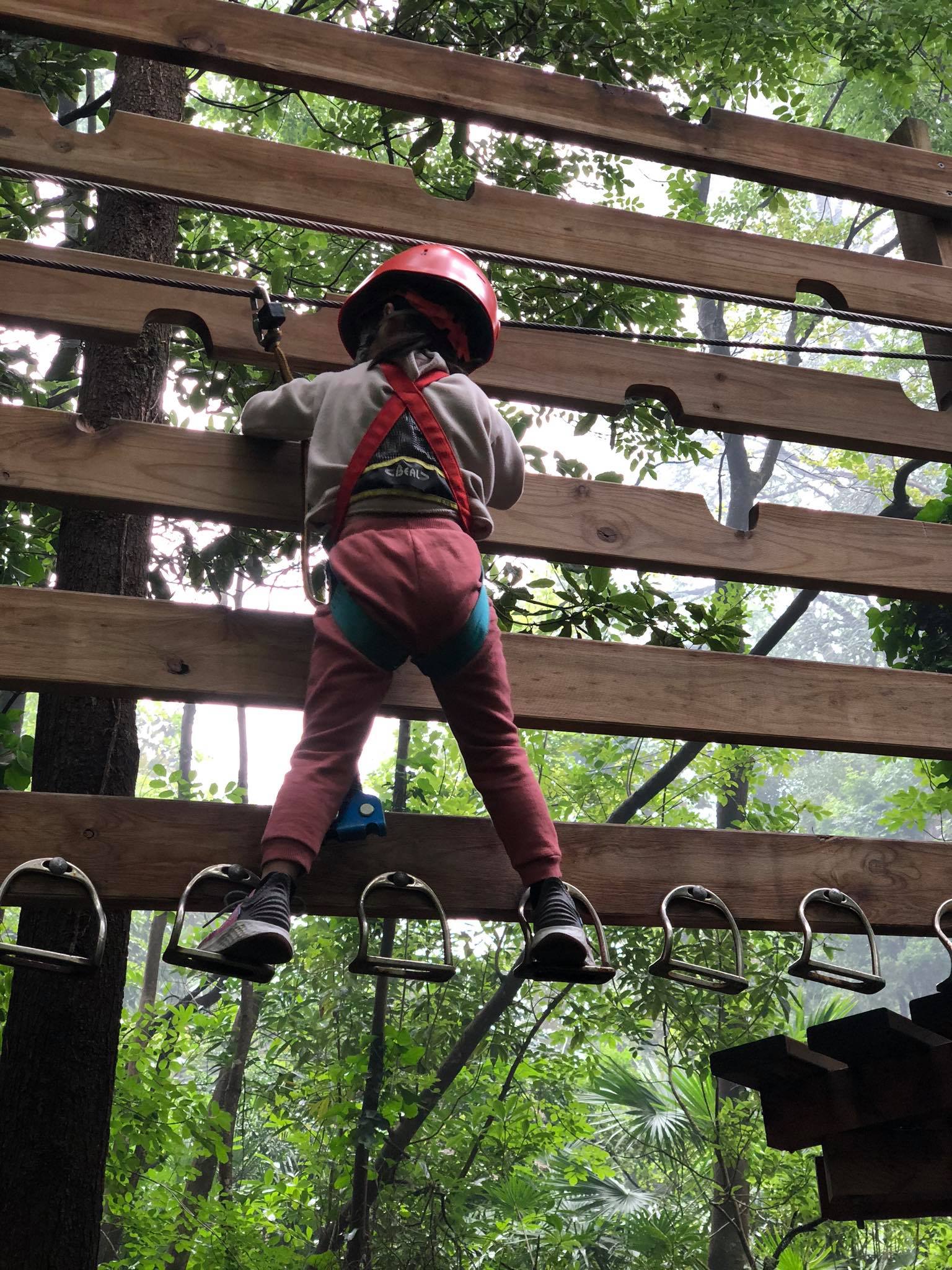 ที่นี่เปิดให้มาช้าสุดตอนบ่าย 3 แต่เล่นได้ถึง 5 โมงเย็นนะคะ เส้นทางเด็กเริ่มที่ 4 ขวบเป็นต้นไป คนละ 25$ ก่อนอื่นต้องลงทะเบียน ใส่อุปกรณ์และรับการเทรนการใช้ระบบ Safety ก่อน พอใช้งานเป็นก็ลุยเลยค่ะ