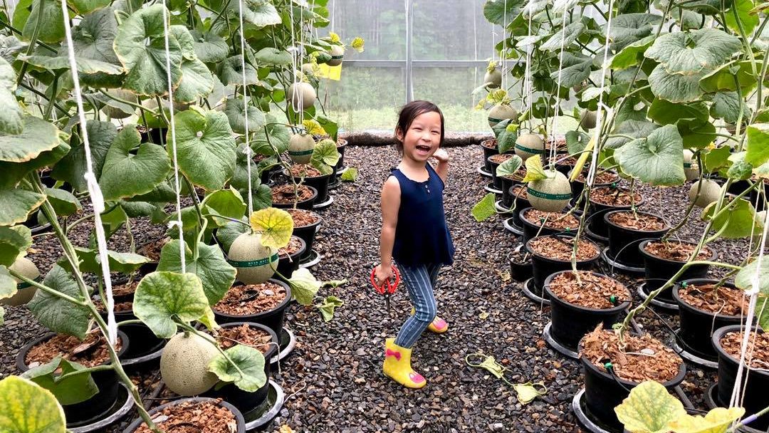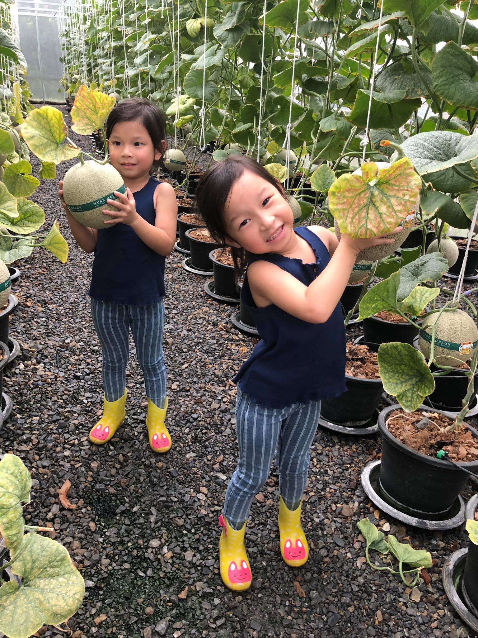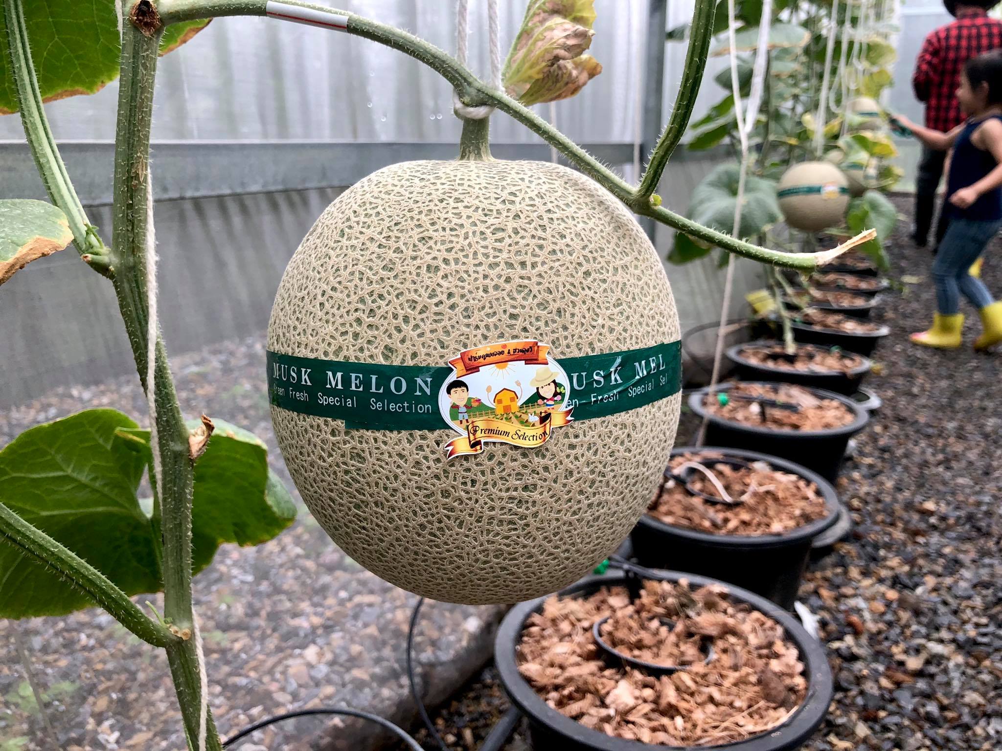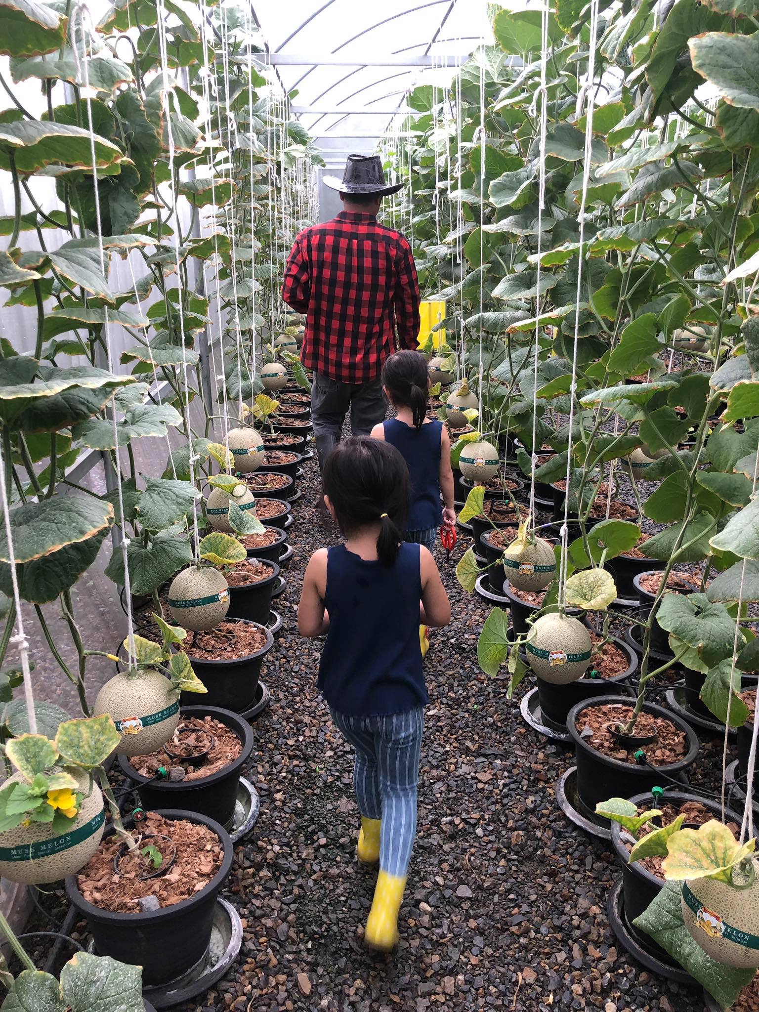 นอกจากนั้นยังมีเก็บไข่ไก่ในฟาร์ม ทำถุงผ้าลดโลกร้อน แต่ไฮไลต์วันนี้คือ ตัดเมล่อนในสวนค่ะ