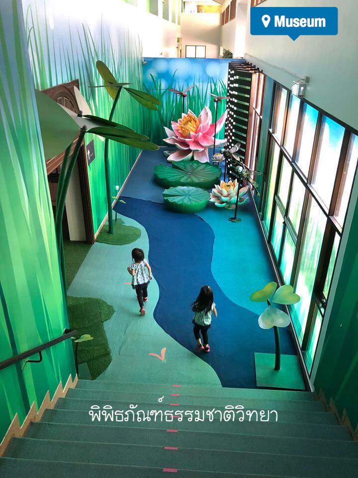 เราเข้ามาด้านในตึกสีส้ม จัดเป็นทางเดินส่วนต่างๆเป็นแนวการเรียนรู้ทางธรรมชาติ ให้เดินตามลูกยางเหียงไปเรื่อยๆ ที่นี่จัดออกมาได้ดีมาก แบ่งเป็นสัดส่วน สะอาด เป็นระเบียบ มีความรู้เกี่ยวกับธรรมชาติ ป่าเมืองไทย ต้นไม้ สัตว์ป่า แมลง เหมาะกับเด็กเล็กจนถึงผู้ใหญ่เลยค่ะ มีที่กว้างให้เดินไม่ต้องกลัวจะวิ่งชนอะไรล้มแตก
