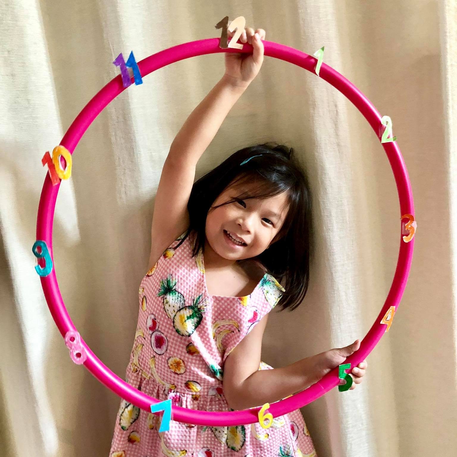 - เอา Hulahoop มาใส่ตัวเลขเป็นเหมือนนาฬิกาค่ะ
