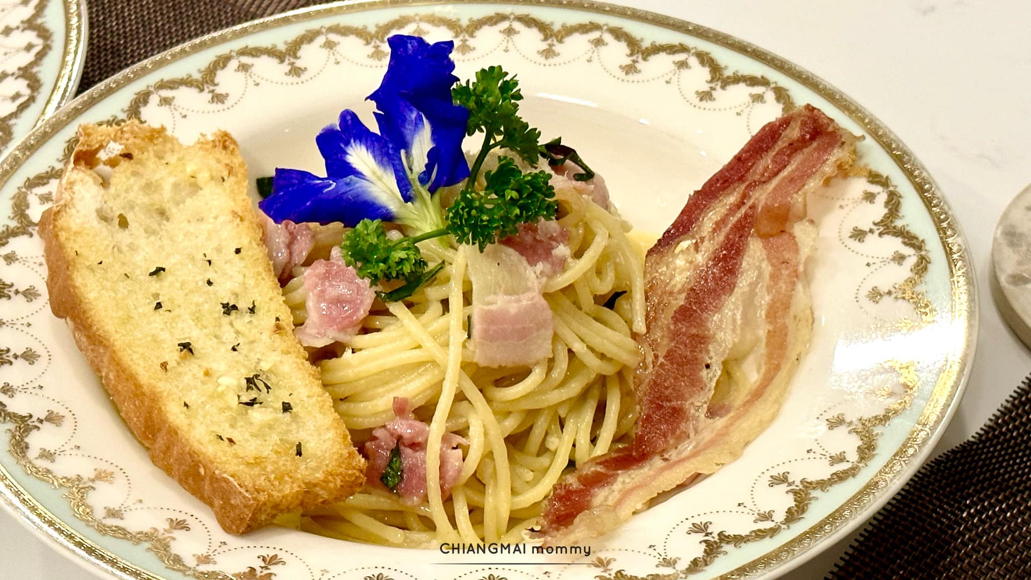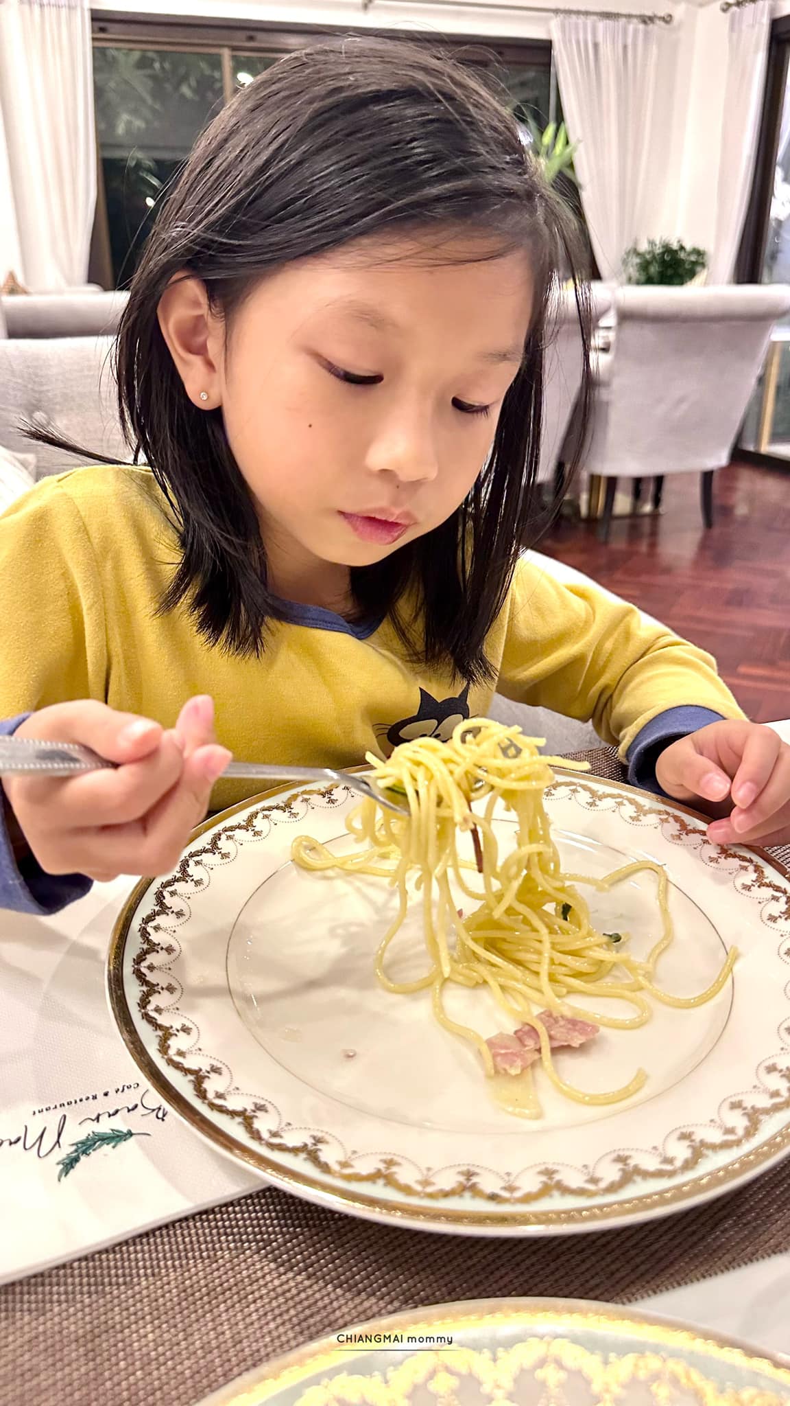 เพราะลูกดันรีเควสอยากกินสปาเกตตี้ผัดน้ำมันมะกอกร้านโปรด แม่นี่งืดเลยยยย หน้าสด เสื้อยืด คีบรองเท้าแตะ ส่วนลูกคือชุดเตรียมเข้านอนแล้วอ่าาาา อย่าไปกลัวลูกอยากกินก็ต้องได้กิน