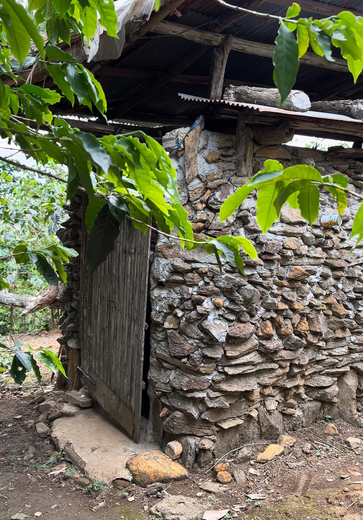 พอมาถึงบ้านสวน โอ้โห.. บ้านน่ารักมาก ทำจากหินมากองรวมๆกัน มีห้องครัวและห้องน้ำแยกออกมาตะหากเป็นสัดส่วน บ้านมีสองชั้น ชั้นแรกไว้เก็บพืชผลการเกษตร ชั้นบนเอาไว้นอน มีกองฟืนวางเรียบร้อยเป็นระเบียบ ควันจางๆลอยออกมาจากห้องครัว