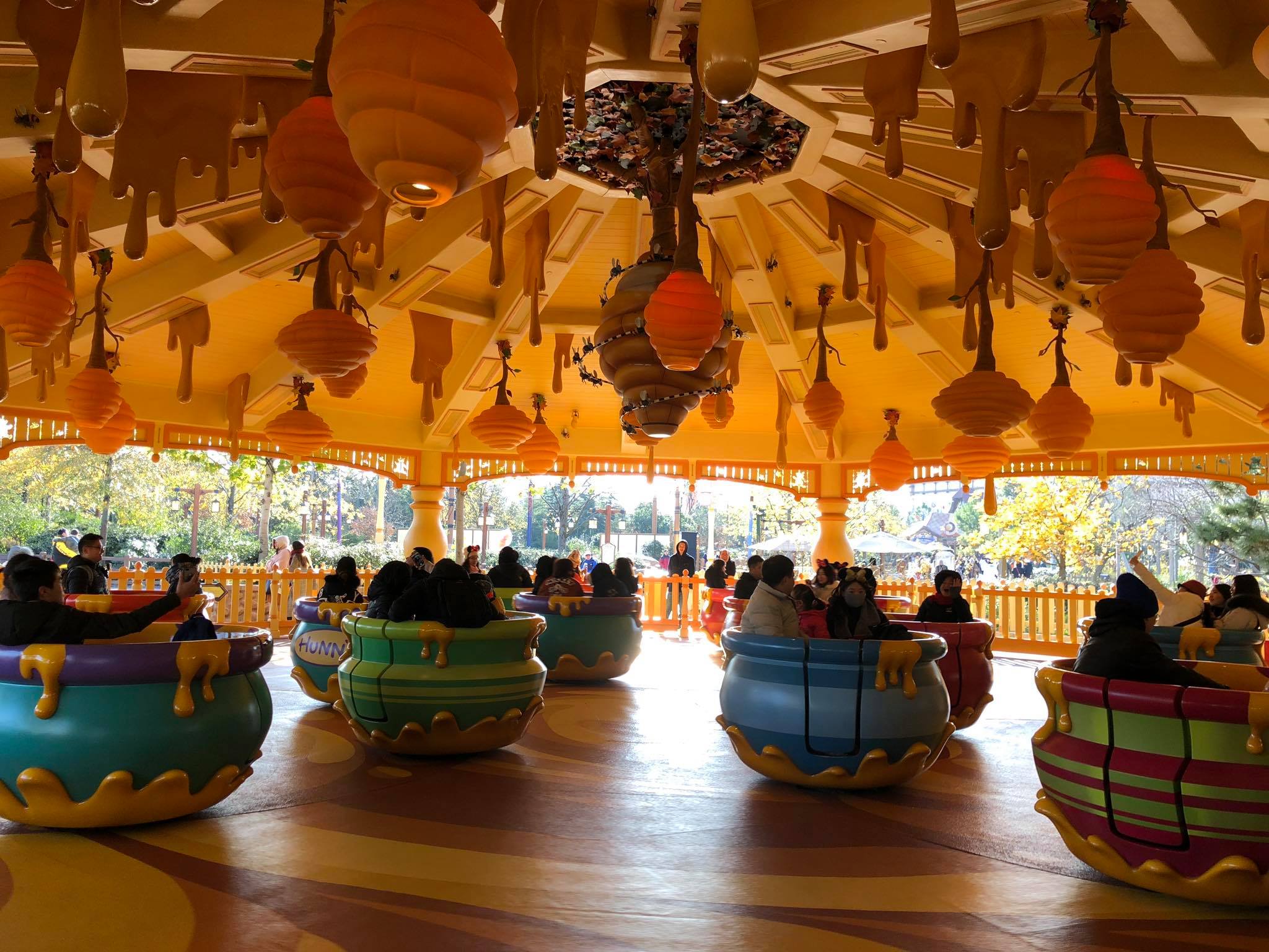 Hunny Pot Spin เป็นที่นั่งหมุนๆ เด็กเล็กเล่นสบายไม่หวาดเสียว ต่อด้วย The many Adventures of Winnie the Pooh คนเยอะพอสมควรเราไม่ได้กด Fastpass ค่ะ เพราะเต็ม