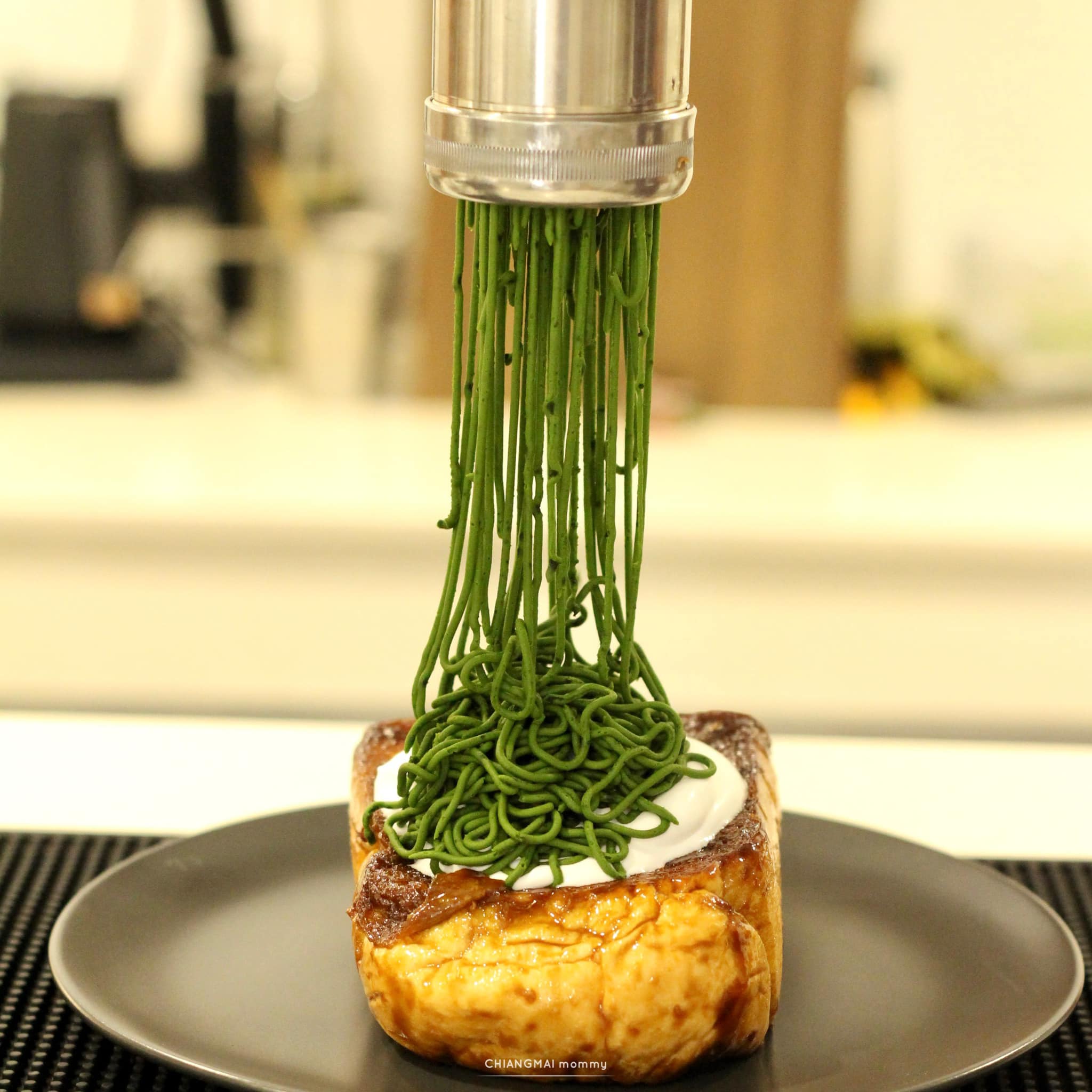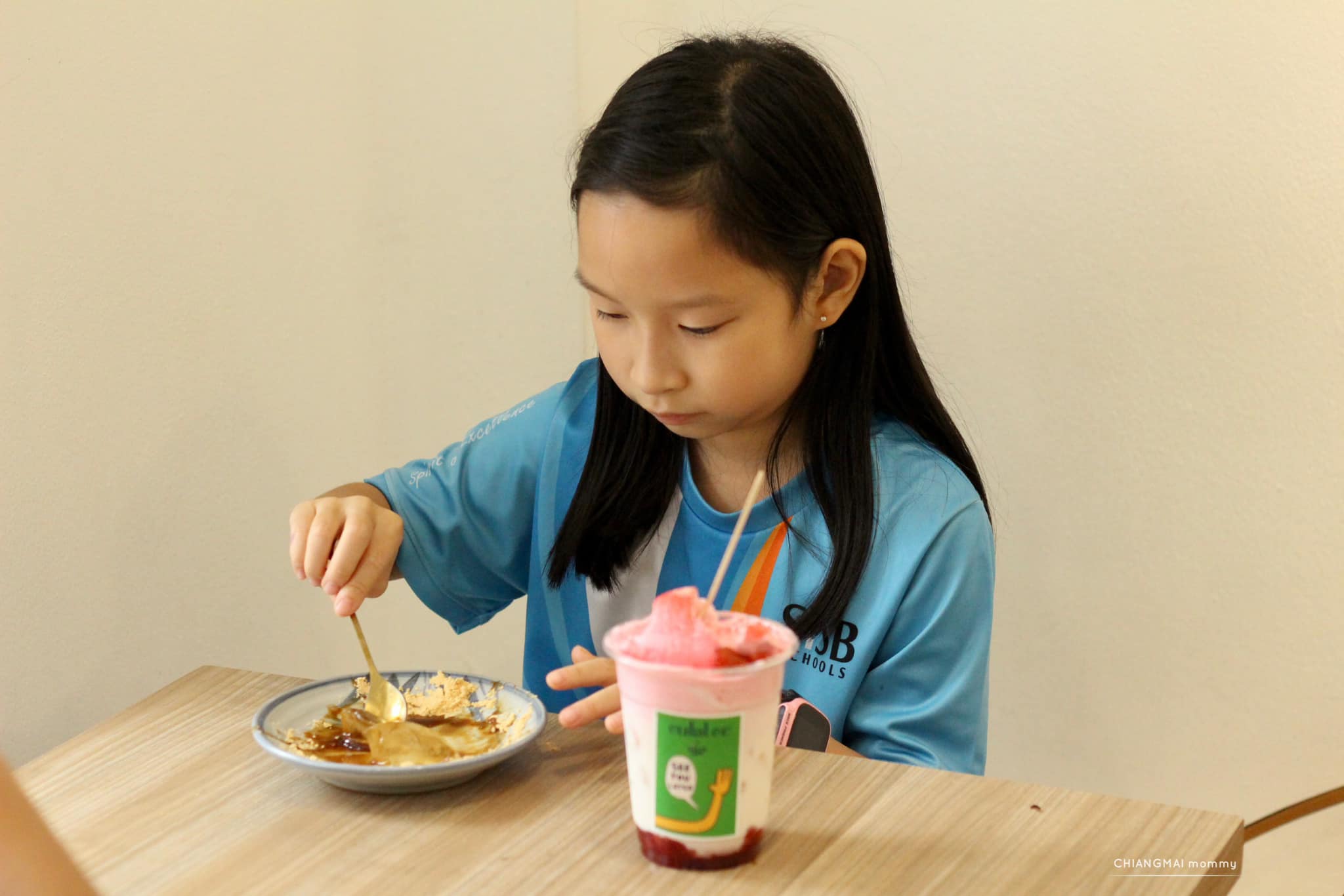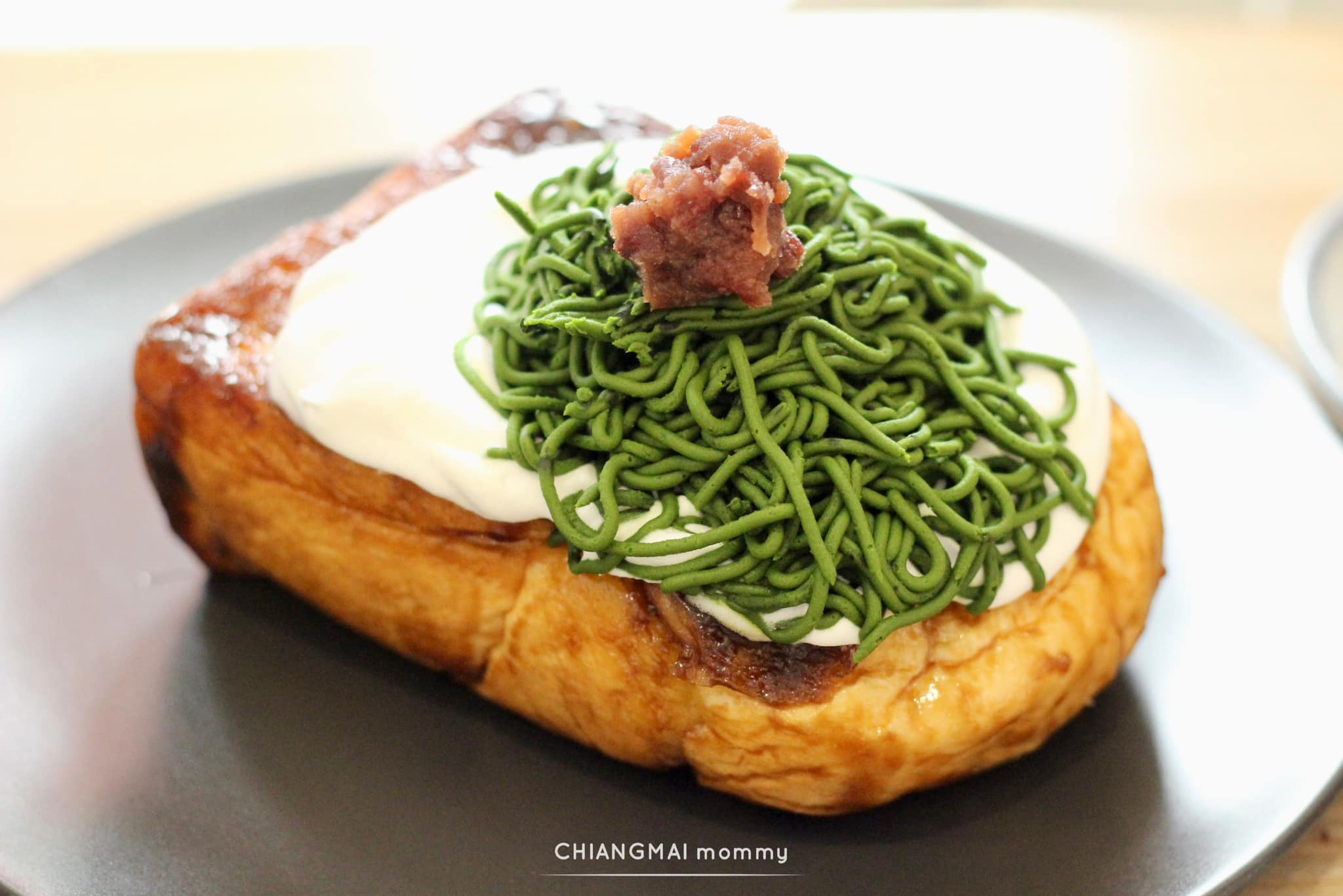 แม่เลยพาเด็กๆไปลองทานขนมดู มีขนมพื้นบ้านญี่ปุ่น โมจิหยดน้ำ Mitarashi Dango, Warabi Mochi, และขนมสุดฮิต Kyoto Toast มองบลังค์มัทฉะ ที่บีบครีมอูจิมัทฉะเข้มข้น บีบให้เห็นกันสดๆเป็นเส้นบนตัวคาราเมลโทสต์