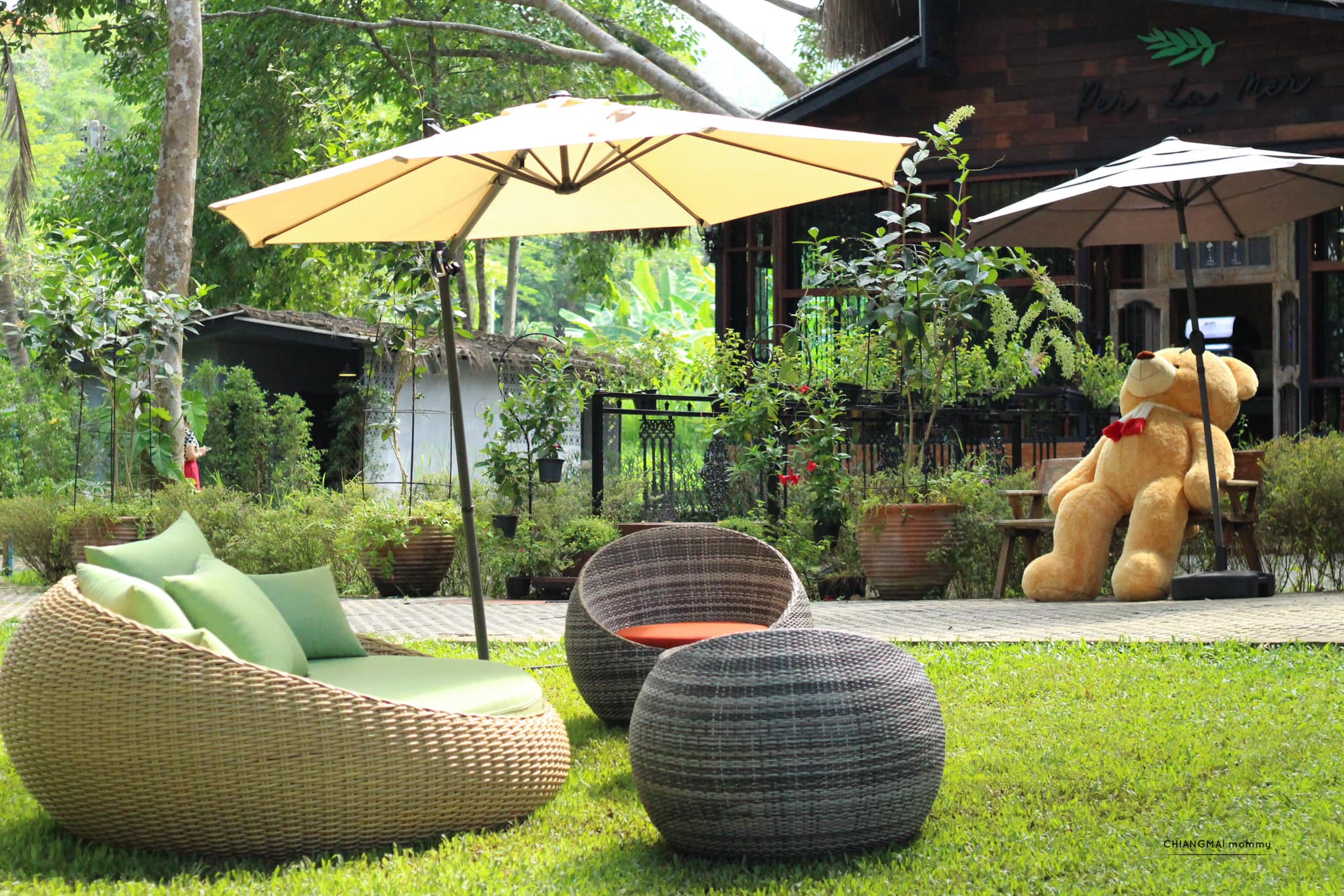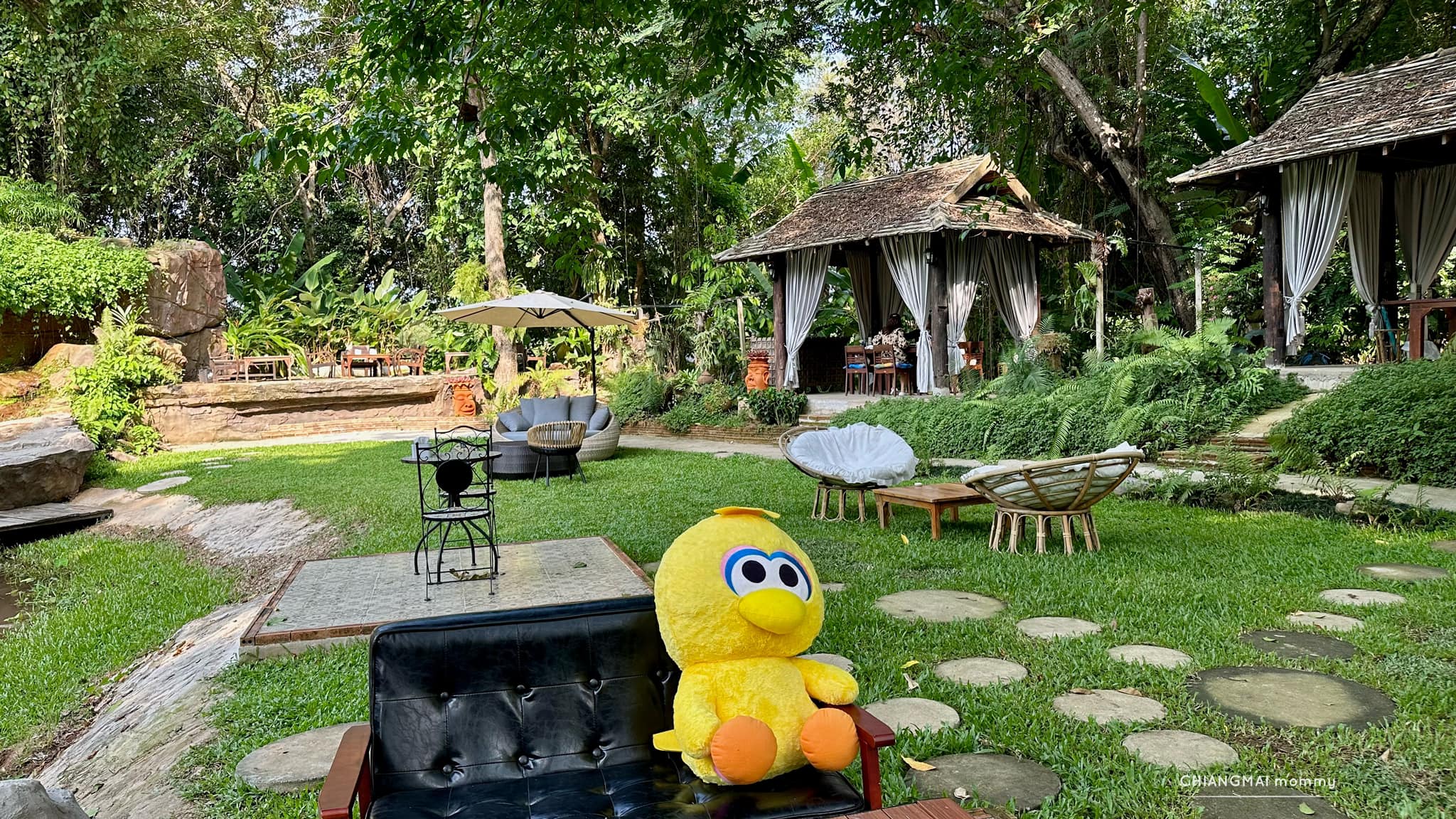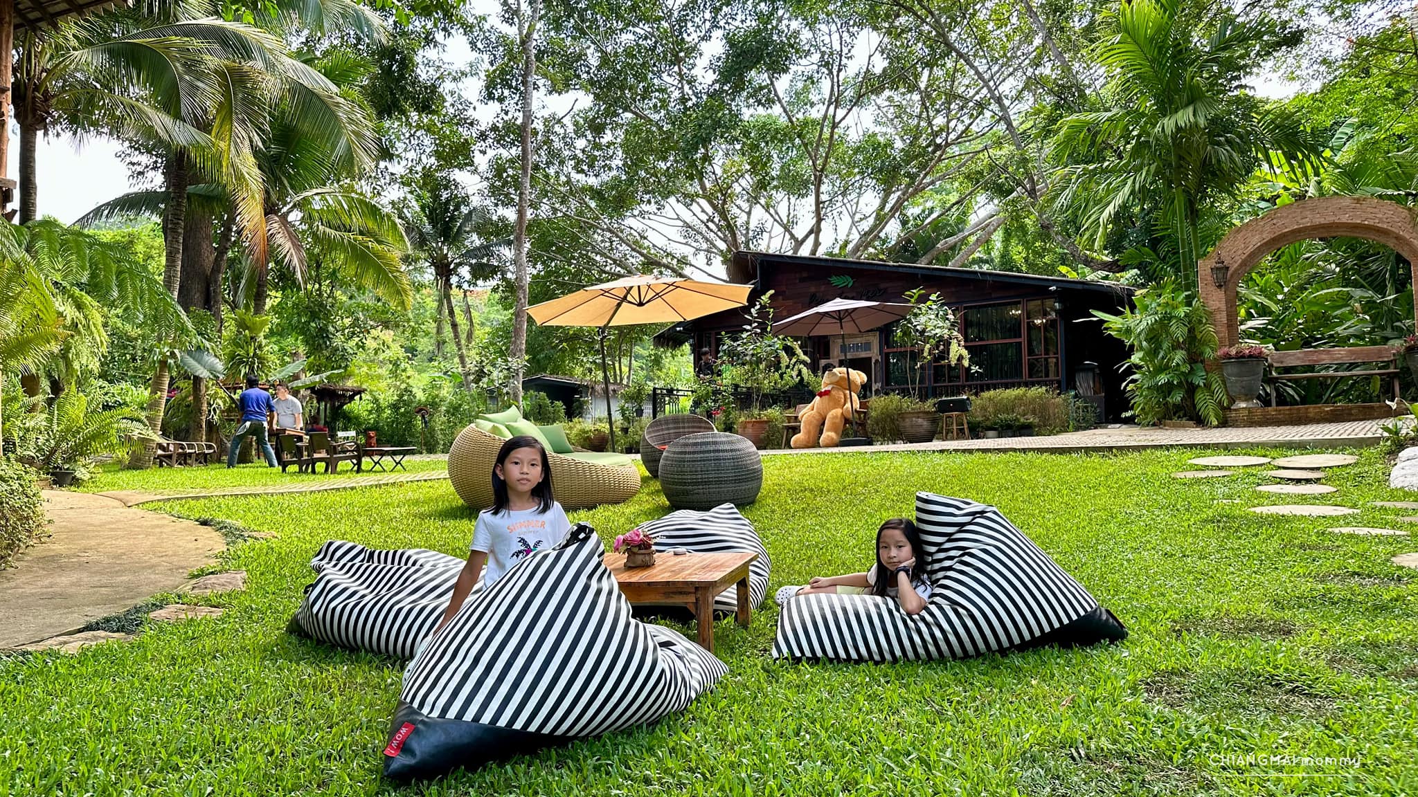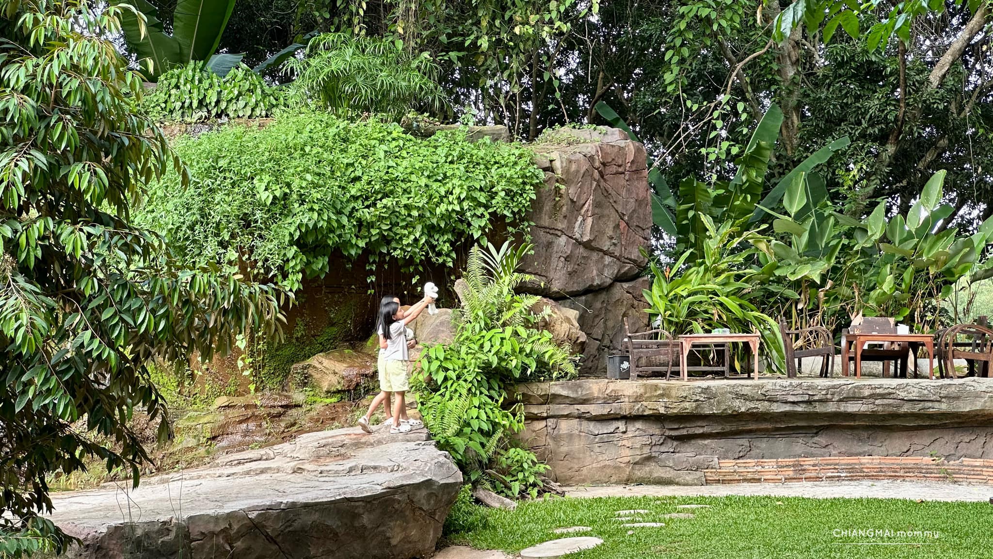 พื้นที่เต็มไปด้วยต้นไม้ใหญ่ๆเพียบ มีสนามหญ้าสีเขียว ลำธารธรรมชาติ น้ำตกจำลอง และมีเมนูอาหาร เครื่องดื่ม ขนมอร่อยๆ